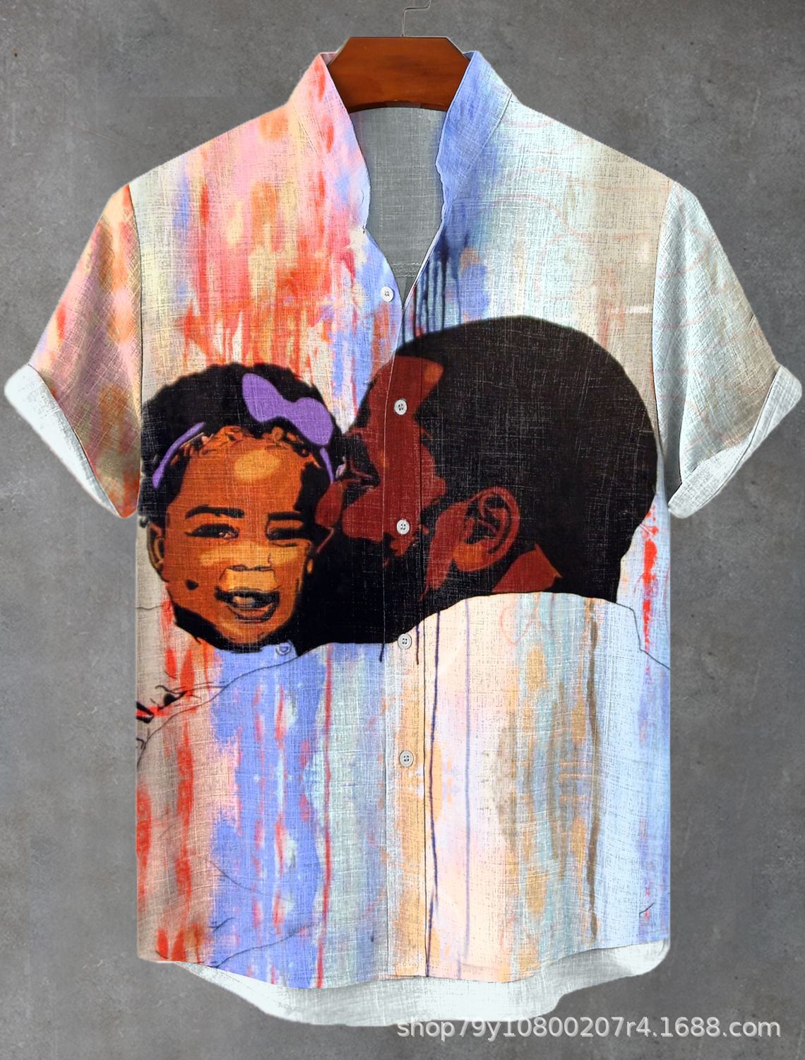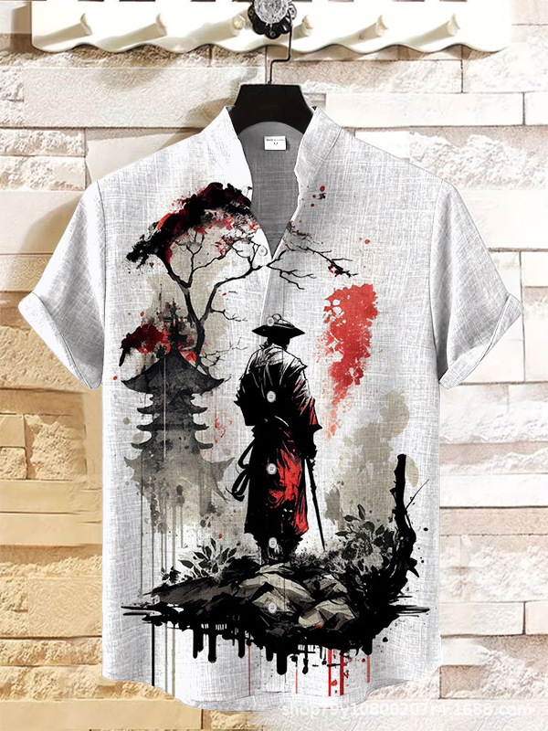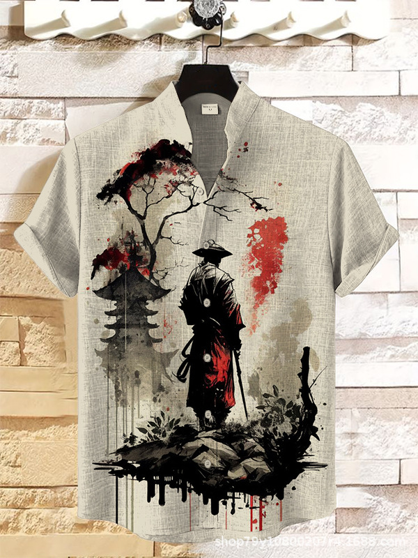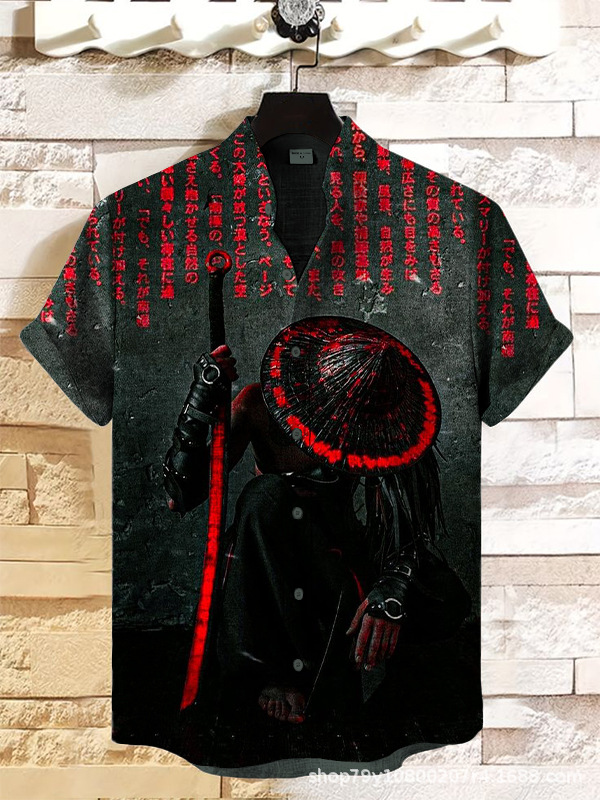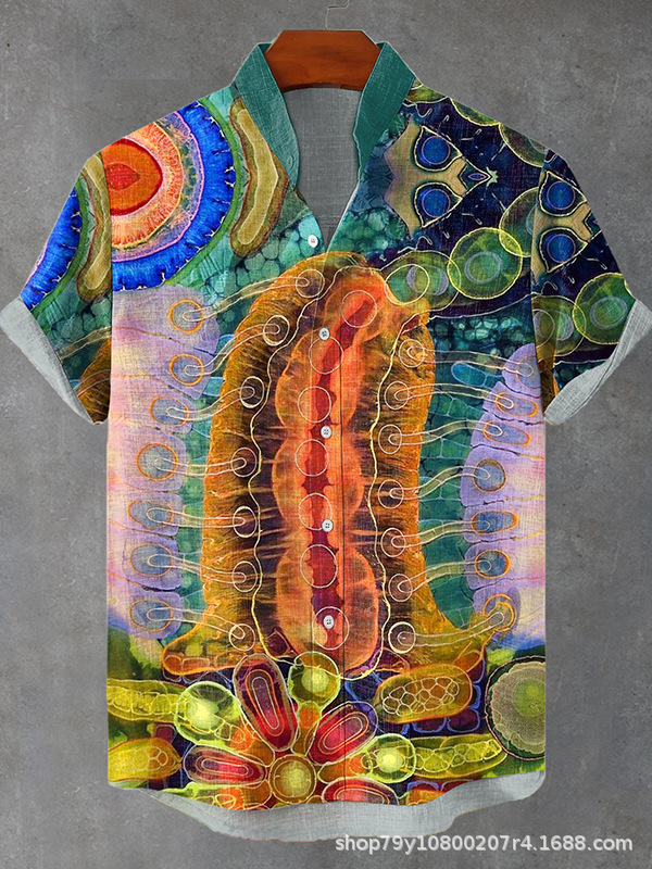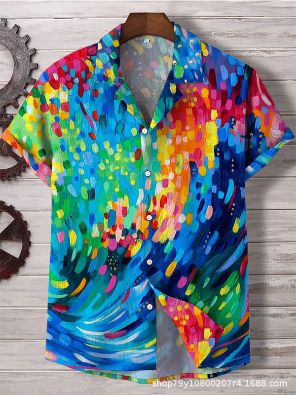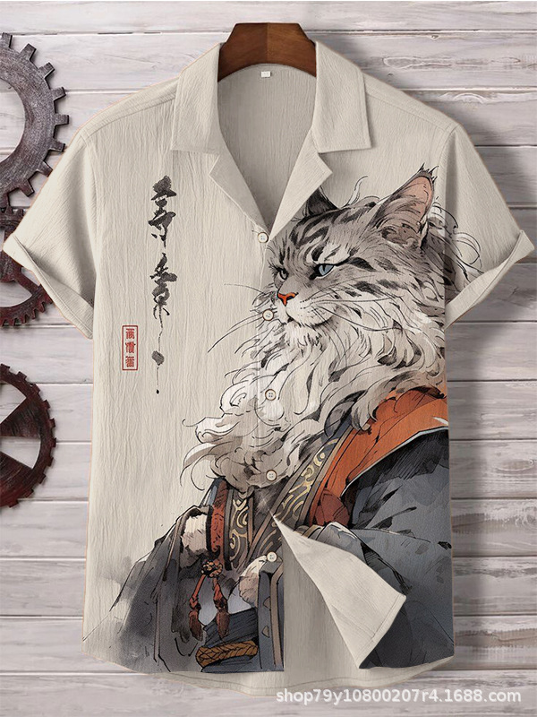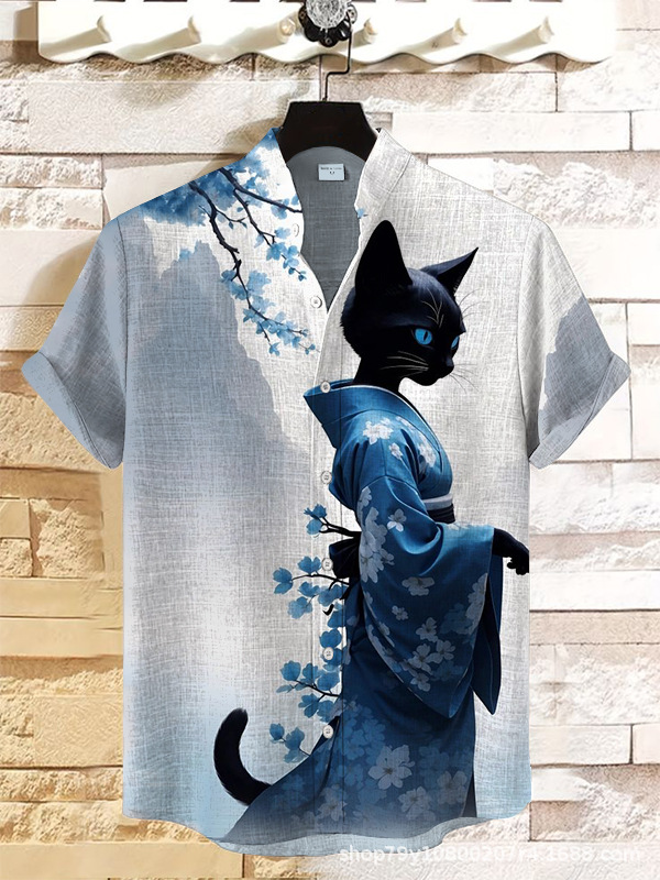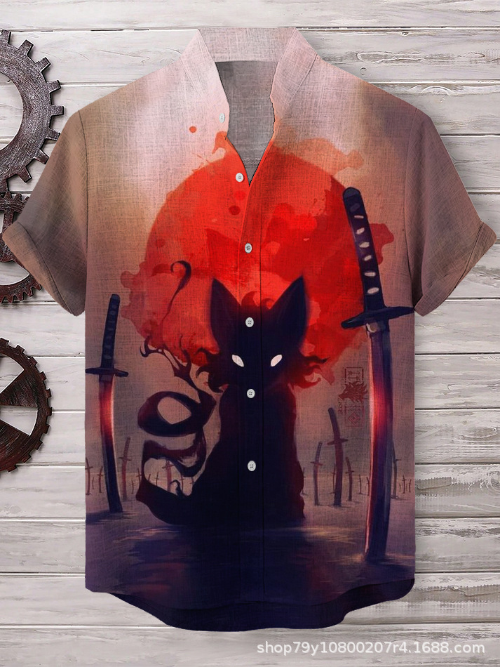 012 새로운 유럽과 미국의 대외 무역 국경 3D 디지털 인쇄 느슨한 트렌드 짧은 소매 옷깃 카디건 셔츠 도매스토어 가기