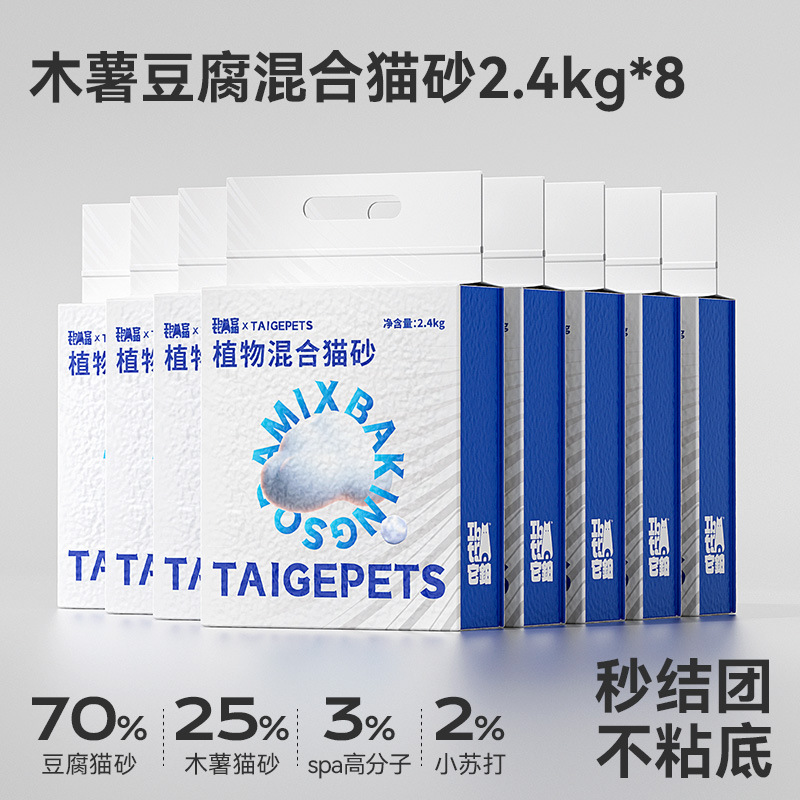 카사바 고양이 모래 혼합 식물 모래 강한 흡수성 비 끈적 끈적한 바닥 탈취제 먼지 Cmass 고양이 모래 진공 두부 고양이 모래