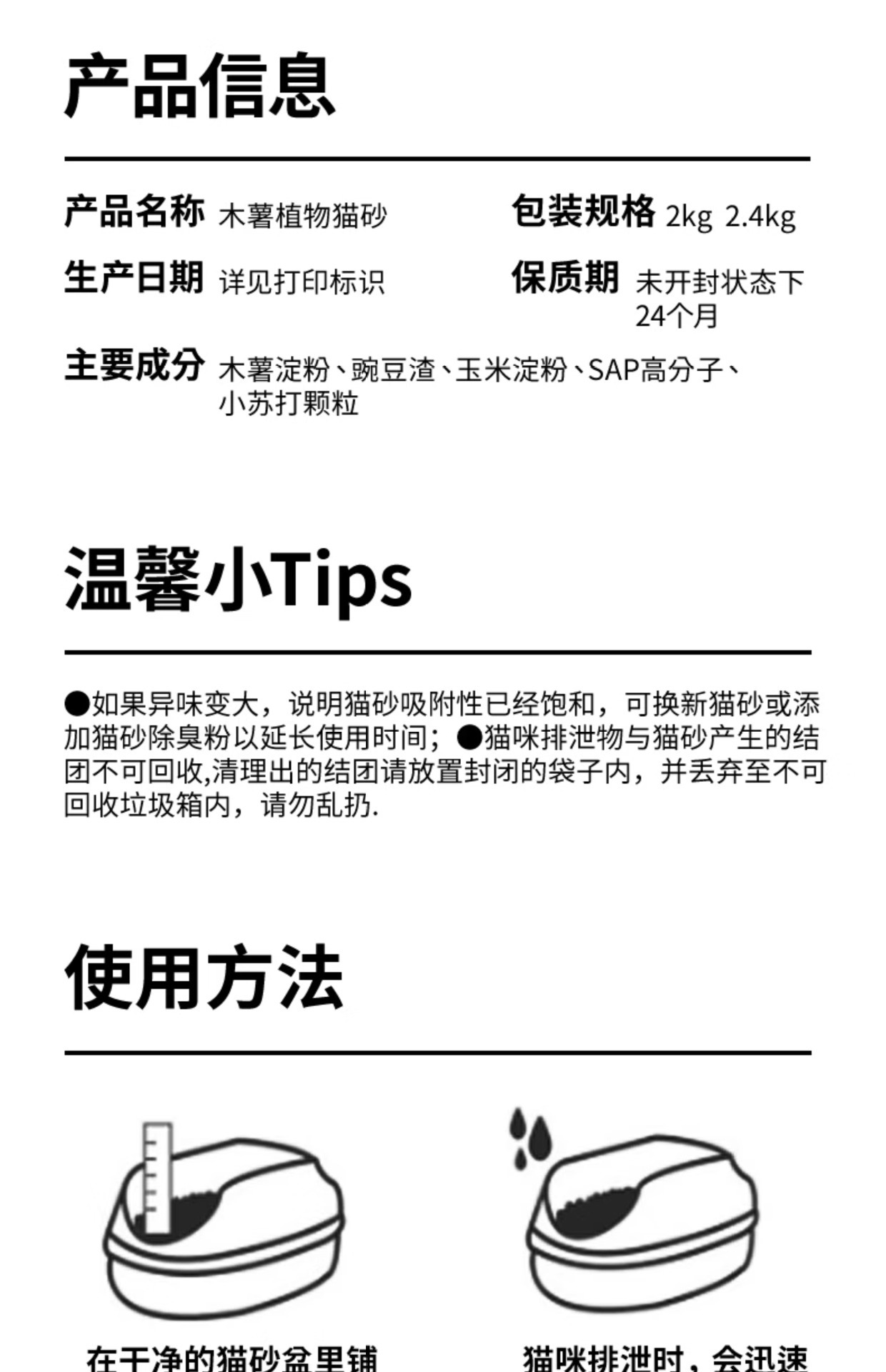 • 진공포장[타피오카두부혼합모래] 2.4KG*2팩