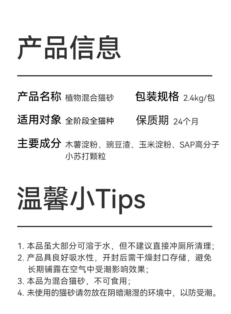 • 【300개 한정! 기간한정] 카사바 고양이 모래 2.4KG*10팩