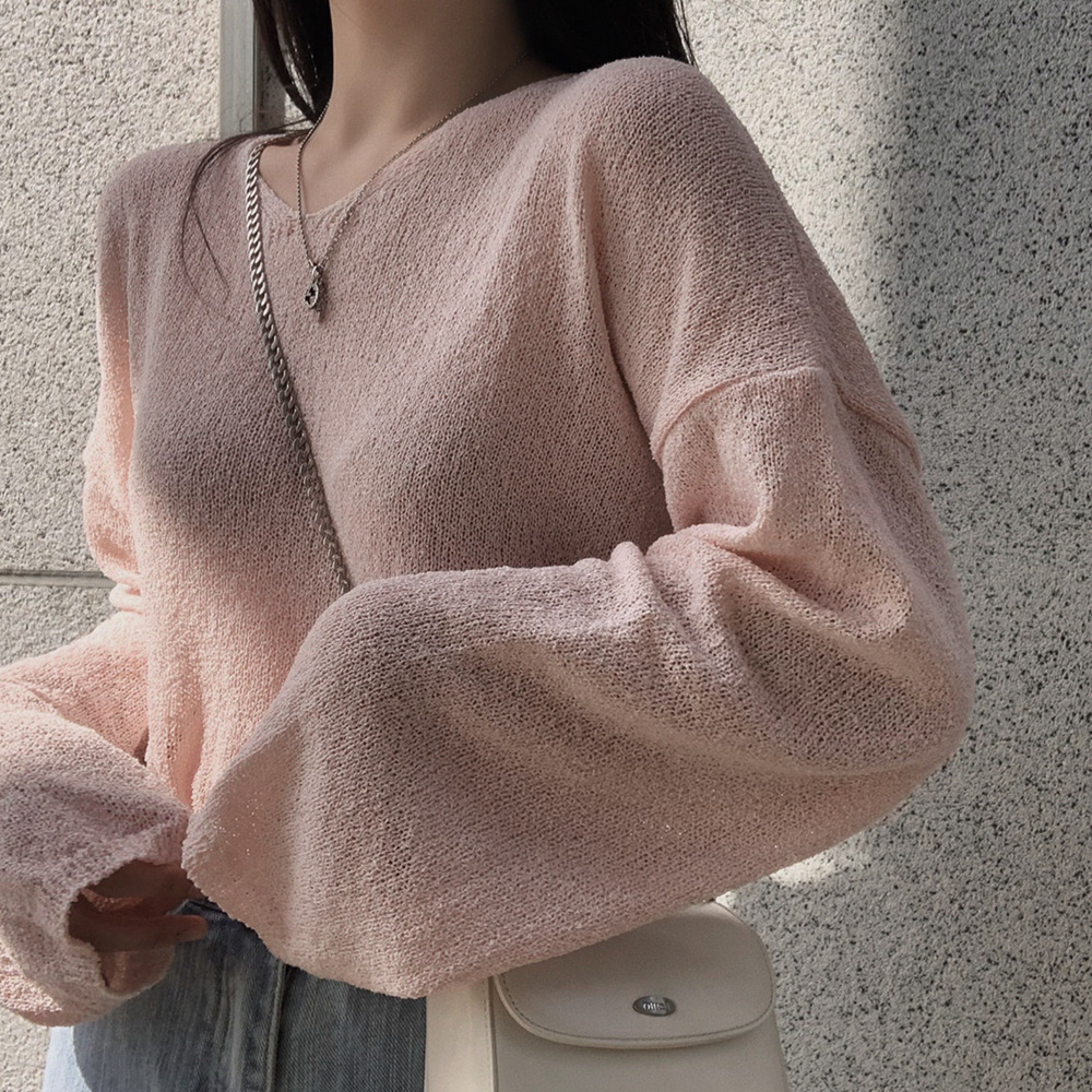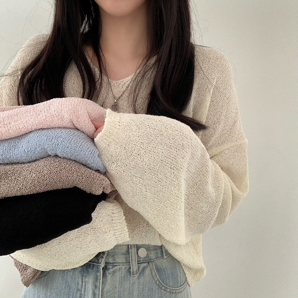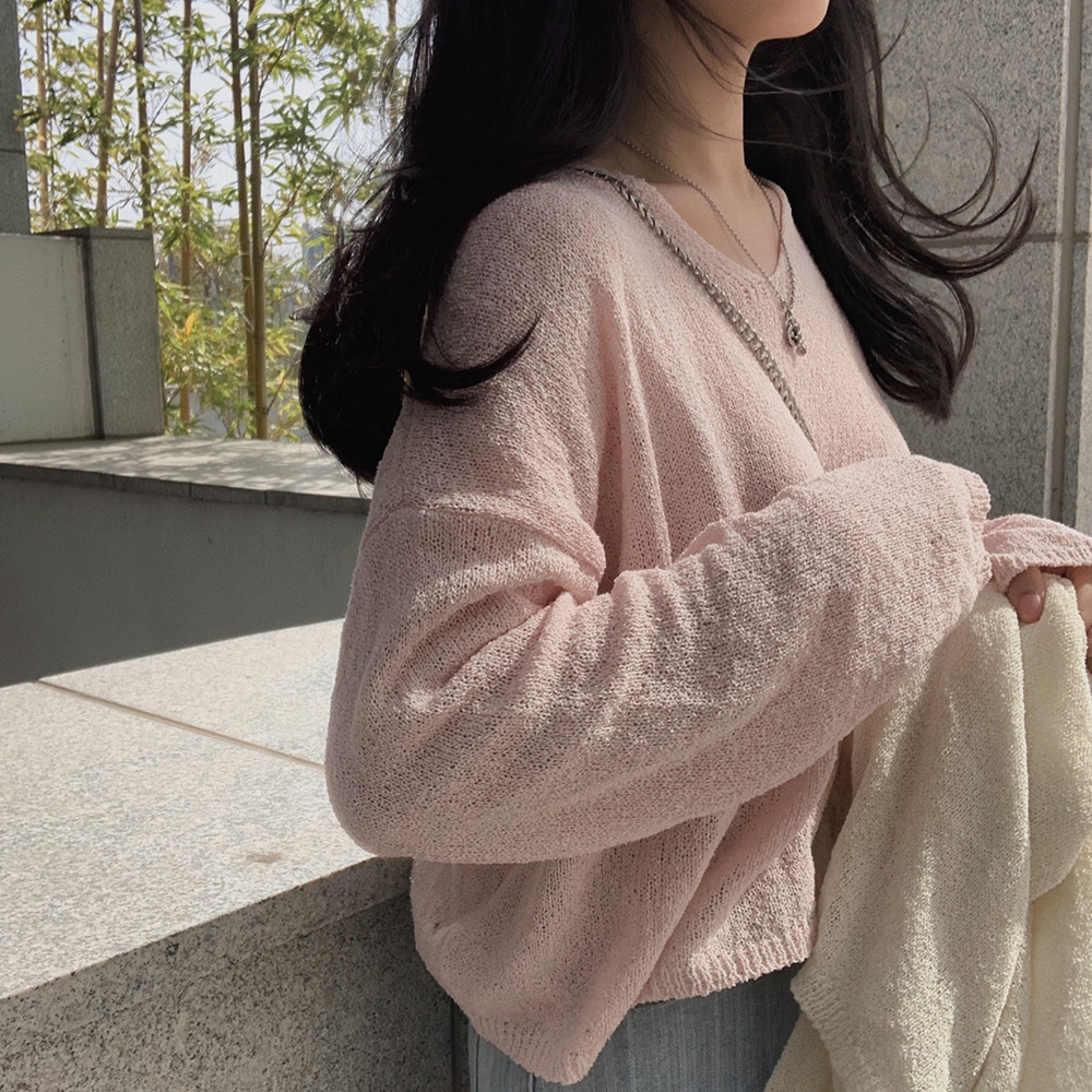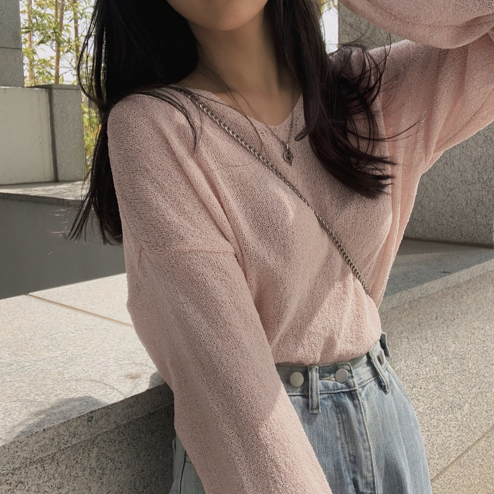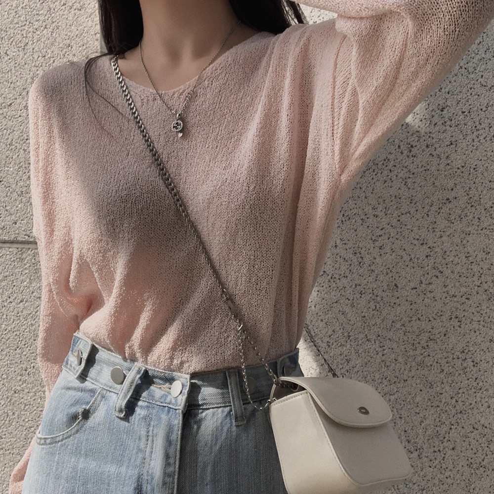 韩系chic小众慵懒风冰丝防晒罩衫女宽松百搭长袖薄款针织衫上衣