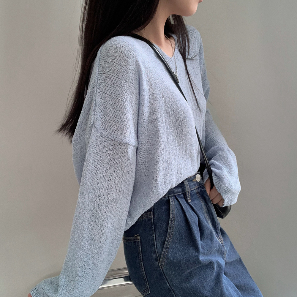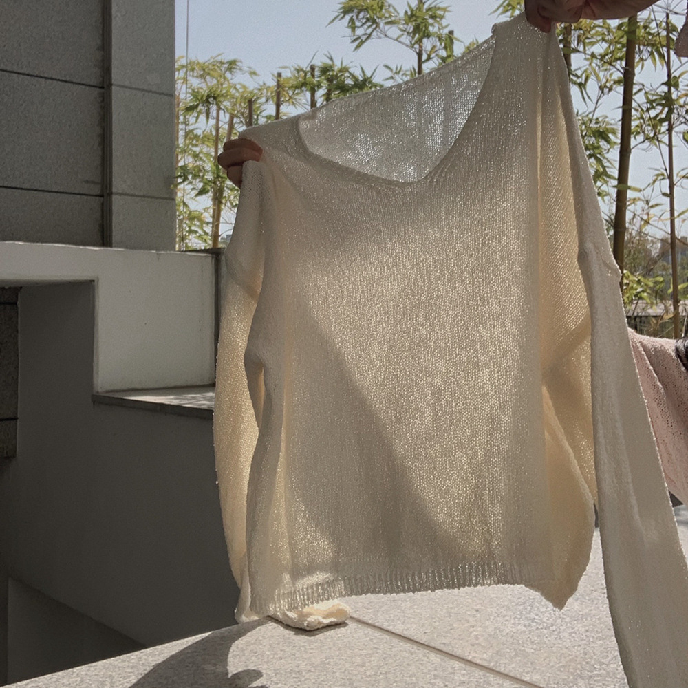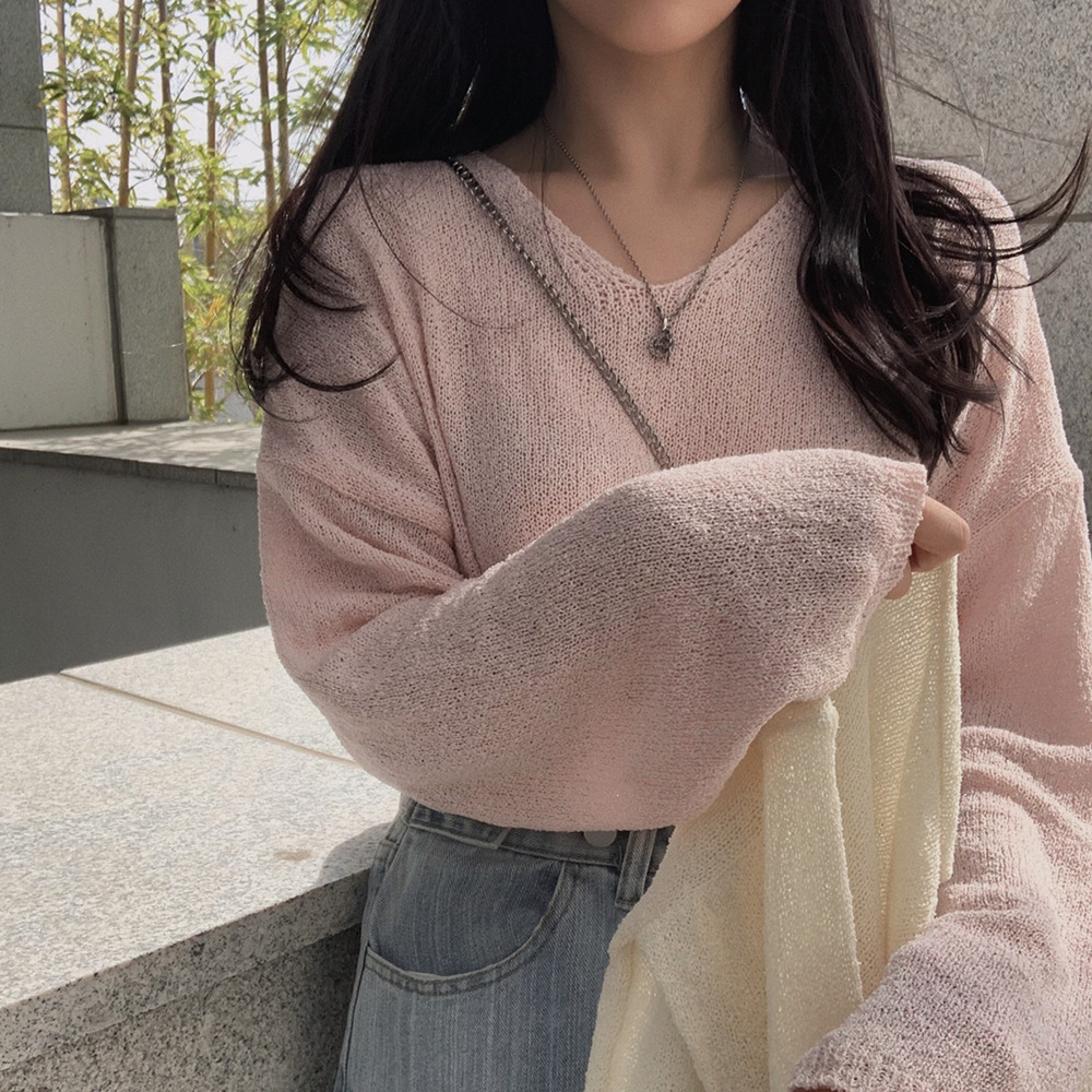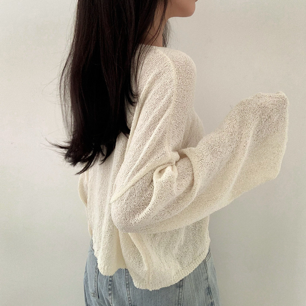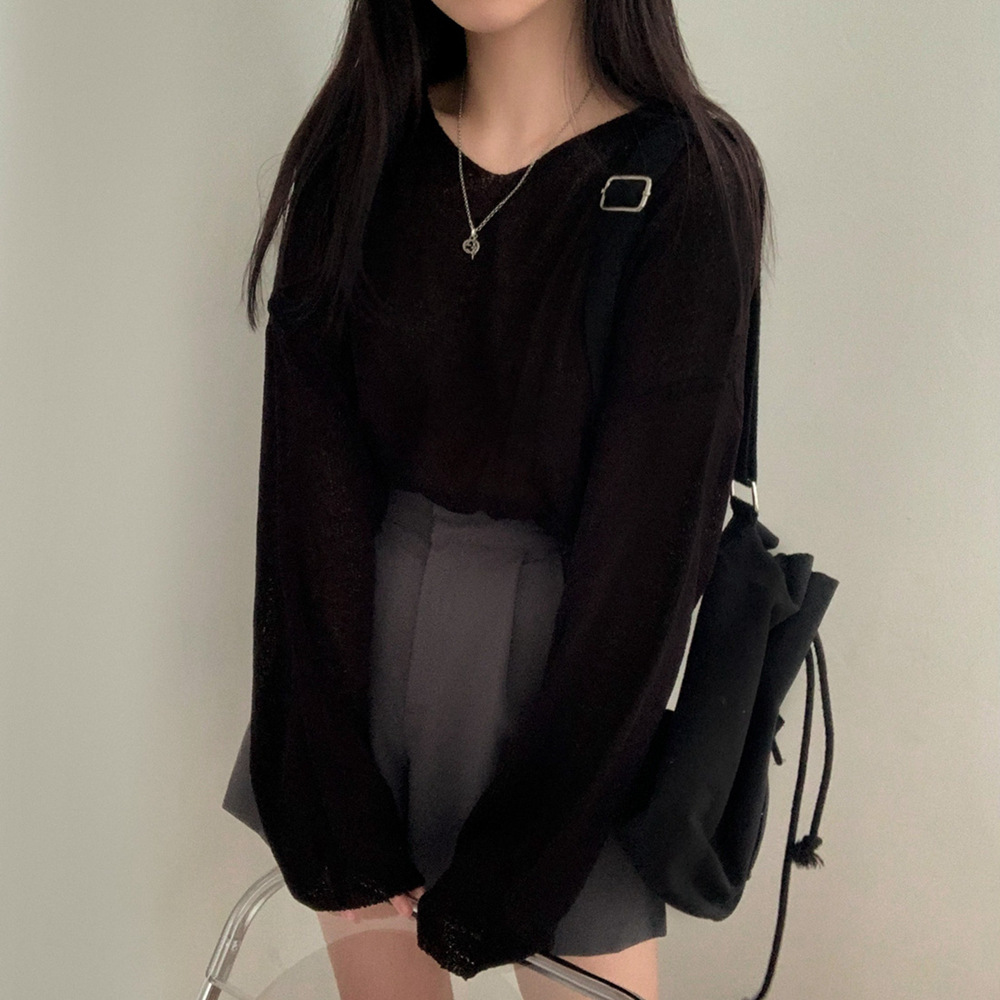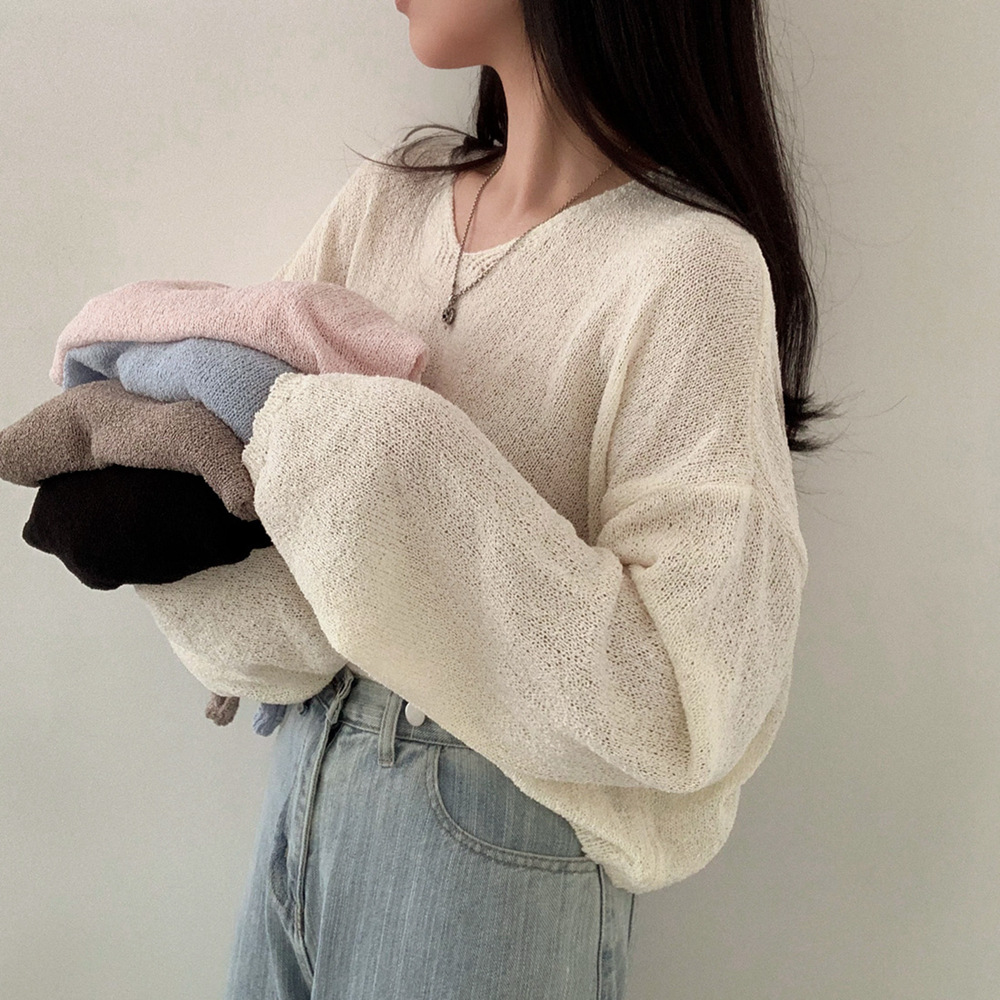 韩系chic小众慵懒风冰丝防晒罩衫女宽松百搭长袖薄款针织衫上衣