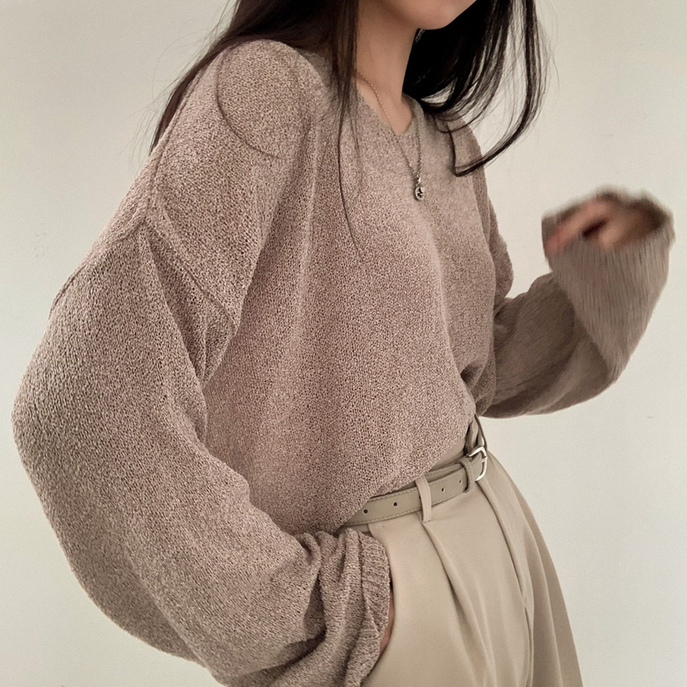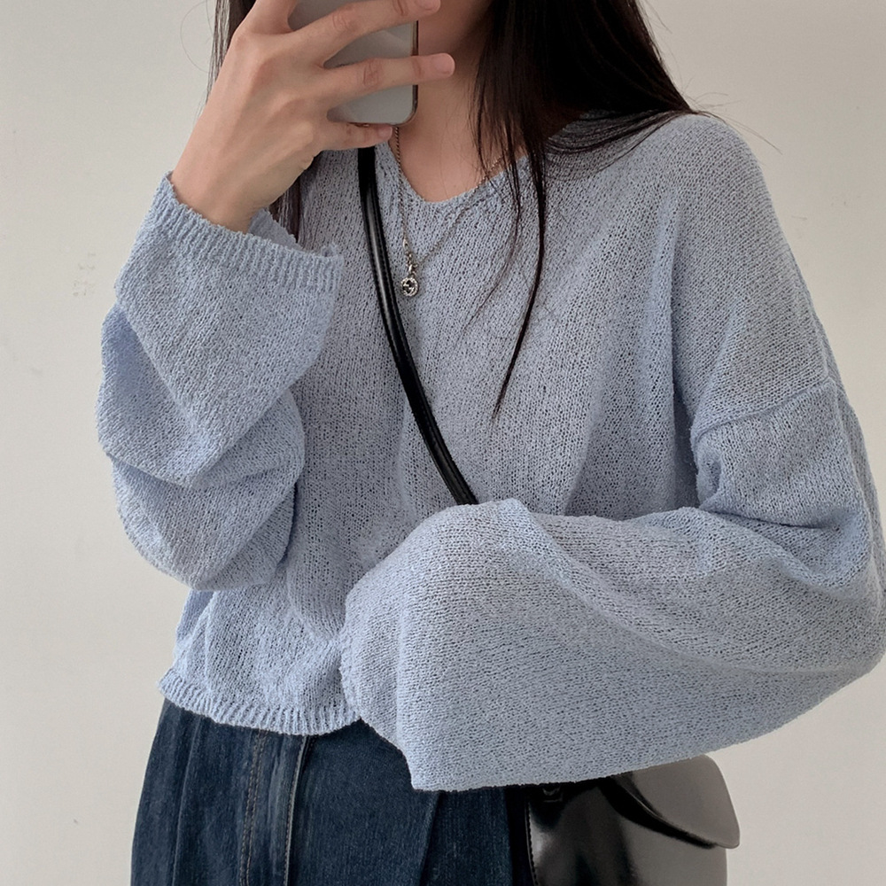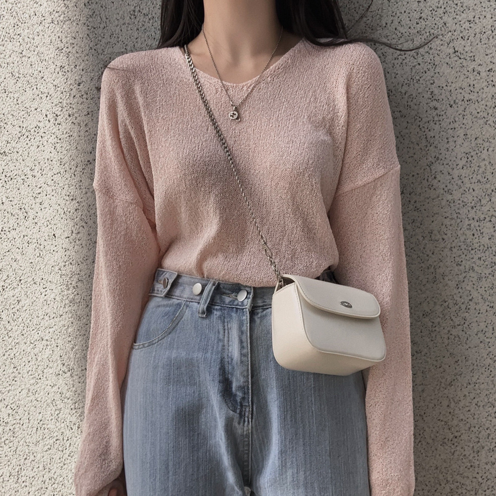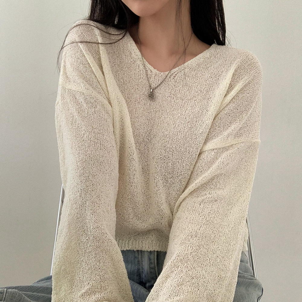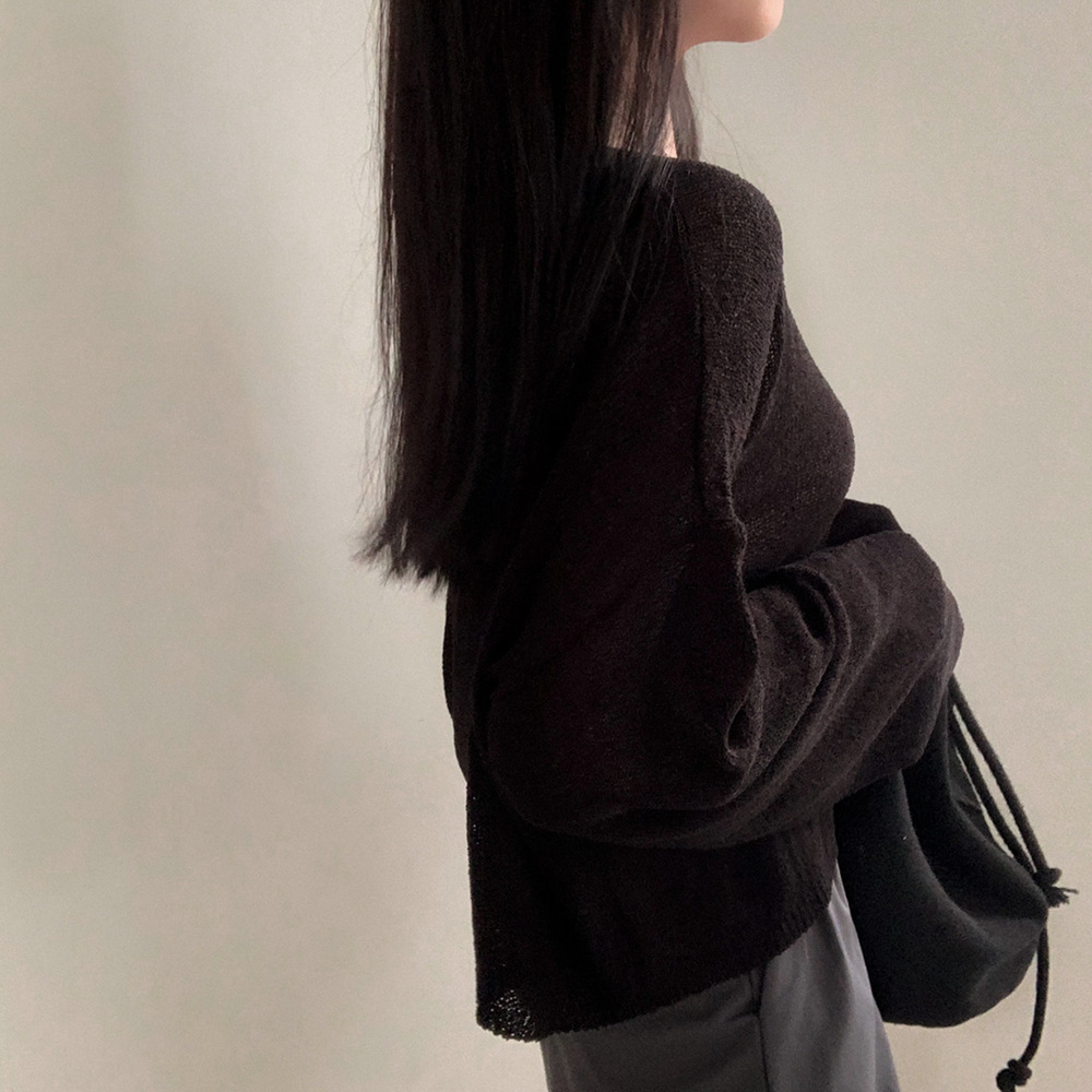 韩系chic小众慵懒风冰丝防晒罩衫女宽松百搭长袖薄款针织衫上衣