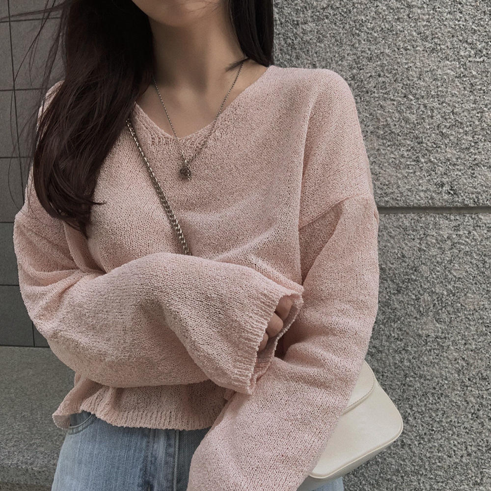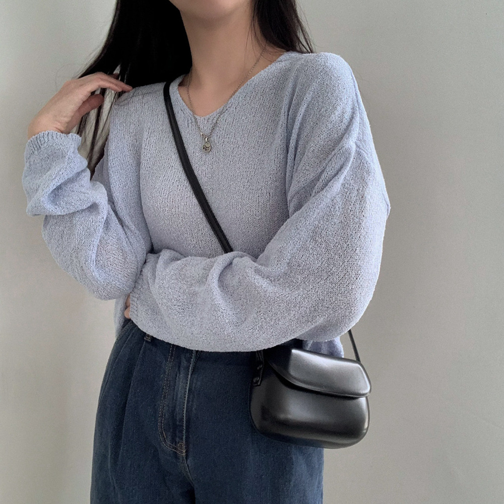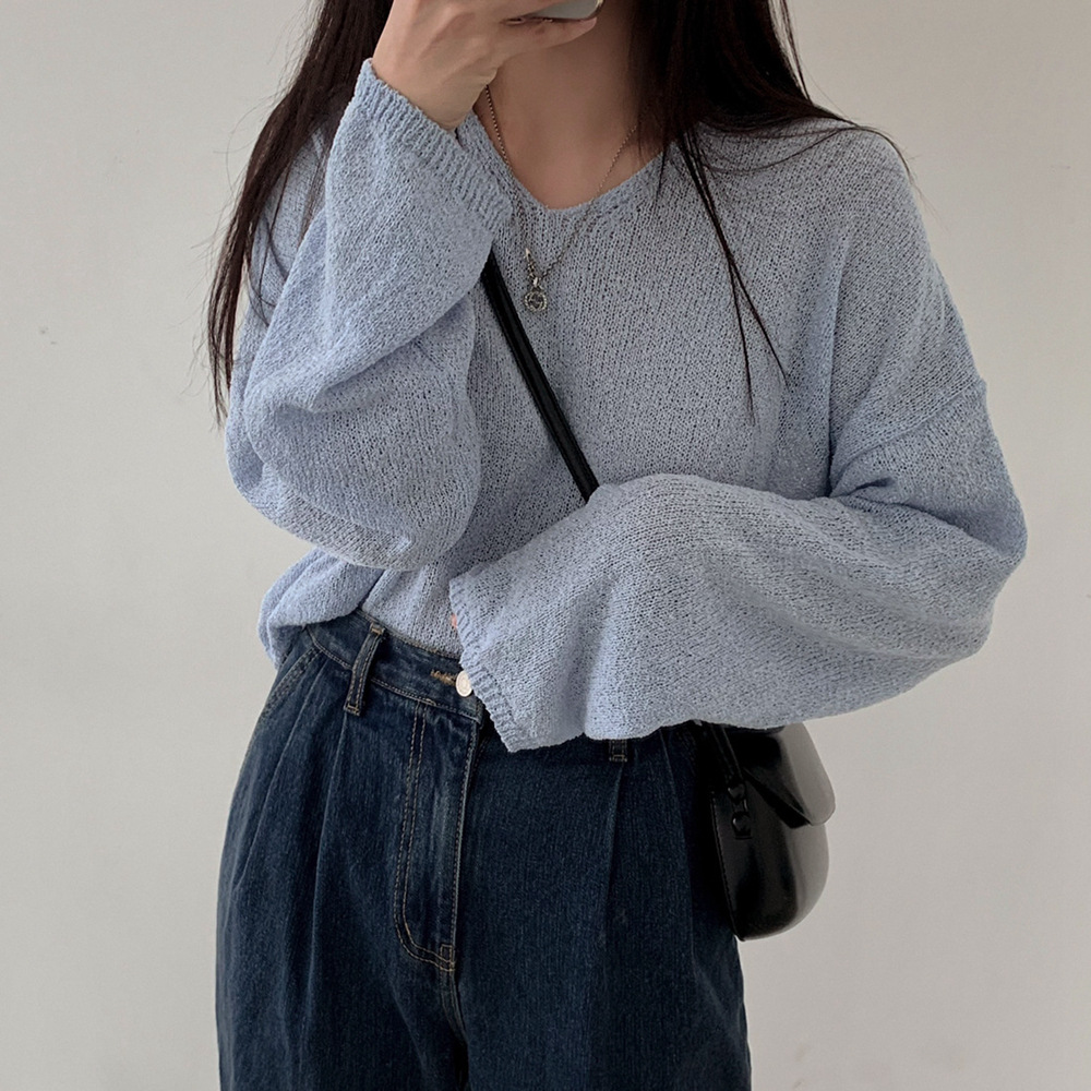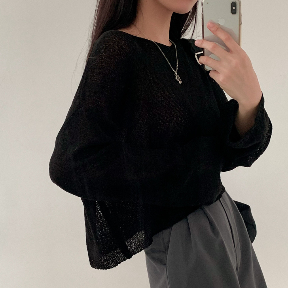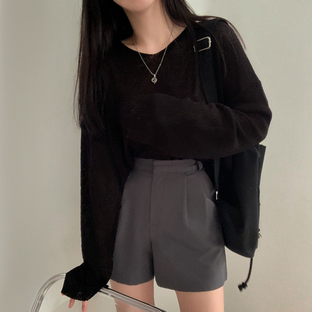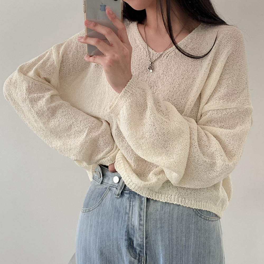 韩系chic小众慵懒风冰丝防晒罩衫女宽松百搭长袖薄款针织衫上衣