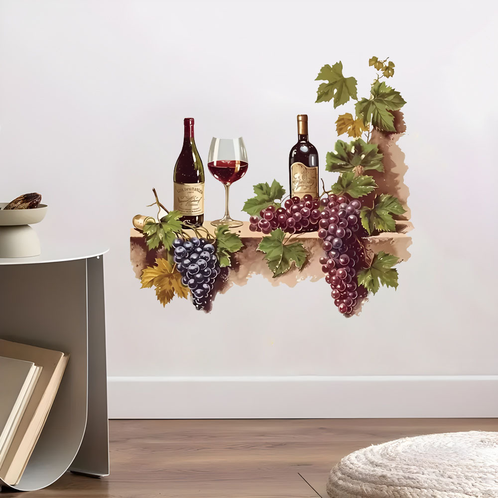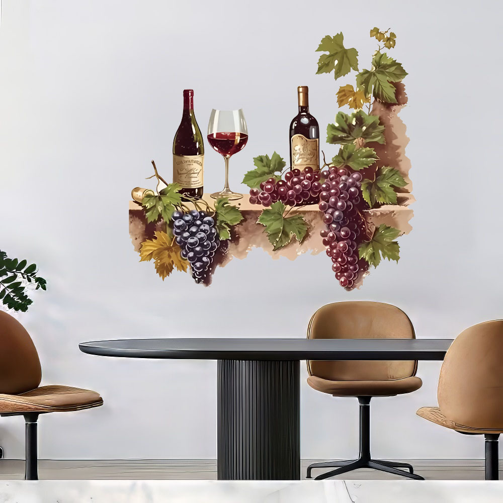 대외 무역 수채화 포도 와인 컵 레스토랑 벽 간단한 장식 스티커 방수 주방 벽 장식