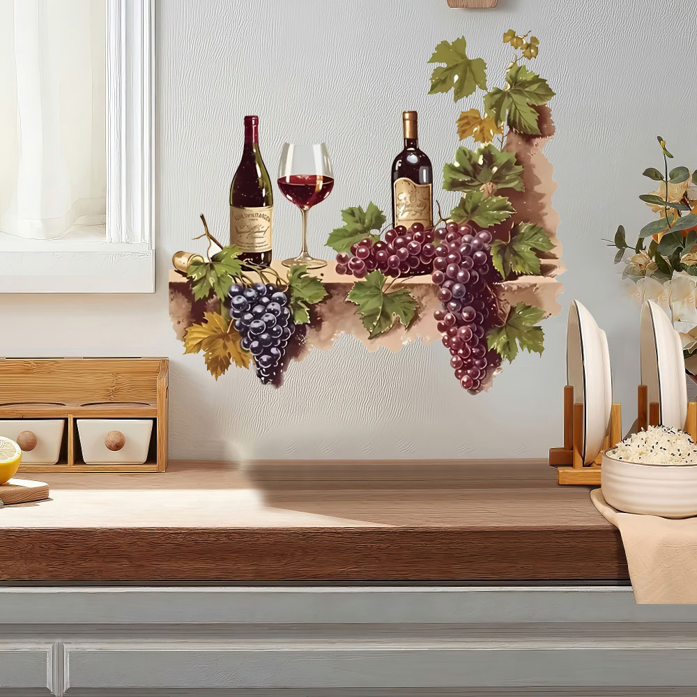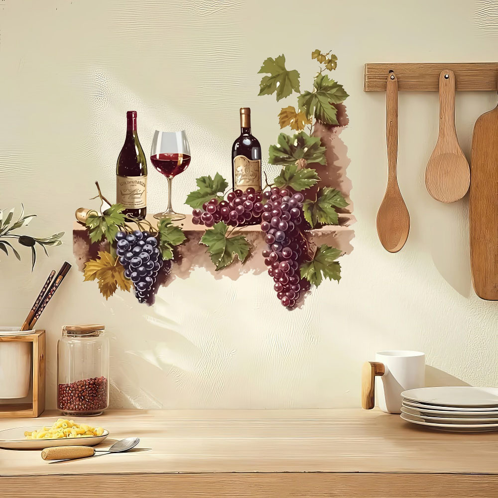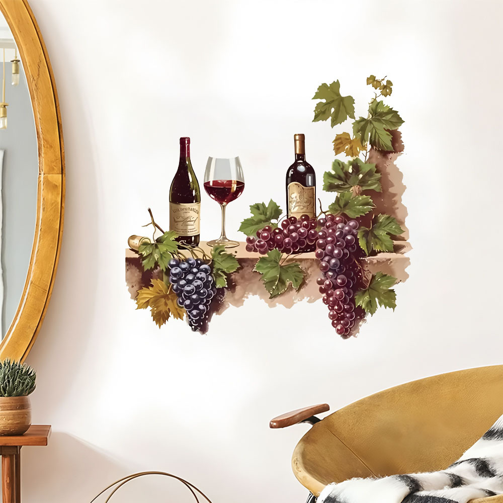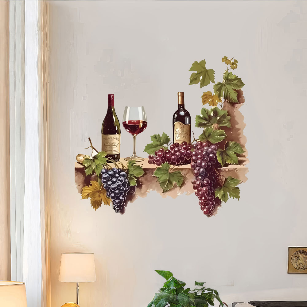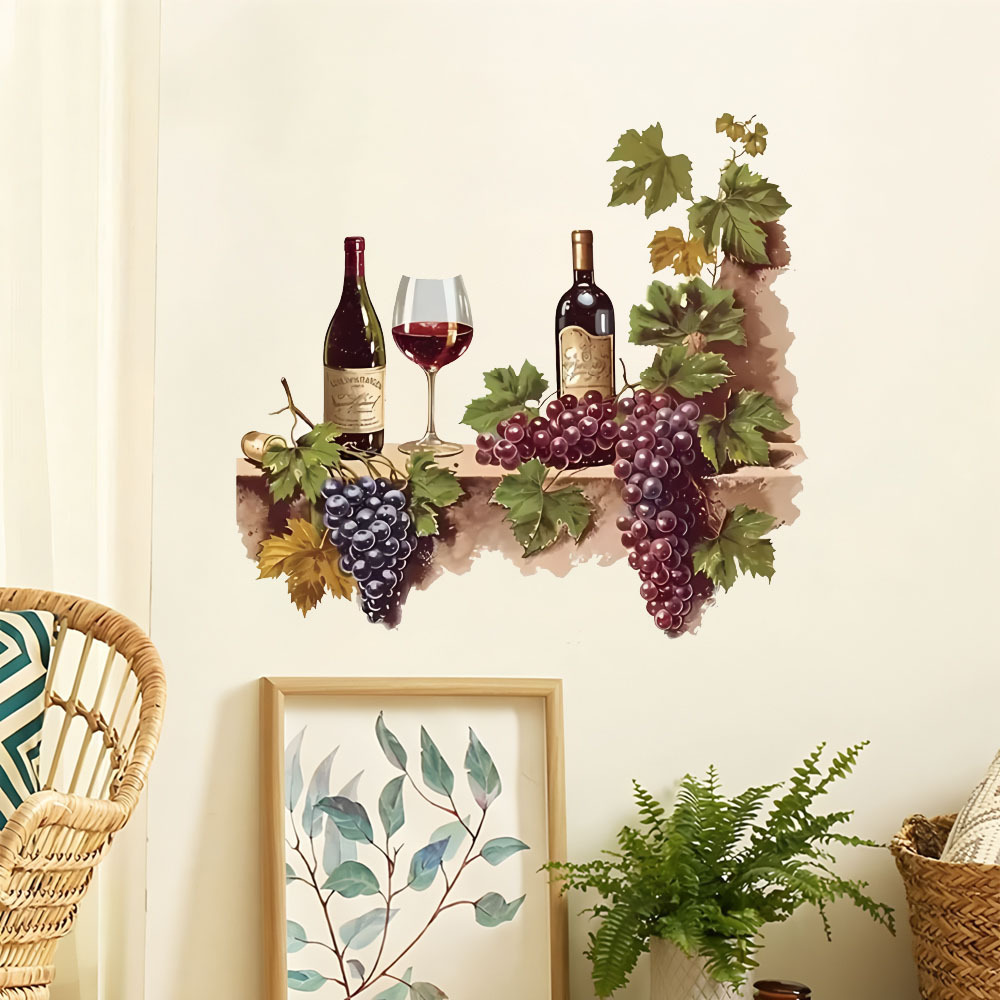 대외 무역 수채화 포도 와인 컵 레스토랑 벽 간단한 장식 스티커 방수 주방 벽 장식스토어 가기