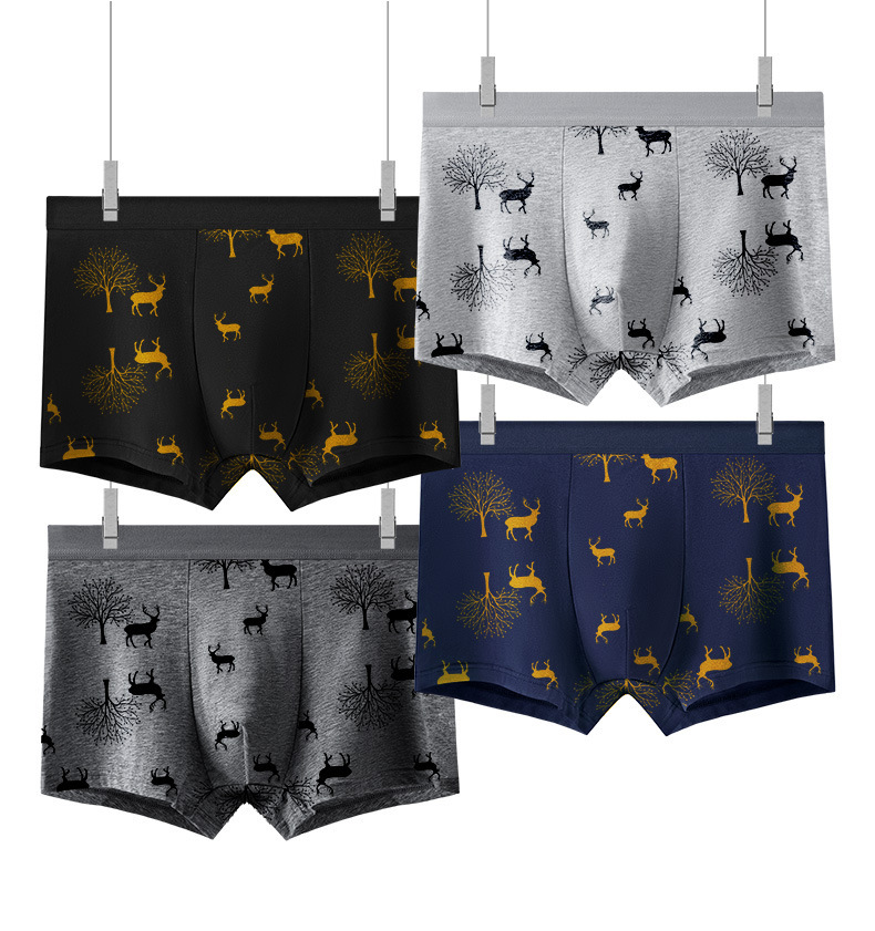 正品男士内裤男平角裤头印花青年透气男生四角裤衩男式短裤