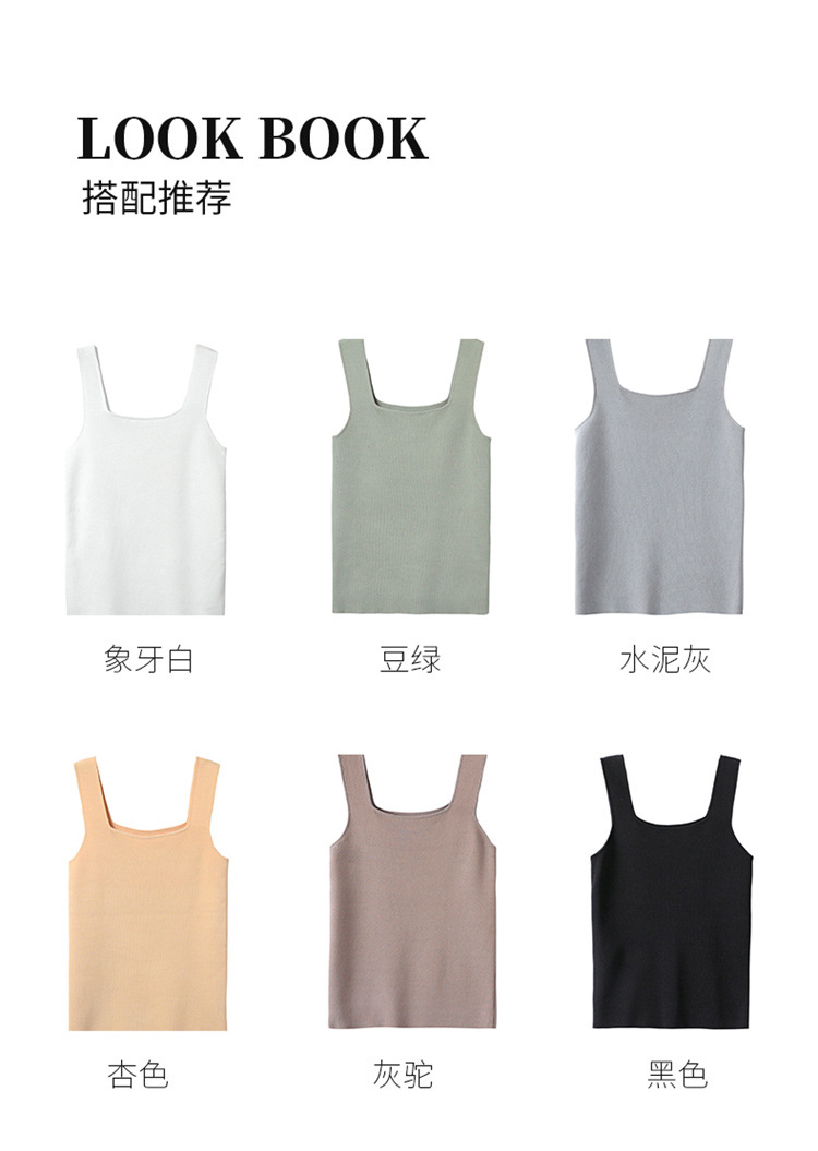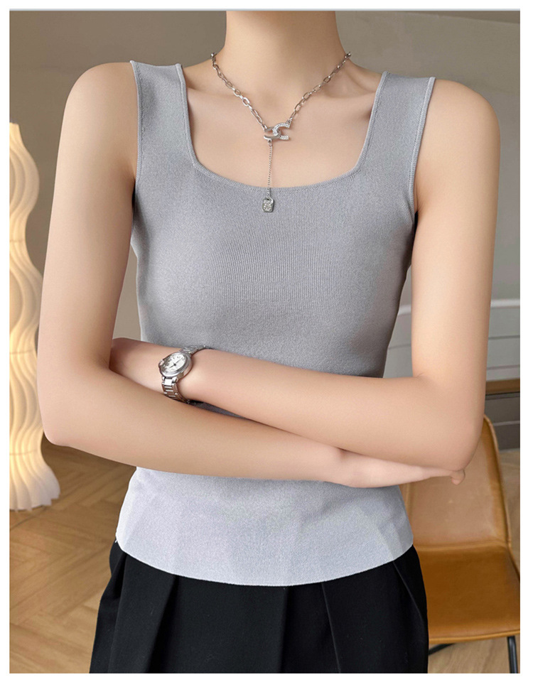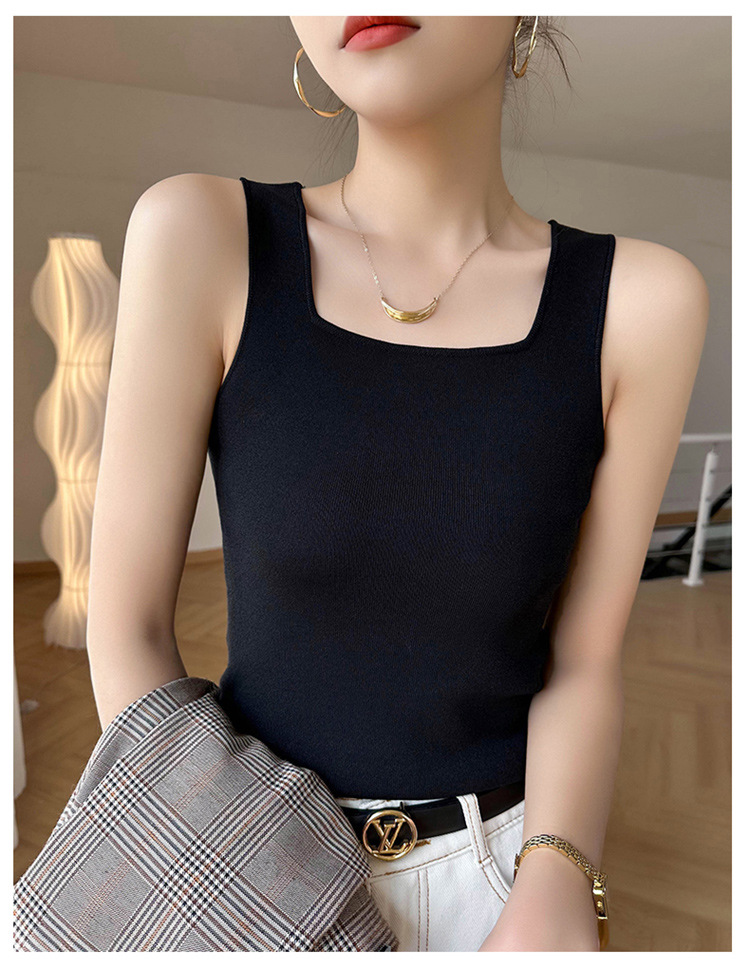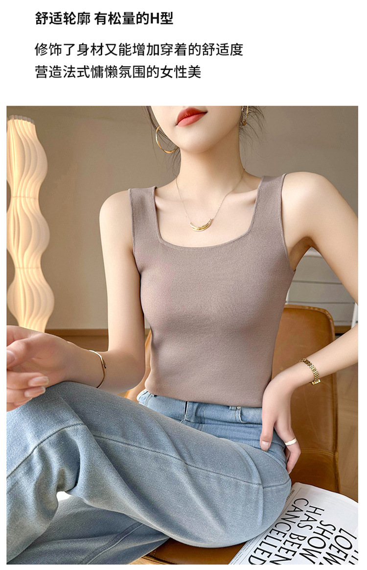 스퀘어 칼라 민소매 니트 조끼 여성 2025 년 여름 새로운 우아한 슬림 핏 카미 솔 탑 짧은 유행 외복스토어 가기