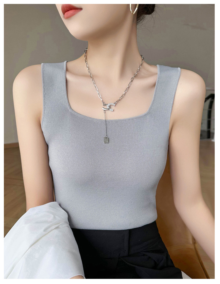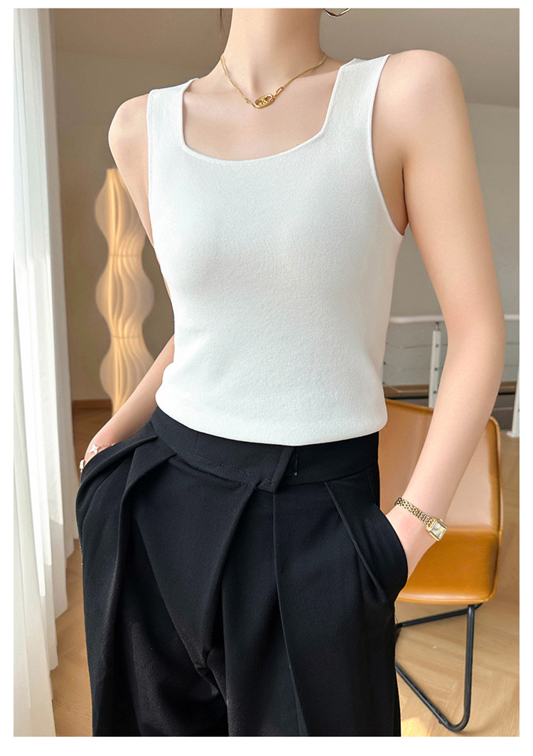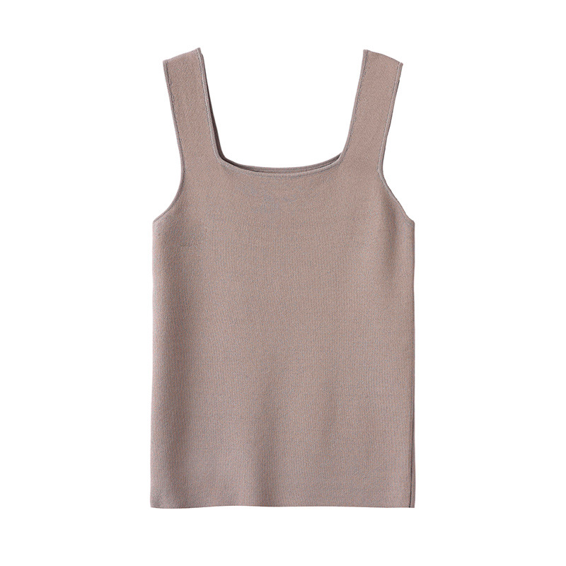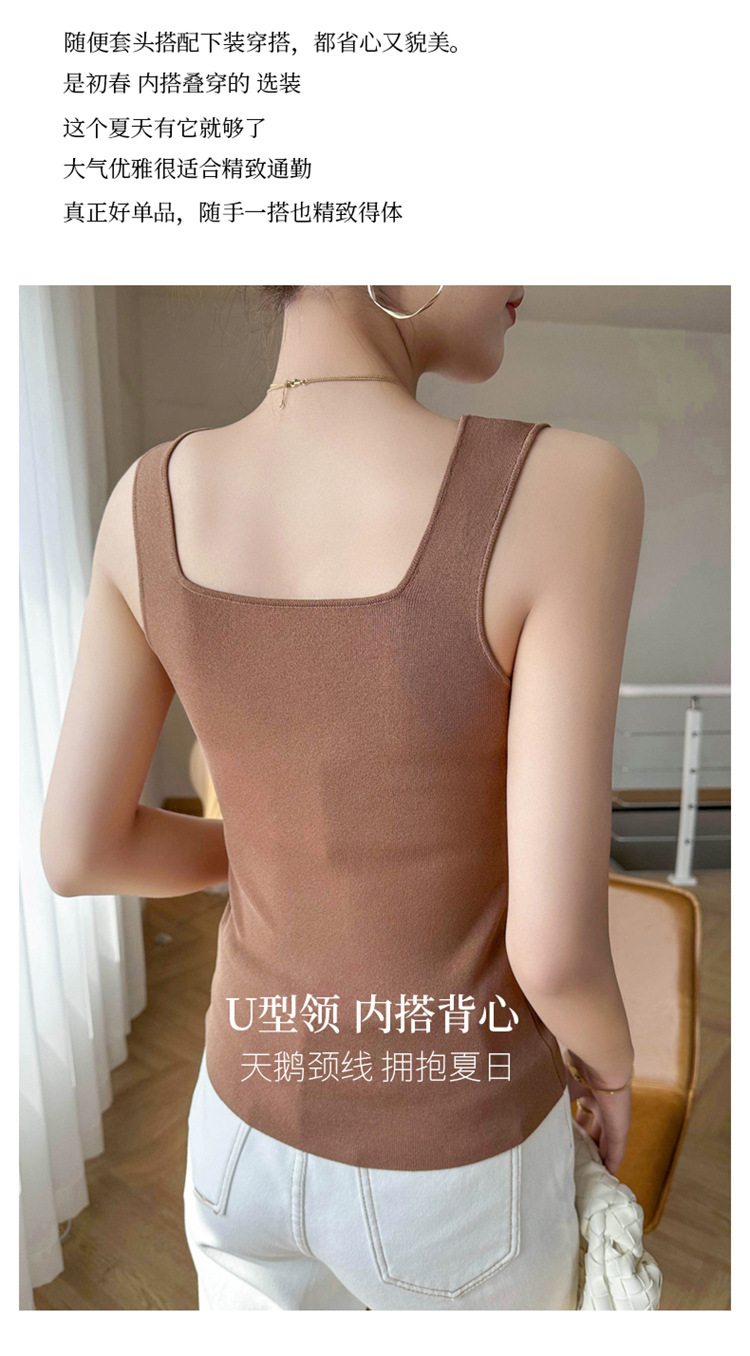 스퀘어 칼라 민소매 니트 조끼 여성 2025 년 여름 새로운 우아한 슬림 핏 카미 솔 탑 짧은 유행 외복스토어 가기