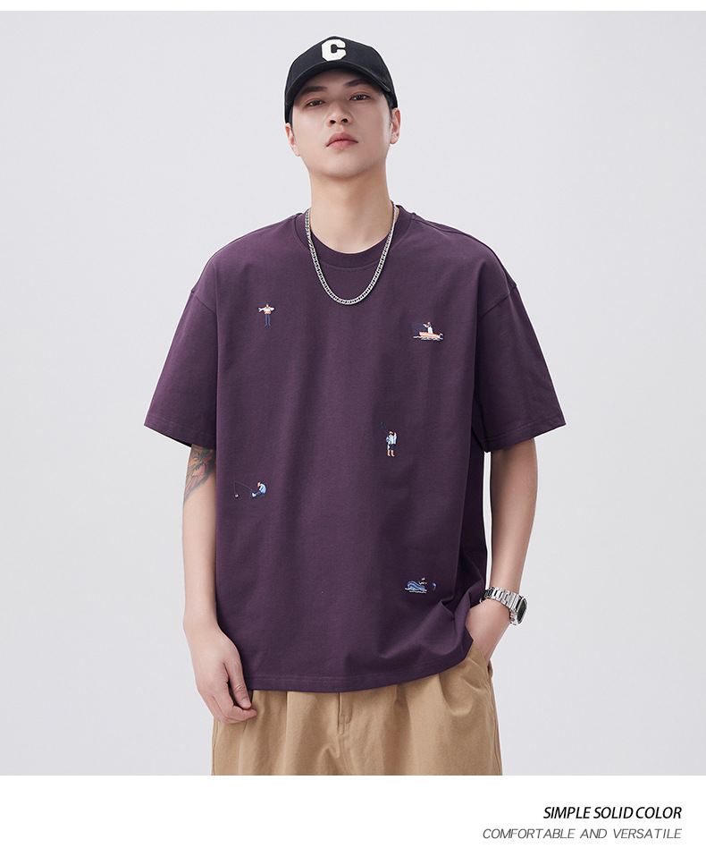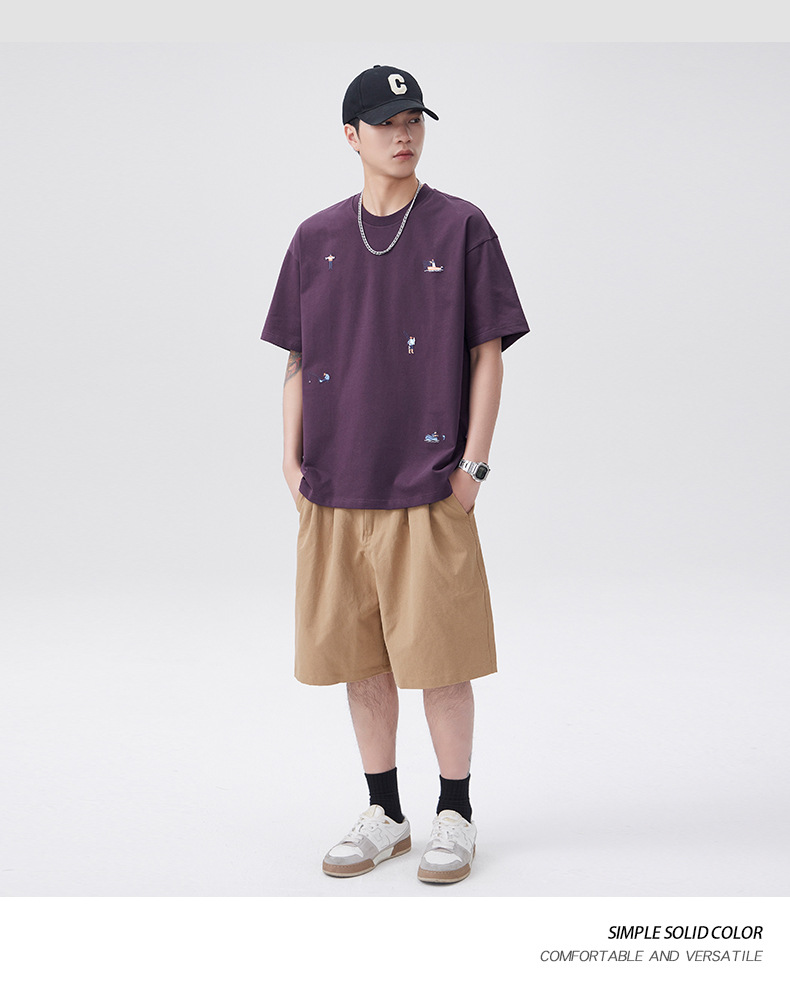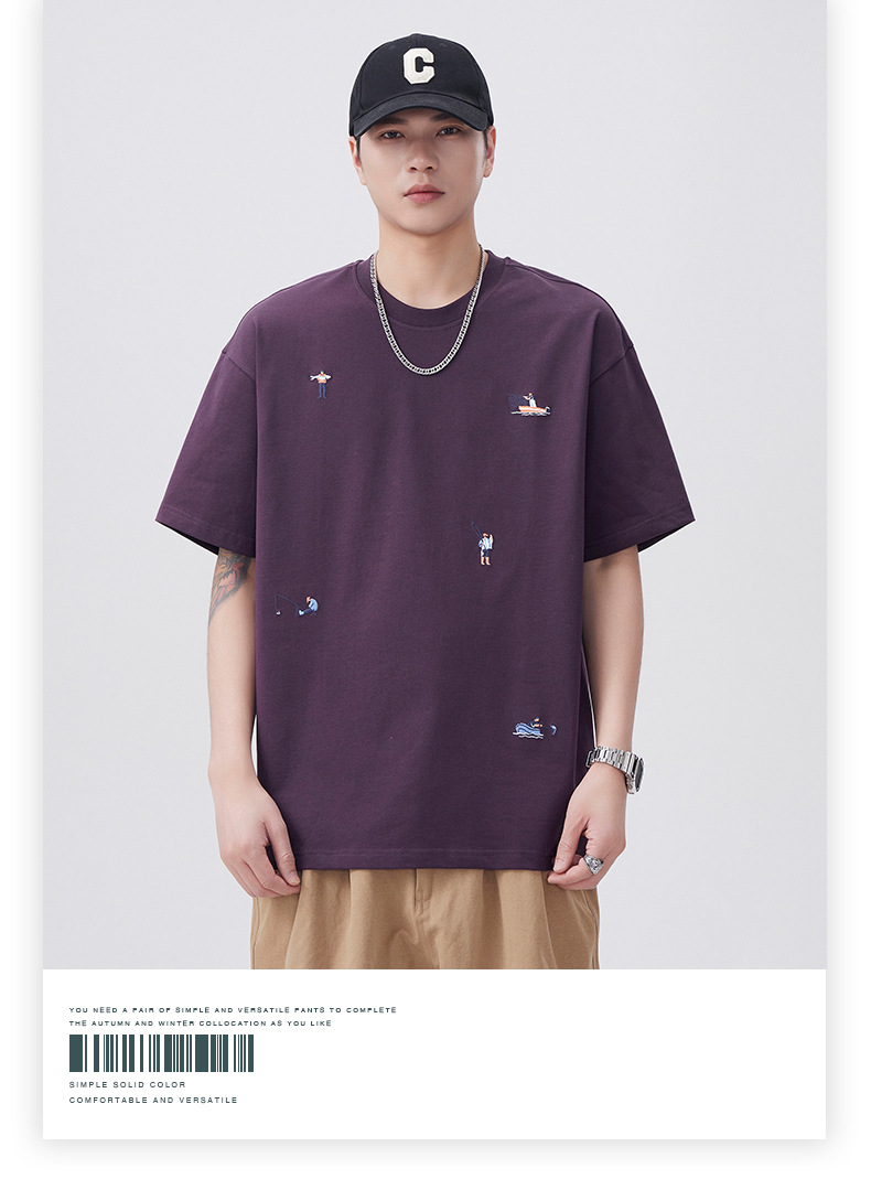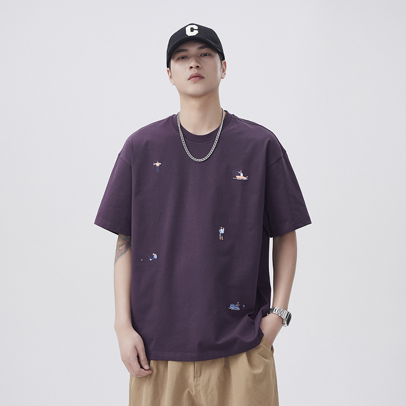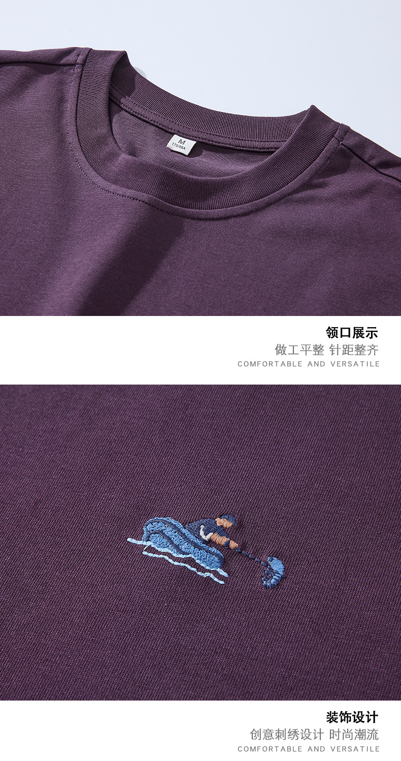 260g 헤비 코튼 캐주얼 티셔츠 남자의 여름 새로운 창조적 인 자수 티셔츠 느슨한 반 소매베이스 셔츠