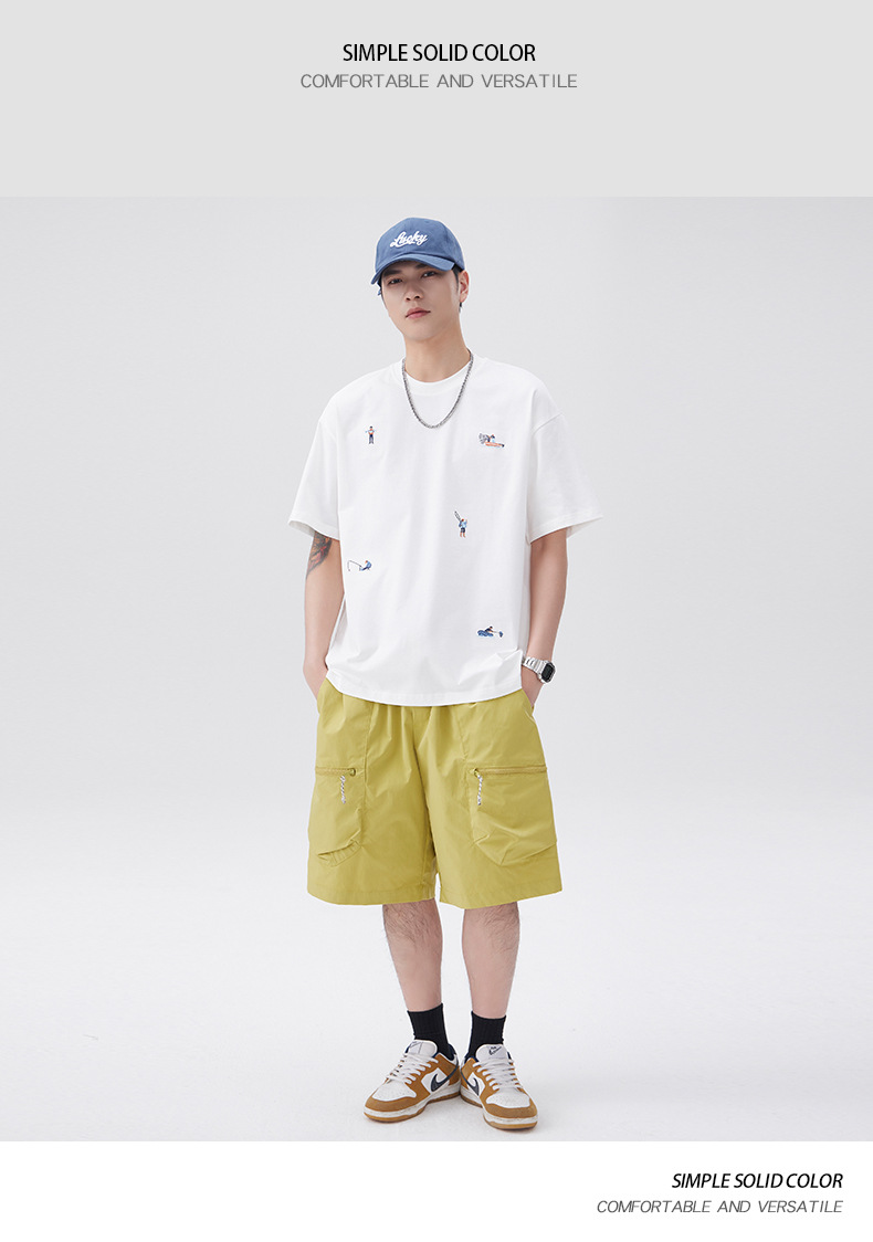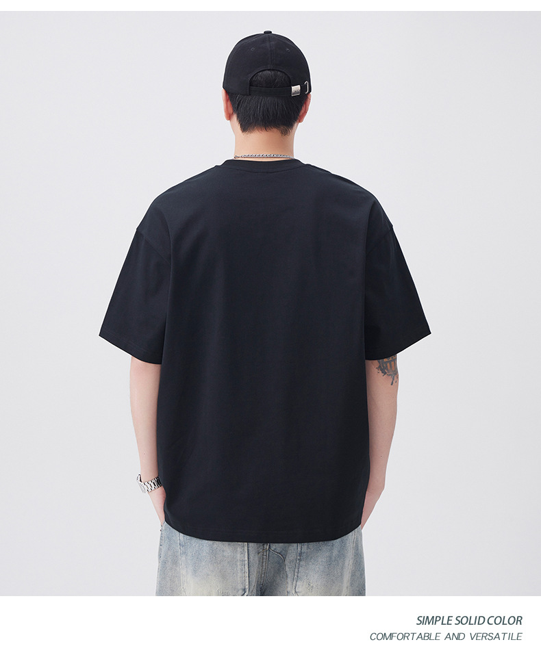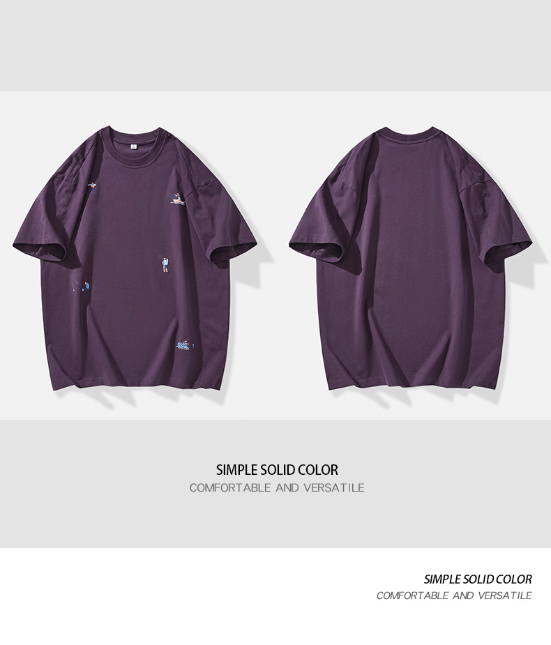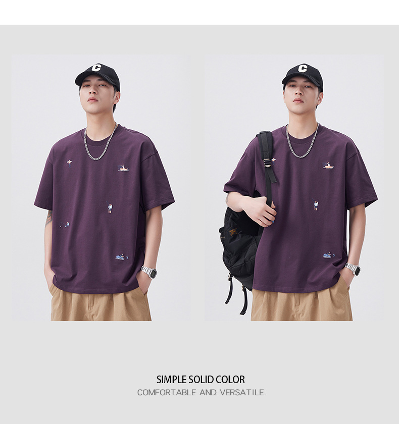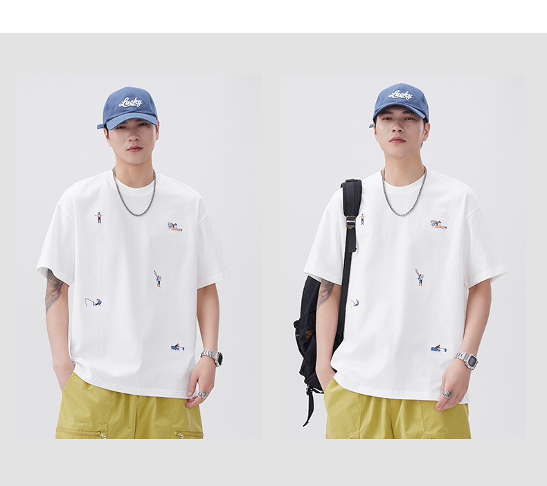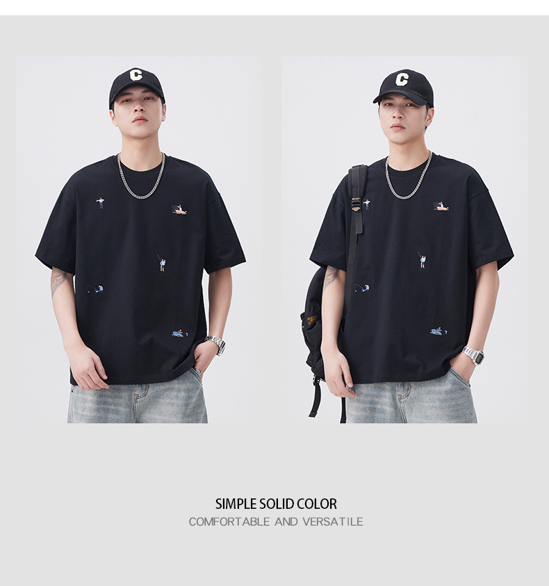 260g 헤비 코튼 캐주얼 티셔츠 남자의 여름 새로운 창조적 인 자수 티셔츠 느슨한 반 소매베이스 셔츠스토어 가기