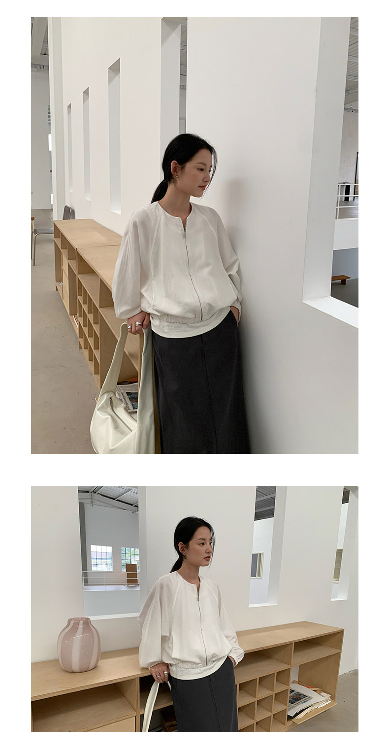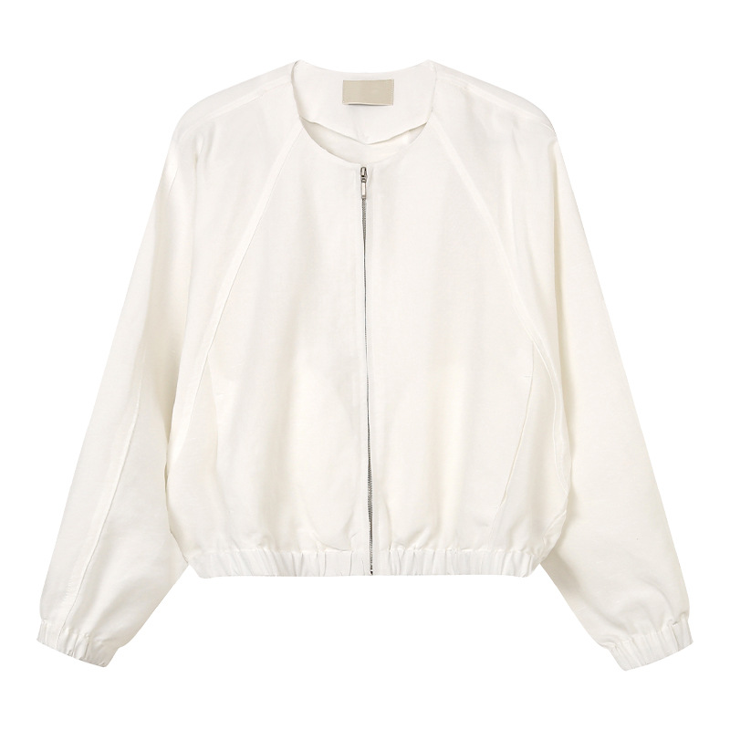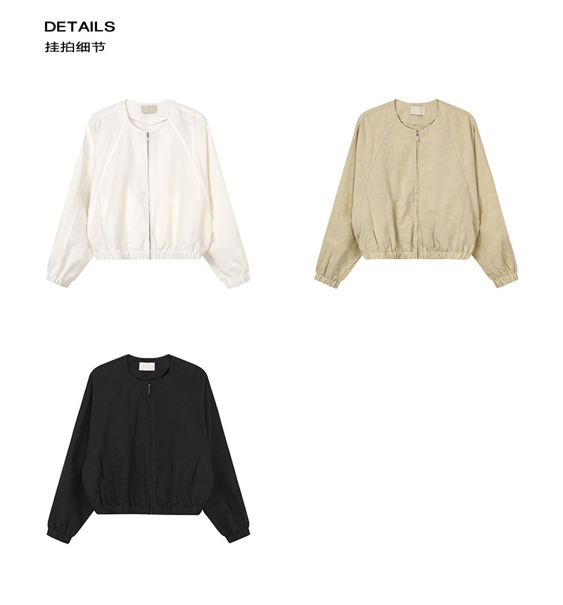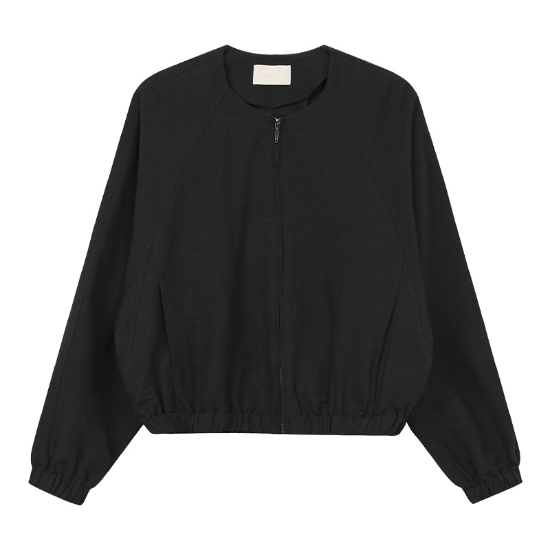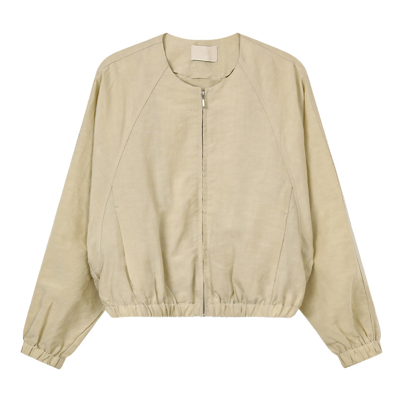 TG 캐주얼 라글란 슬리브 주름 얇은 지퍼 재킷 여성용 2025 년 봄 새 라운드 넥 루즈 탑 24632