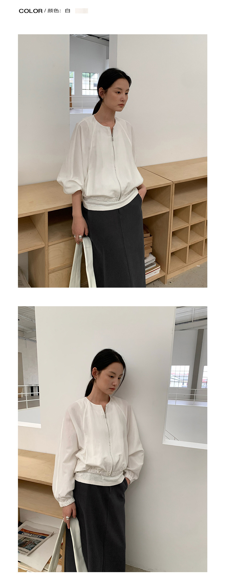 TG 캐주얼 라글란 슬리브 주름 얇은 지퍼 재킷 여성용 2025 년 봄 새 라운드 넥 루즈 탑 24632스토어 가기