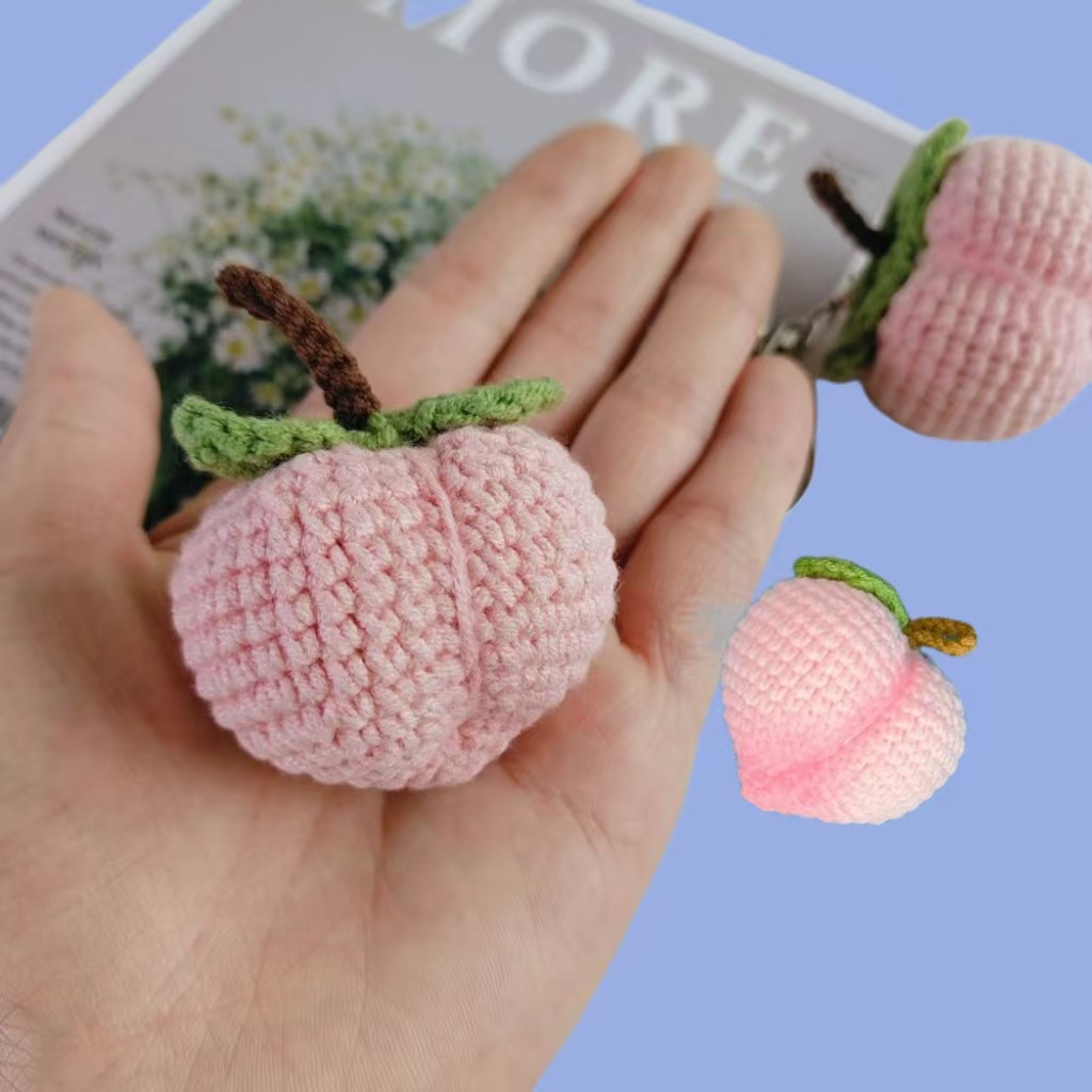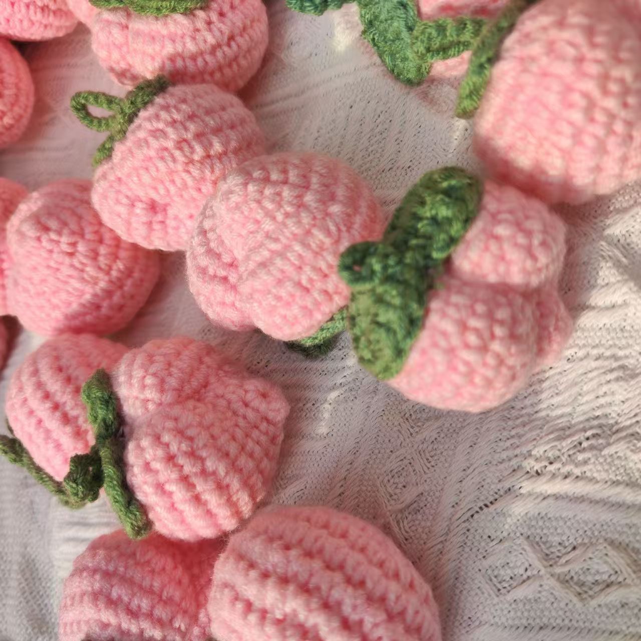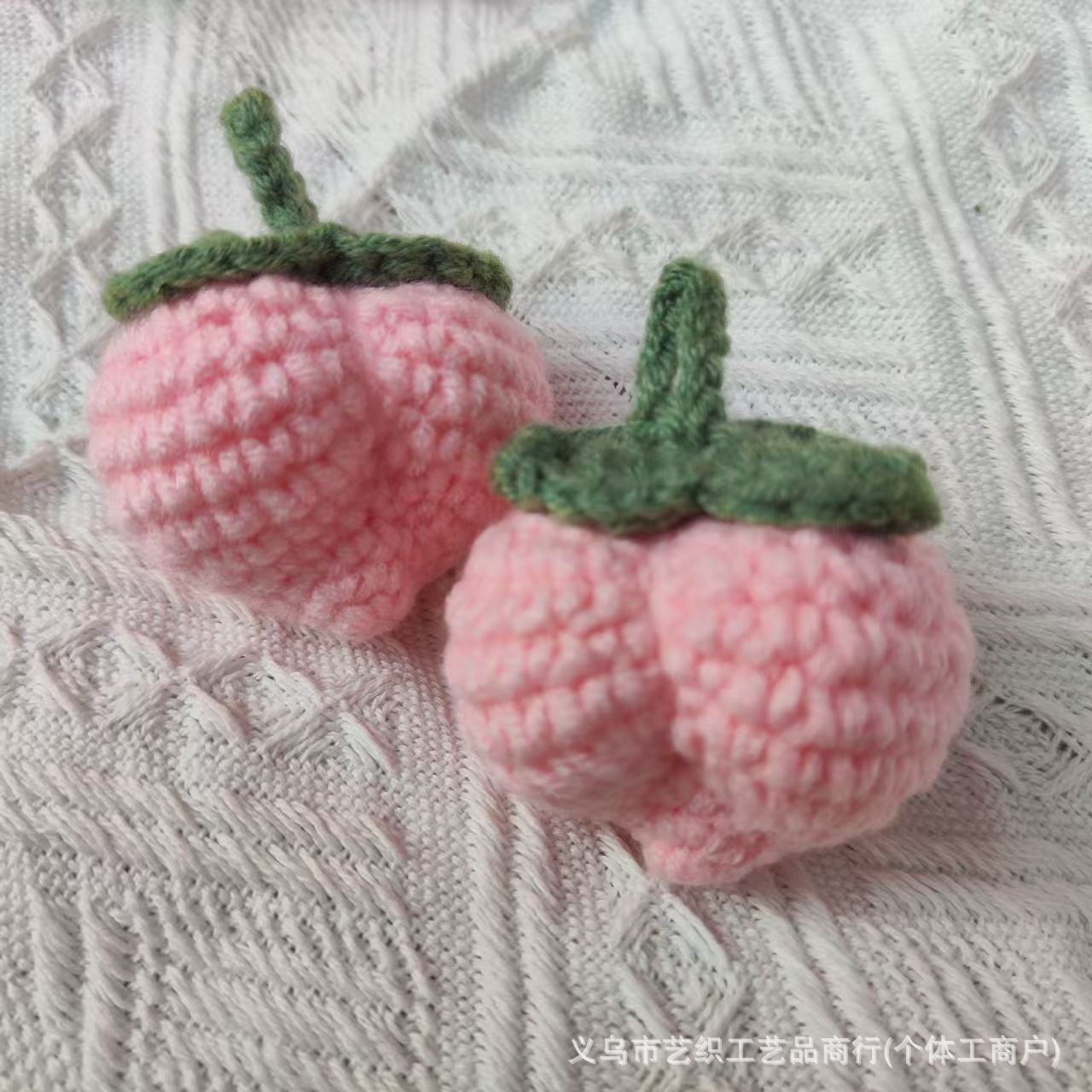 수제 양모 니트 펜던트 복숭아 줄기 키 체인 과일 귀여운 복숭아 당신 해피 가방 교수형 장식품스토어 가기