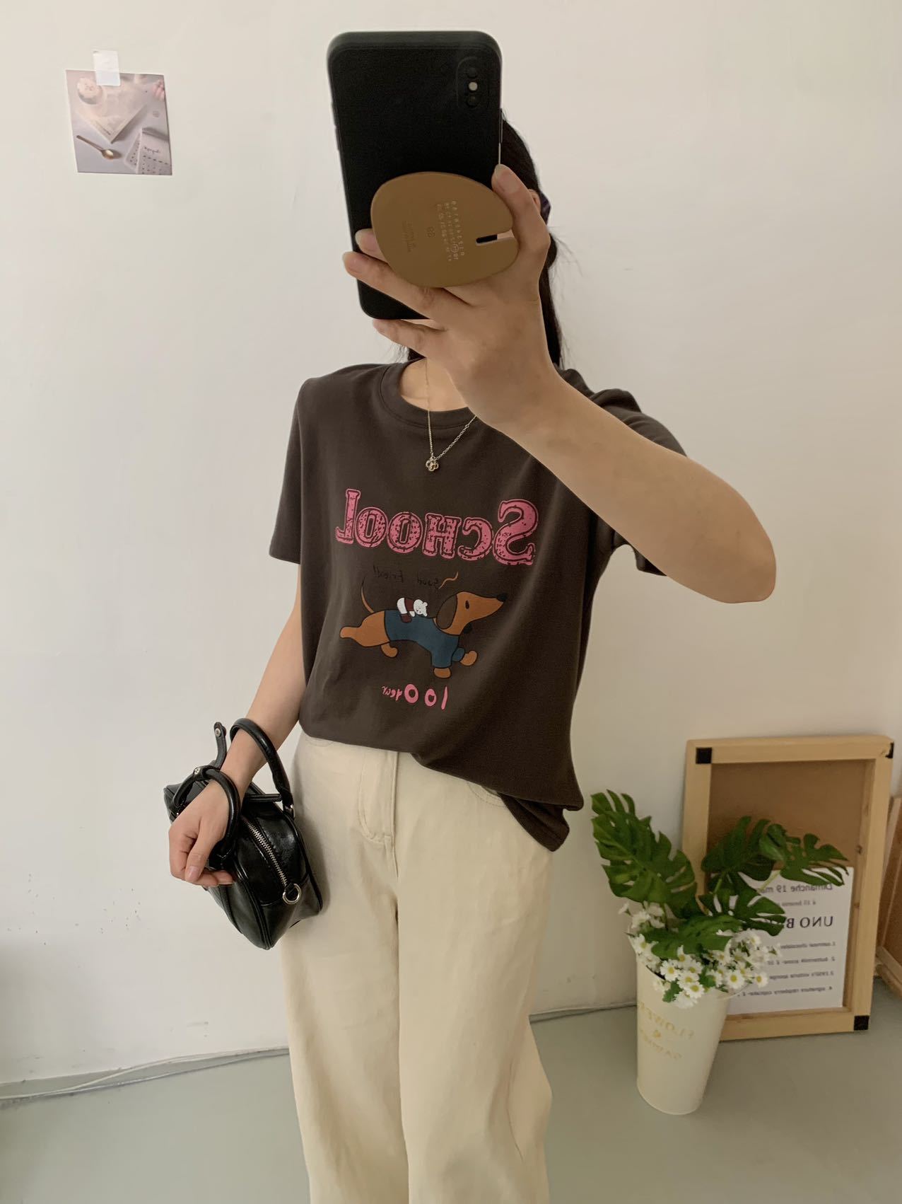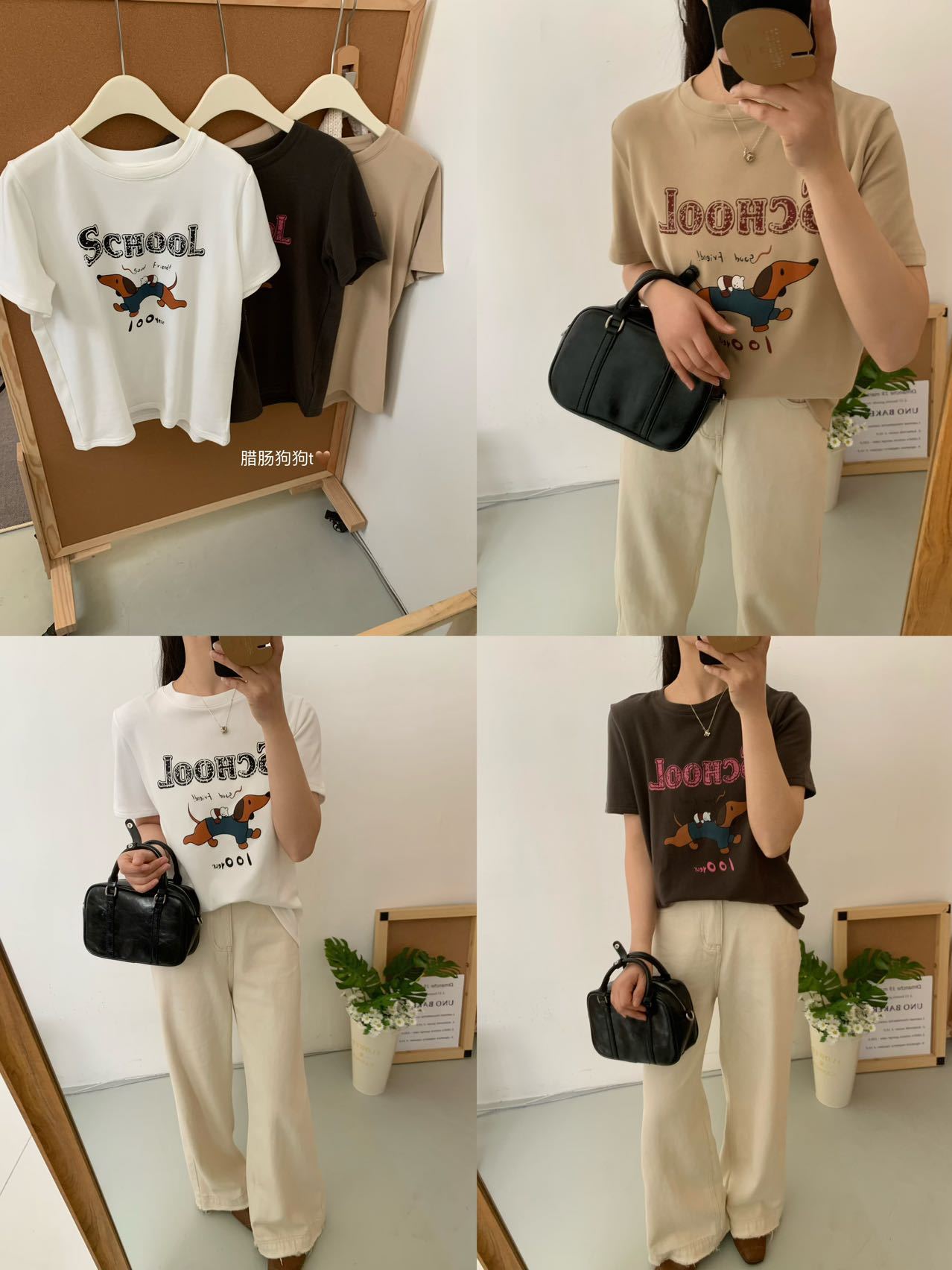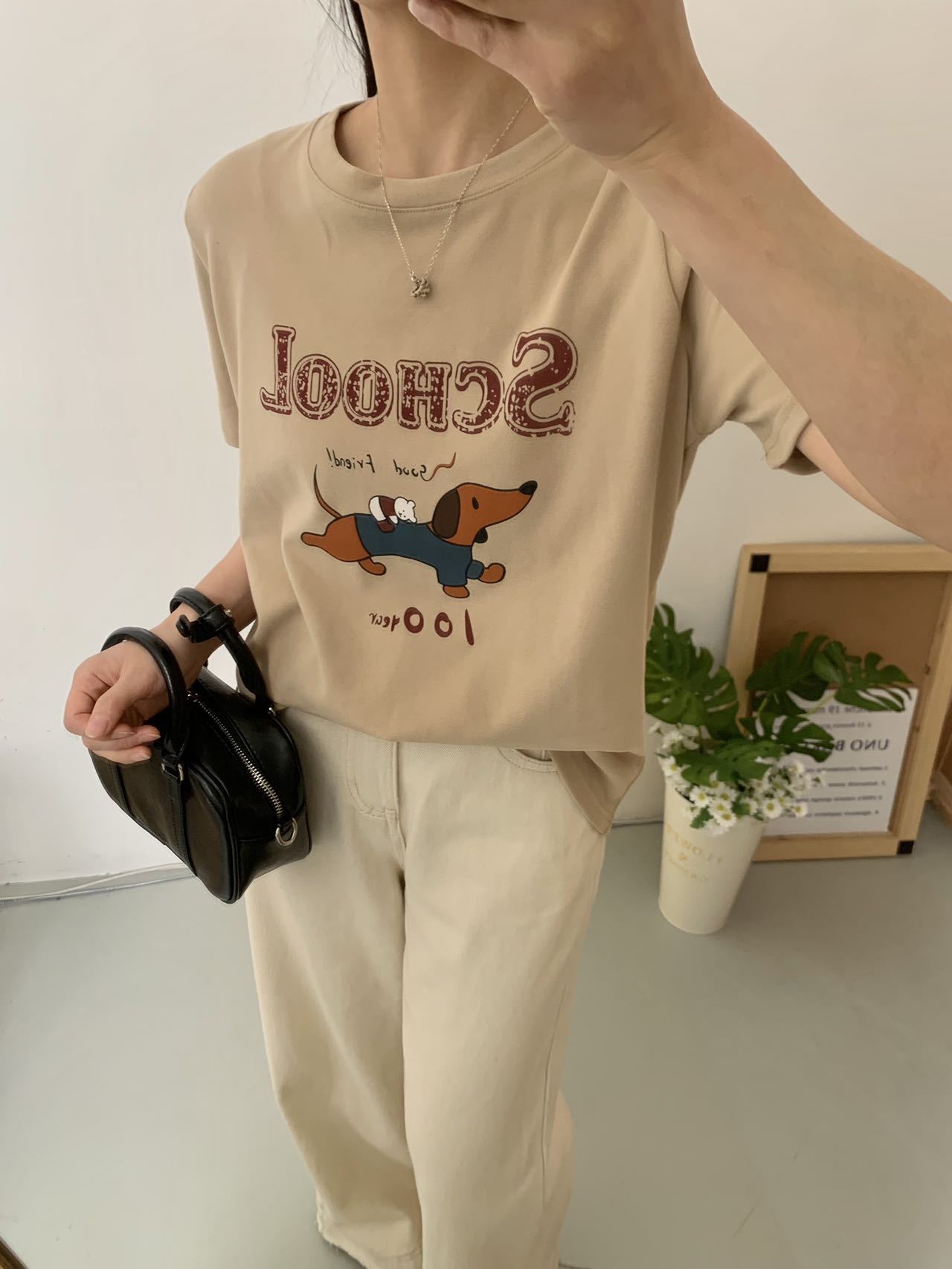 봄이 늦지 않은 흰색 만화 편지 인쇄 티셔츠 여성의 2025 년 초 봄 새로운 올 매치 라운드 넥 반팔 루즈 탑스토어 가기