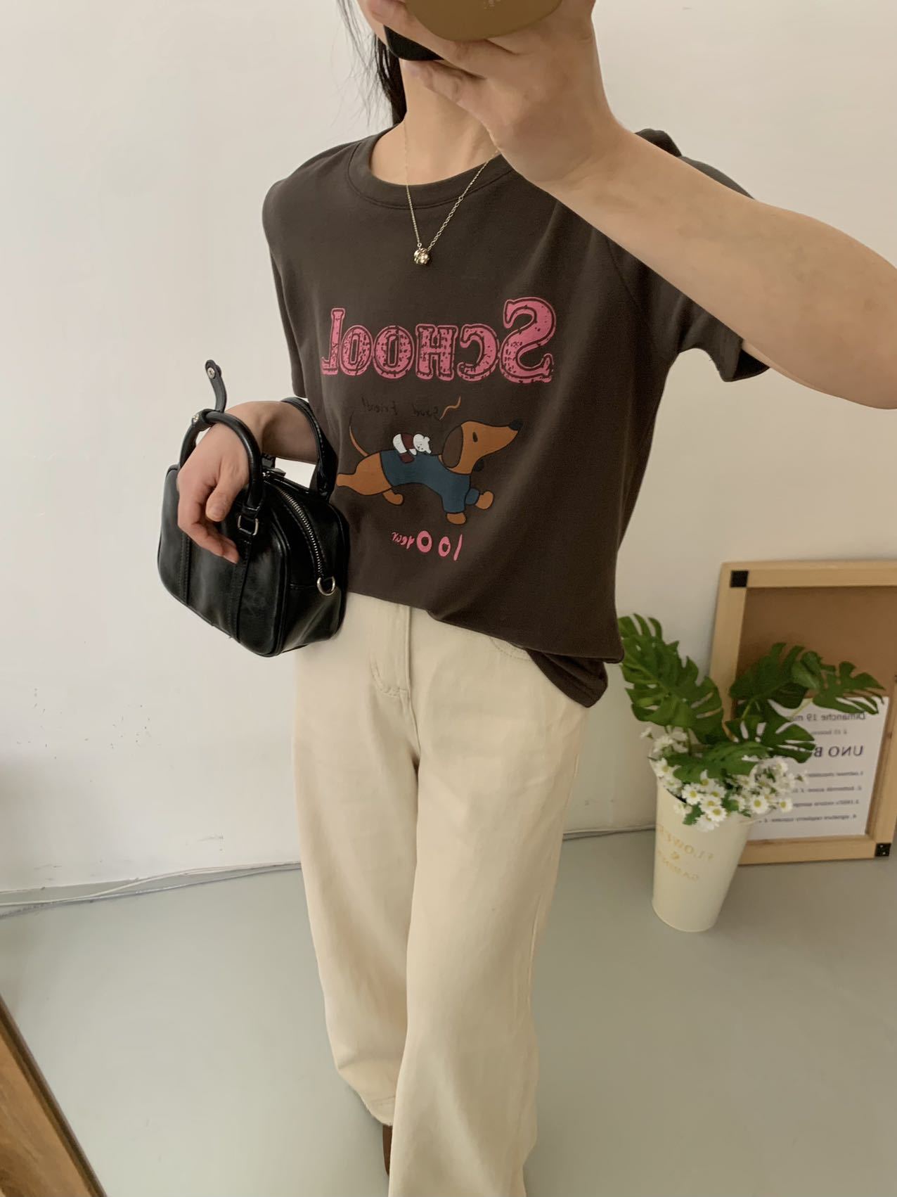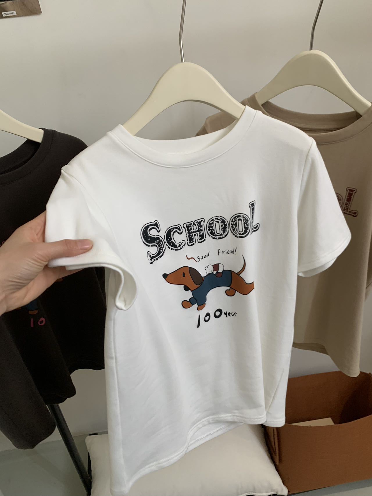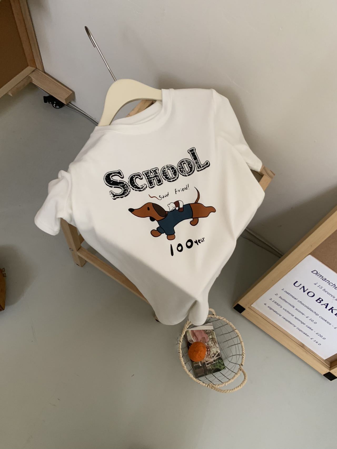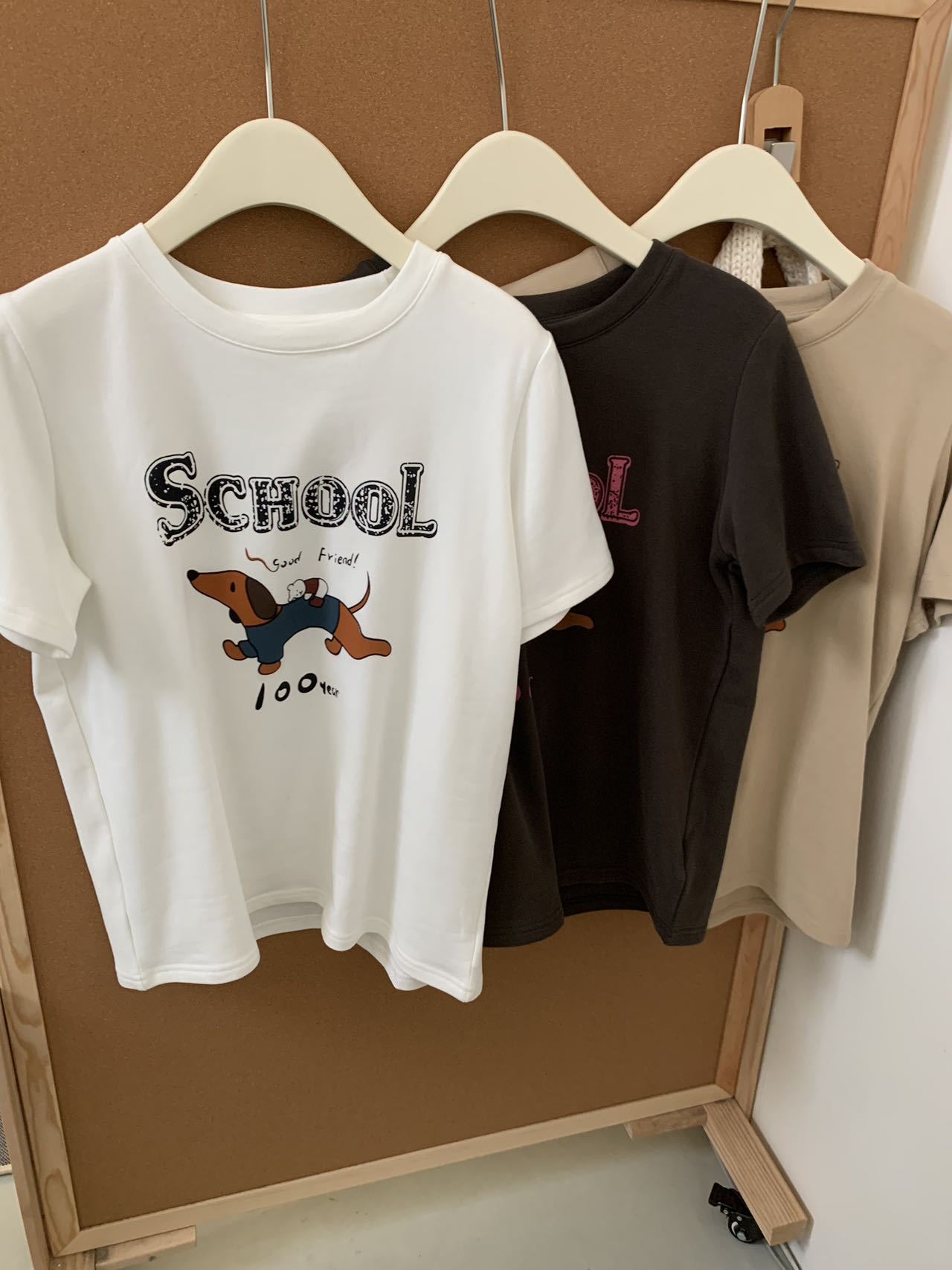 봄이 늦지 않은 흰색 만화 편지 인쇄 티셔츠 여성의 2025 년 초 봄 새로운 올 매치 라운드 넥 반팔 루즈 탑스토어 가기