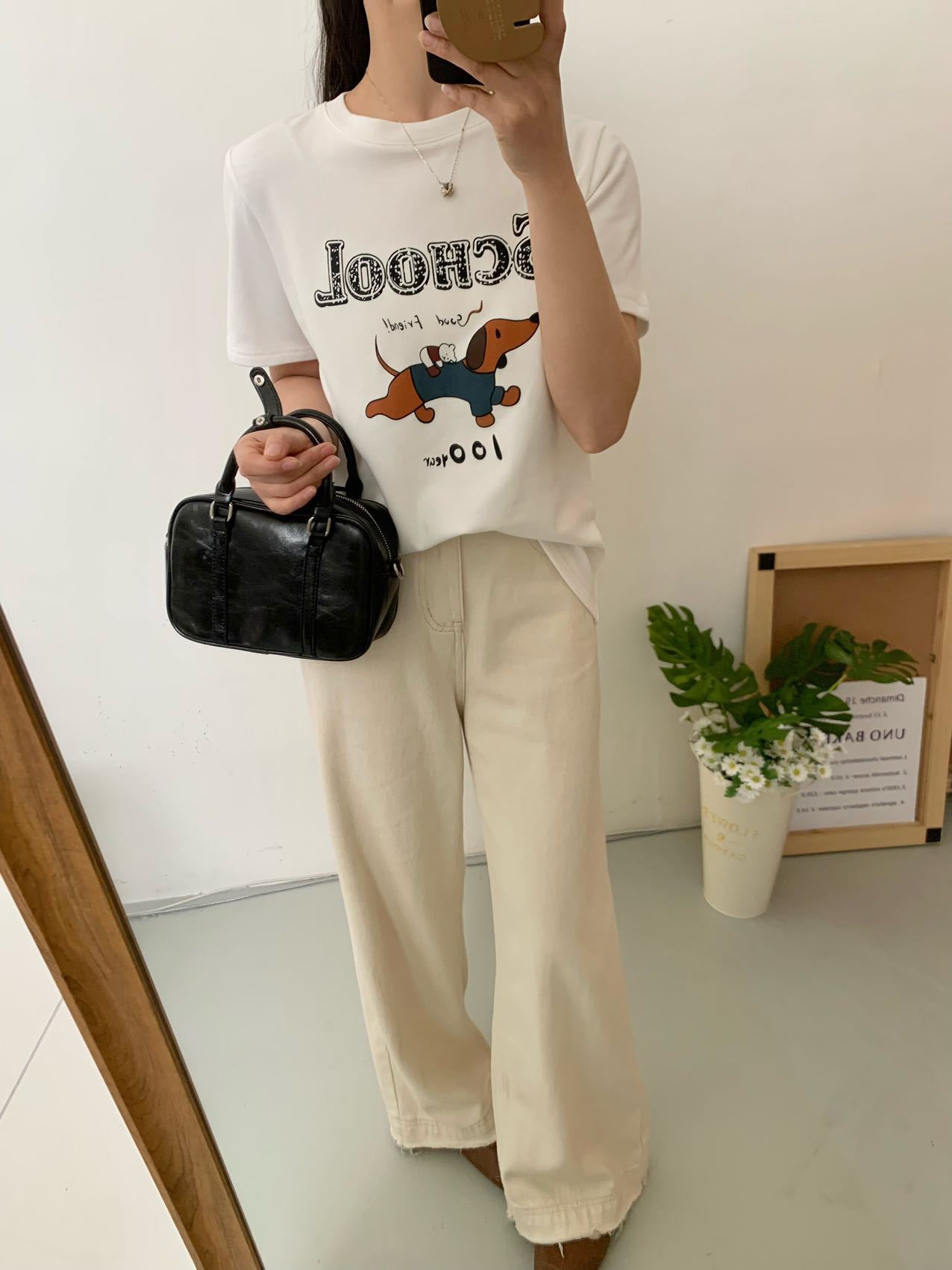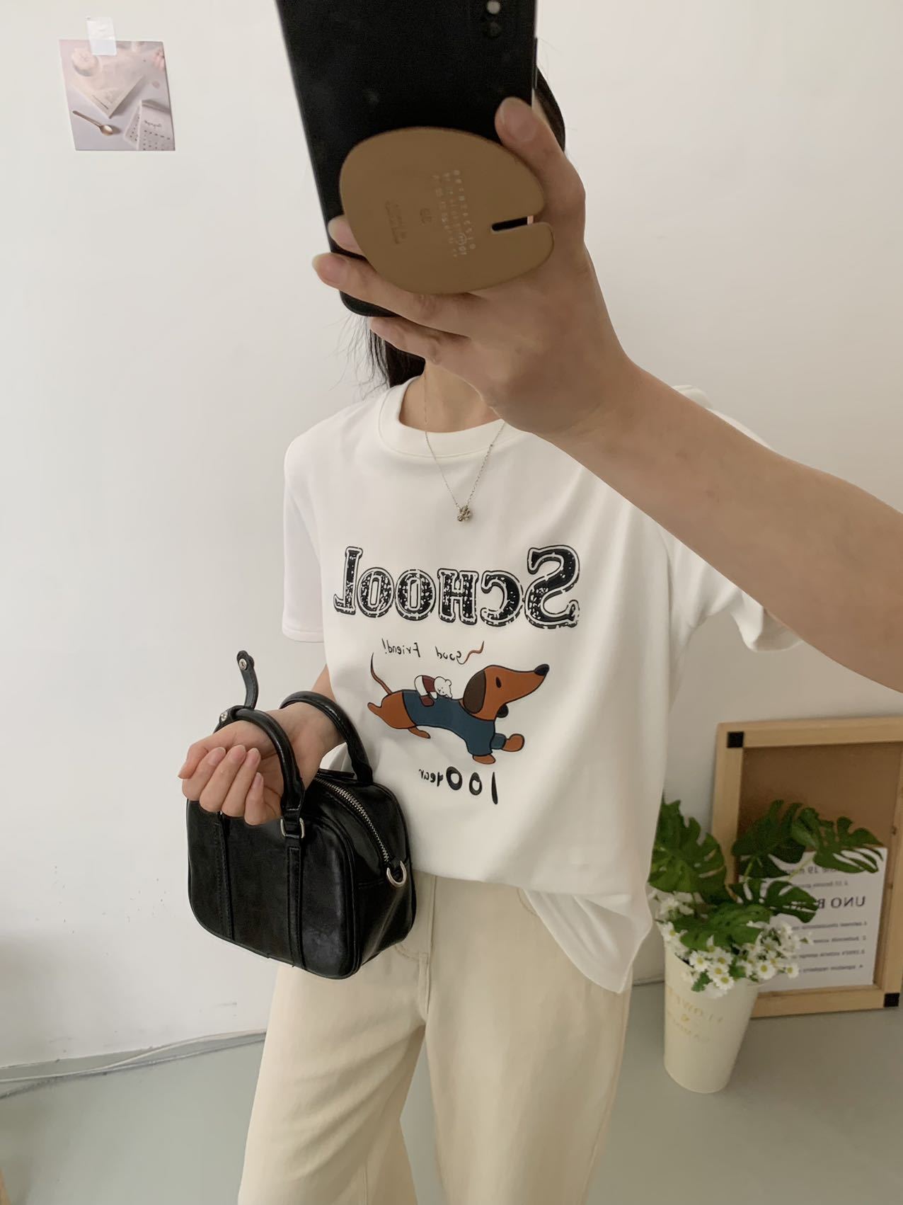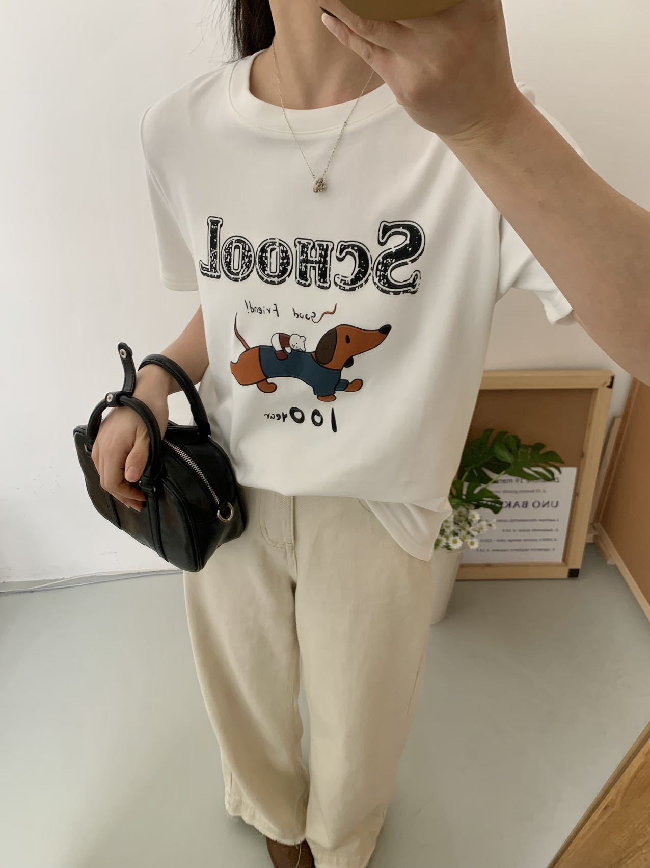 봄이 늦지 않은 흰색 만화 편지 인쇄 티셔츠 여성의 2025 년 초 봄 새로운 올 매치 라운드 넥 반팔 루즈 탑