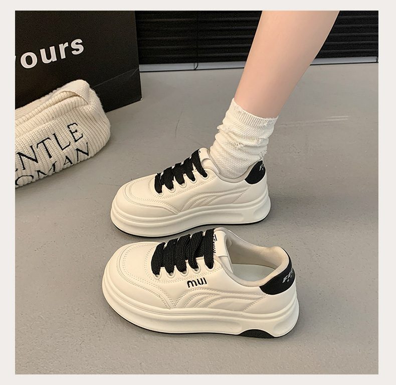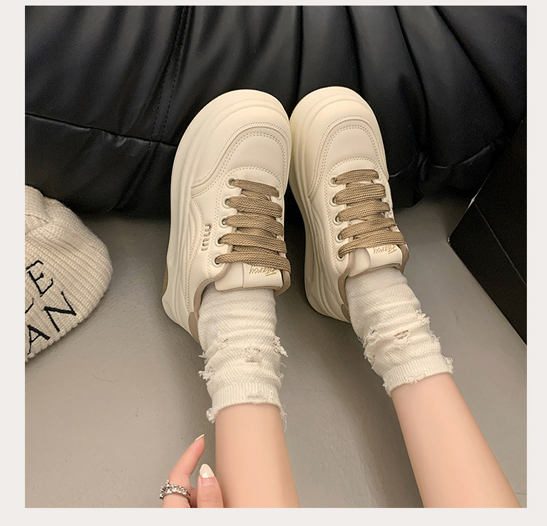 화이트 슈즈 여성 2025 봄 새로운 두꺼운 단독 조커 슈퍼 파이어 브레드 슈즈 강화 폭발 캐주얼 스포츠 스니커즈