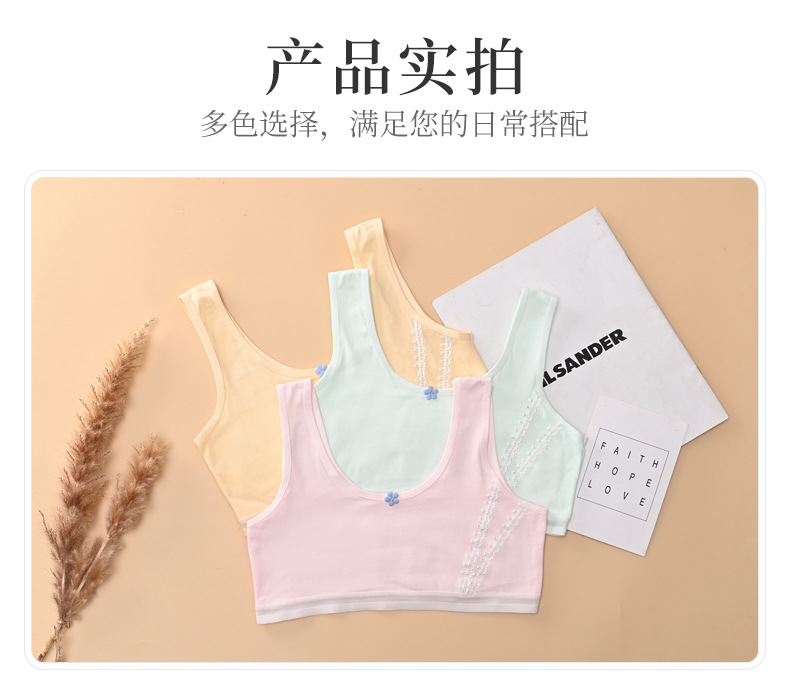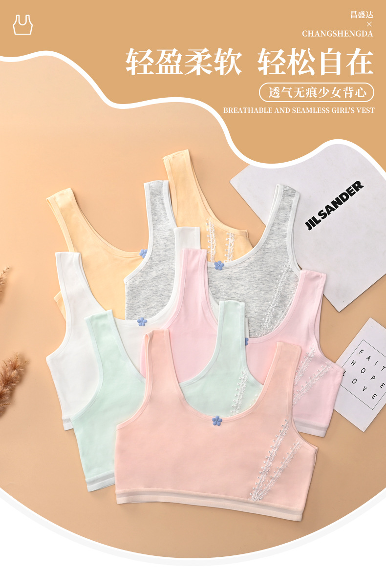 여아 속옷 조끼, 학생용 얇은 면 프린트 여아 스포츠 순면 가슴 감싸는 고정컵, 통기성, 편안함스토어 가기