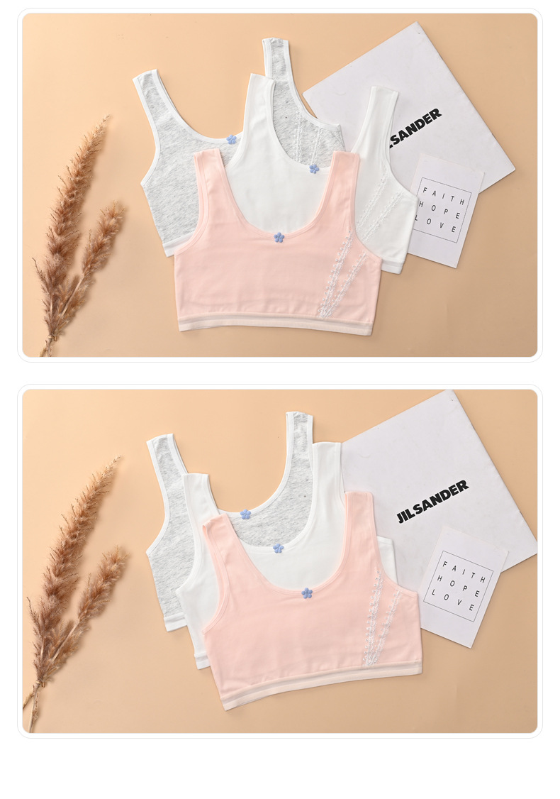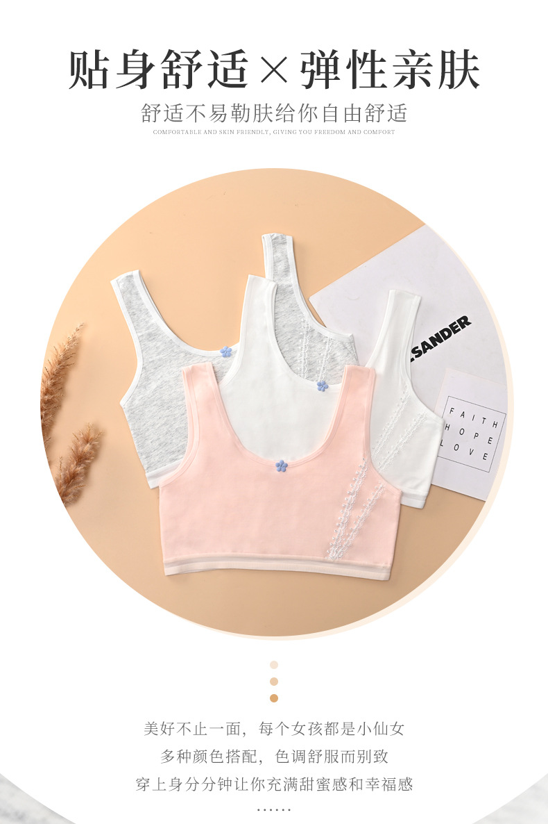 여아 속옷 조끼, 학생용 얇은 면 프린트 여아 스포츠 순면 가슴 감싸는 고정컵, 통기성, 편안함
