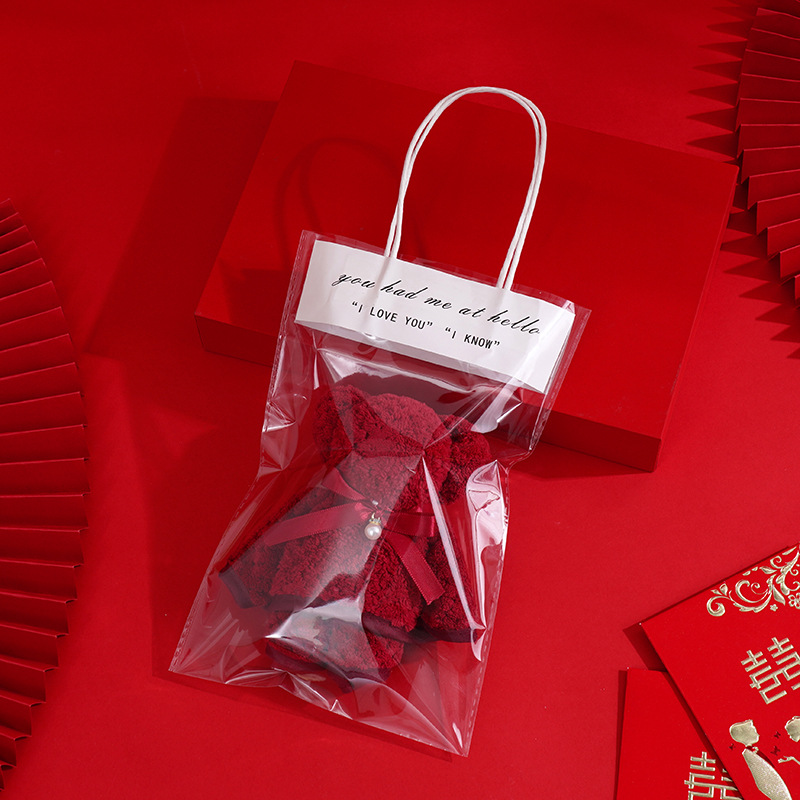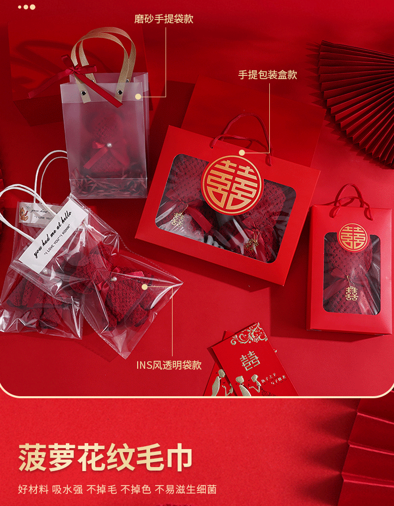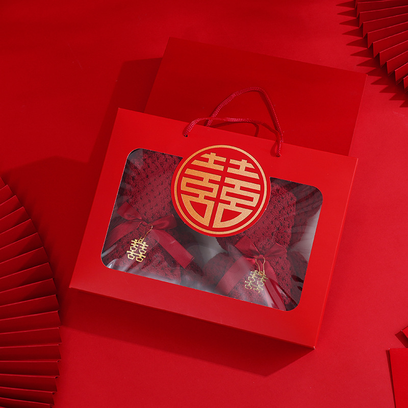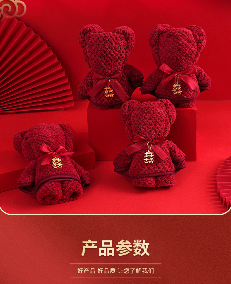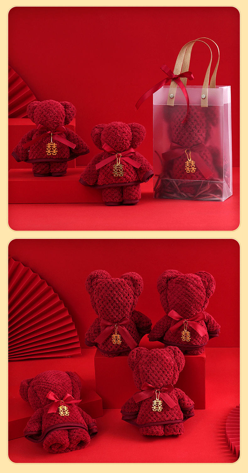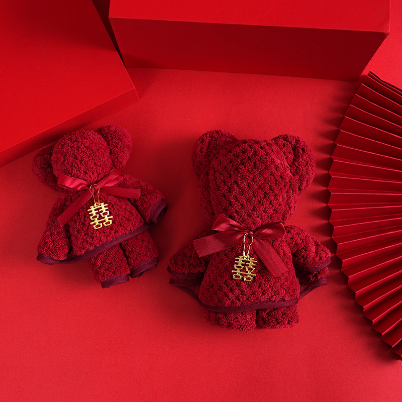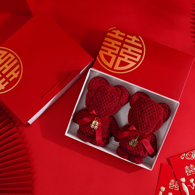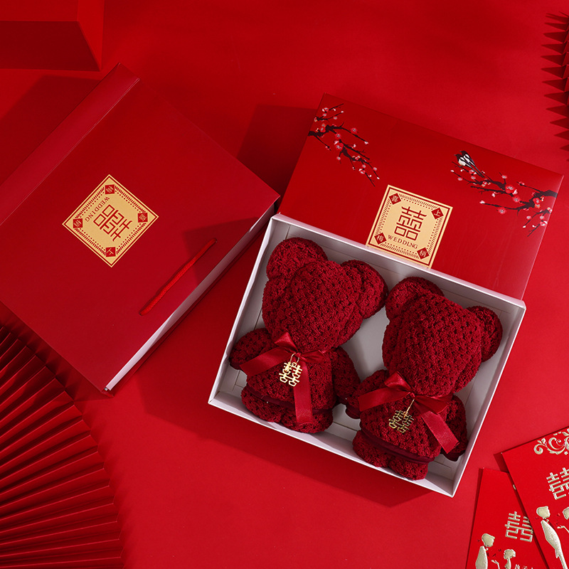 웨딩 타월 동반 선물 버건디 곰 웨딩 선물 상자 Xi Pa의 생일 선물 선물 선물