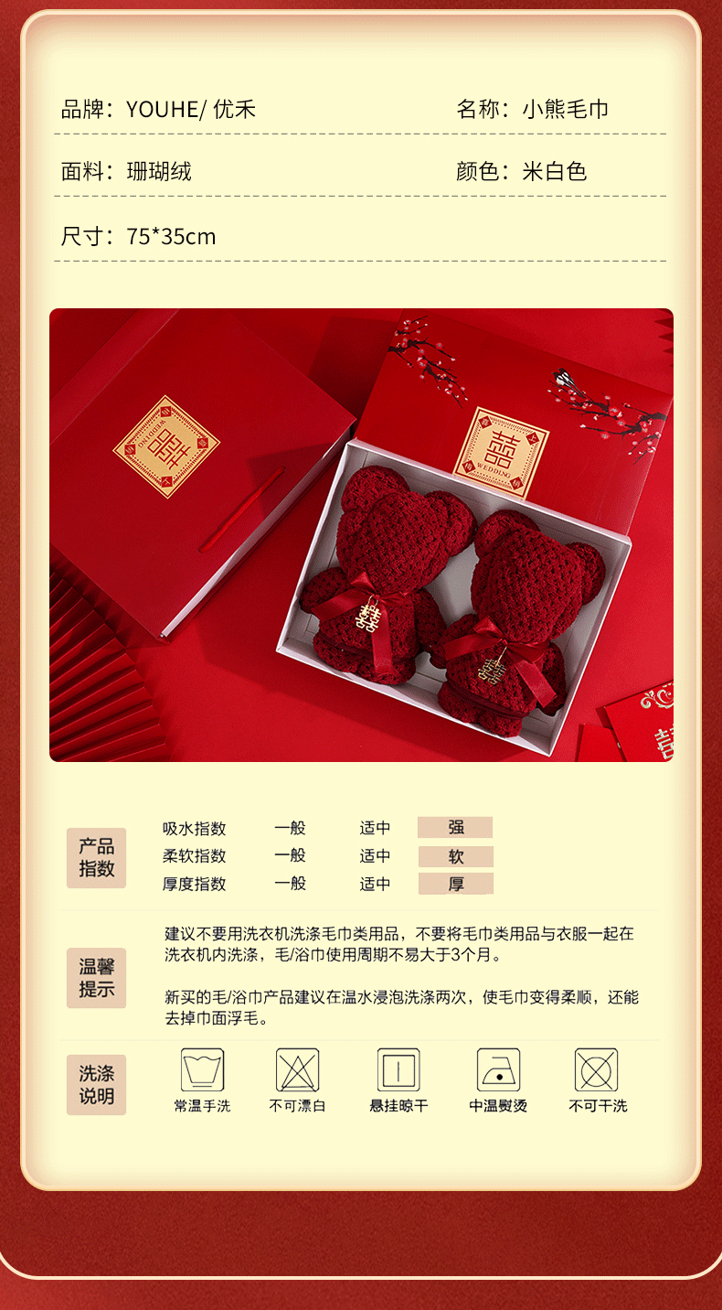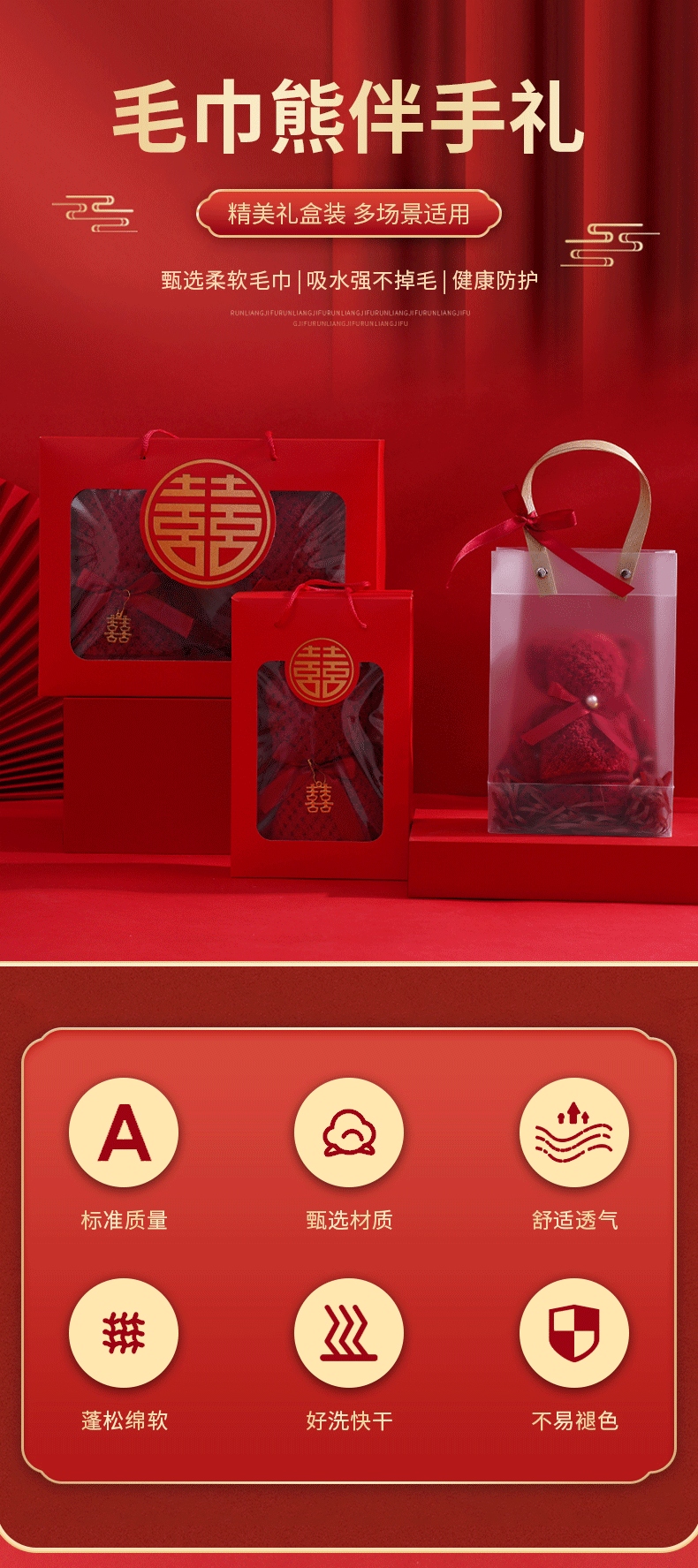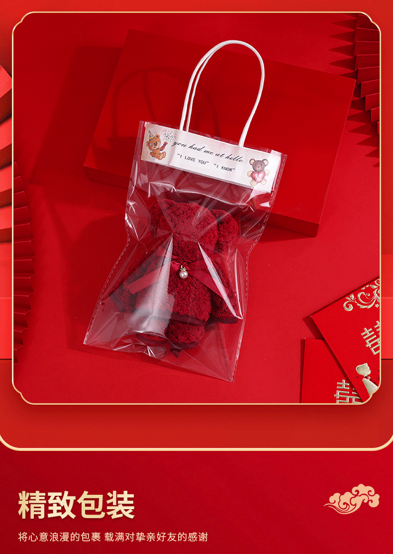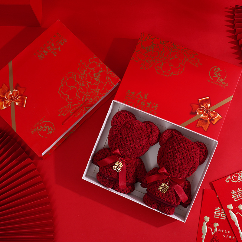 웨딩 타월 동반 선물 버건디 곰 웨딩 선물 상자 Xi Pa의 생일 선물 선물 선물스토어 가기
