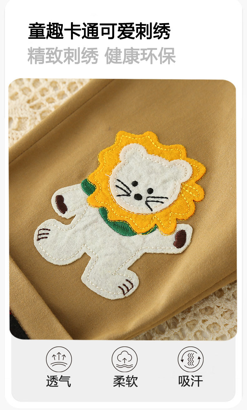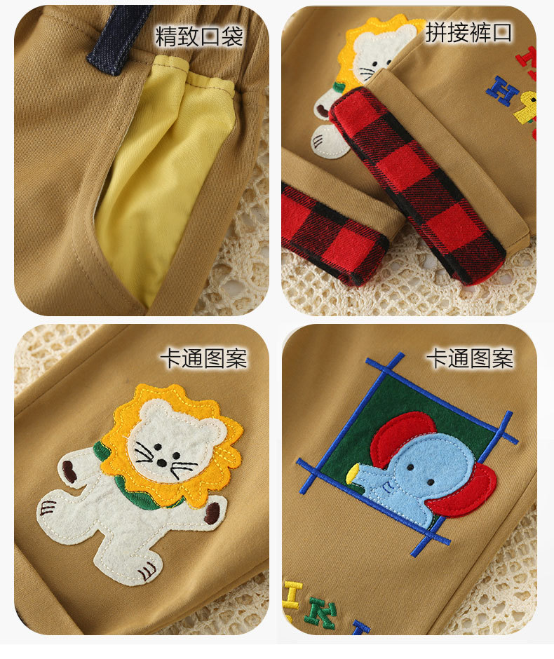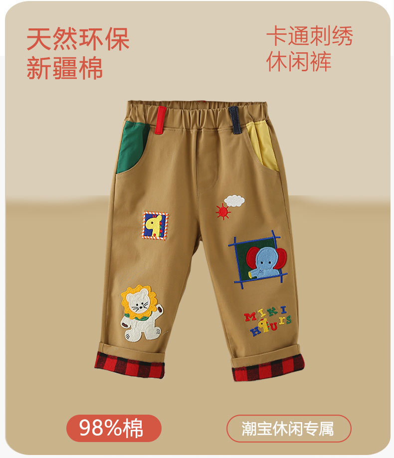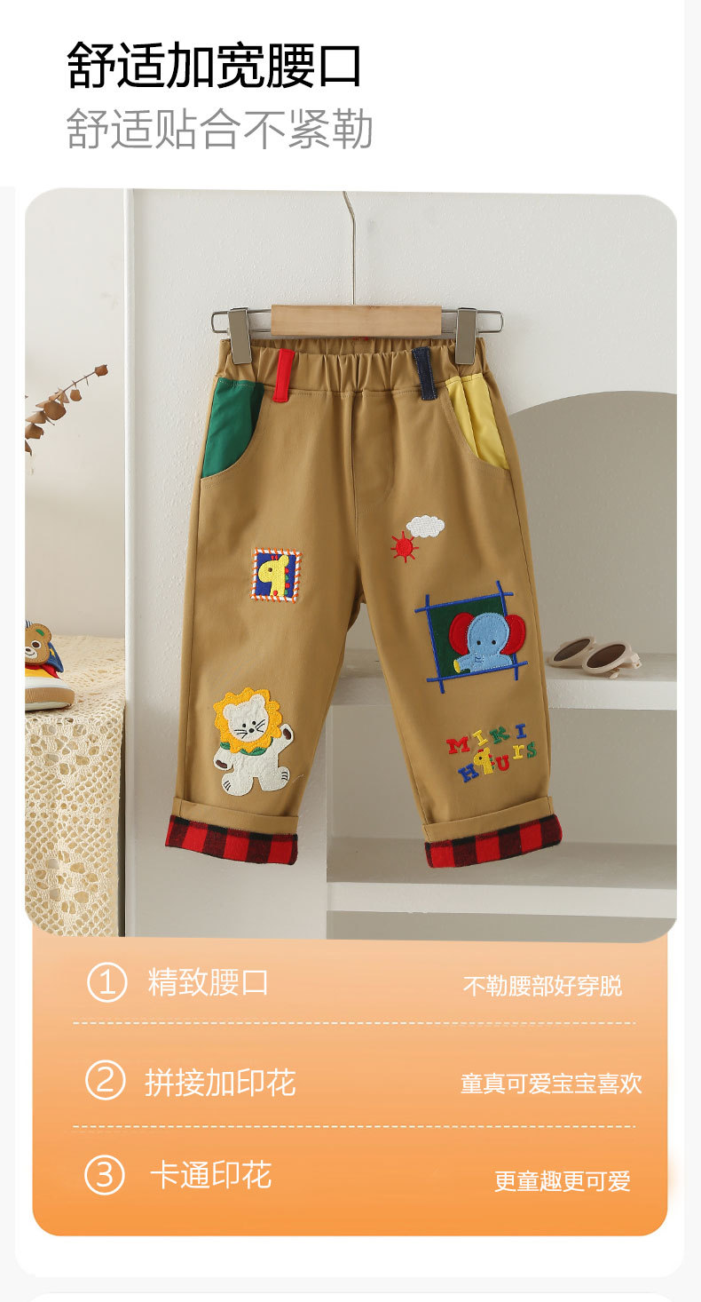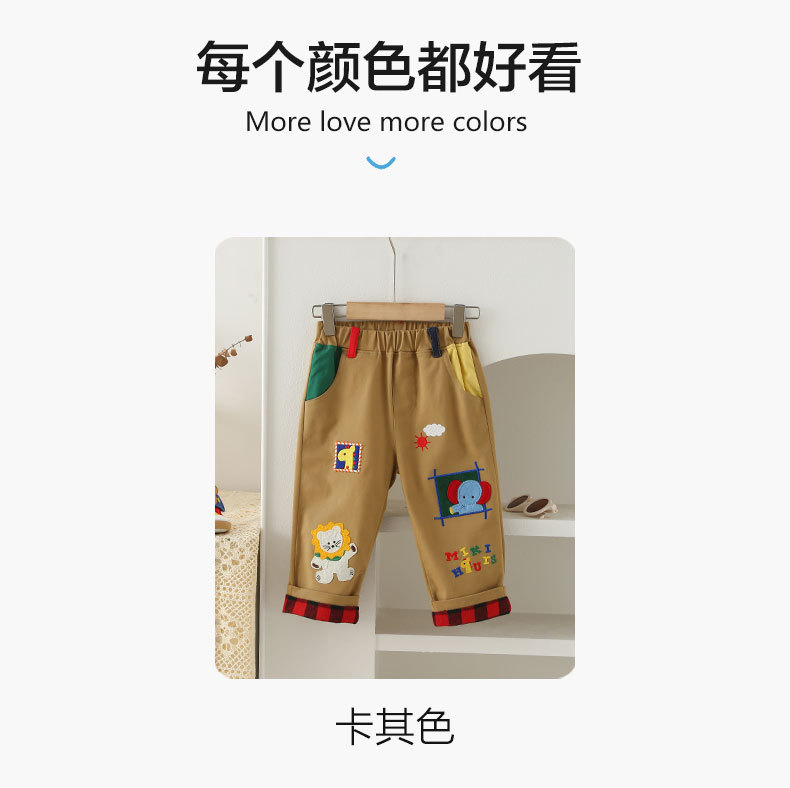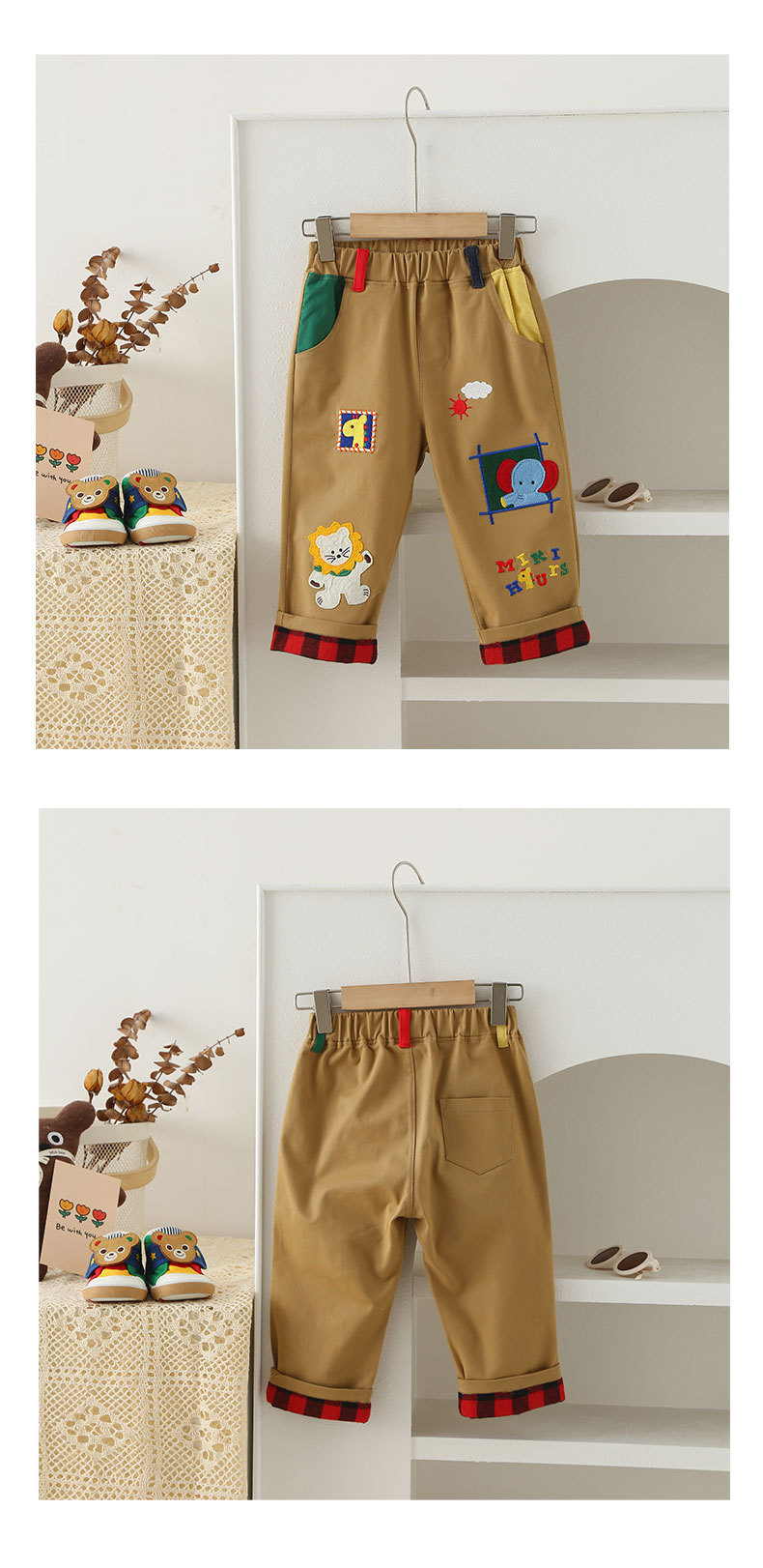 Miki hours25 어린이 봄과 가을 자수 캐주얼 바지 일본 스타일 만화 외부 소년 면 바지 유행 아기 바지