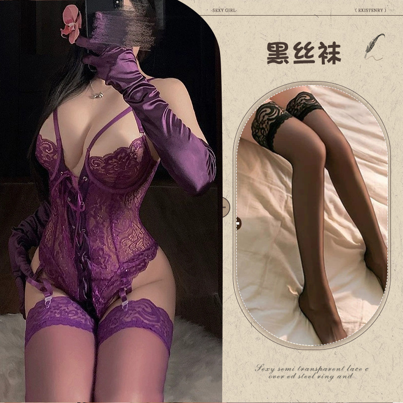 Yemei Twilight Sexy Lace Perspective Sling 유럽과 미국의 섹시한 슬리밍 매력 보라색 유니폼 유혹 점프 수트스토어 가기