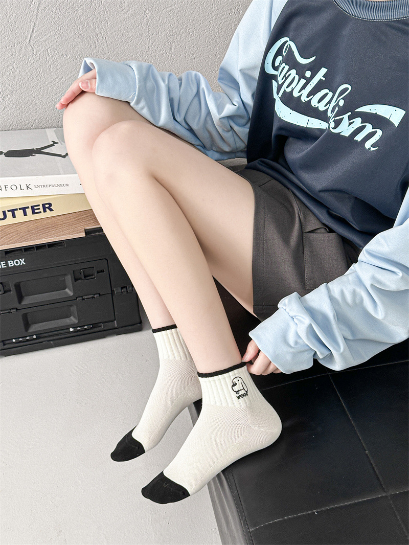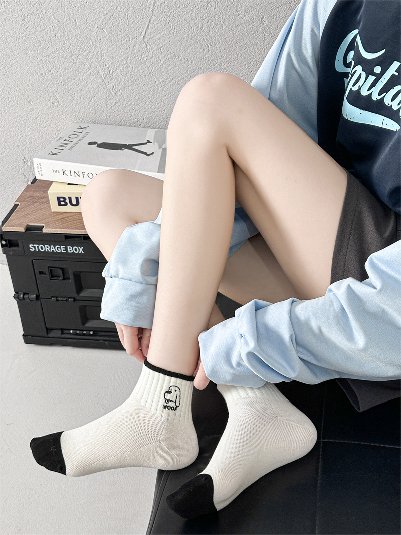 자수 강아지 양말 여성 한국 스타일 면 양말 봄과 여름 만화 귀여운 흑백 여성 양말 Ins 유행 짧은 양말스토어 가기