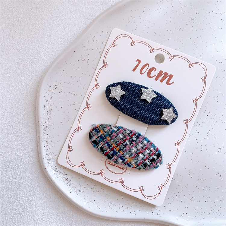 새로운 어린이 데님 블루 오각형 스타 헤어핀 달콤한 소녀의 사이드 브로큰 헤어 BB 클립 뱅이 헤어핀 헤드웨어