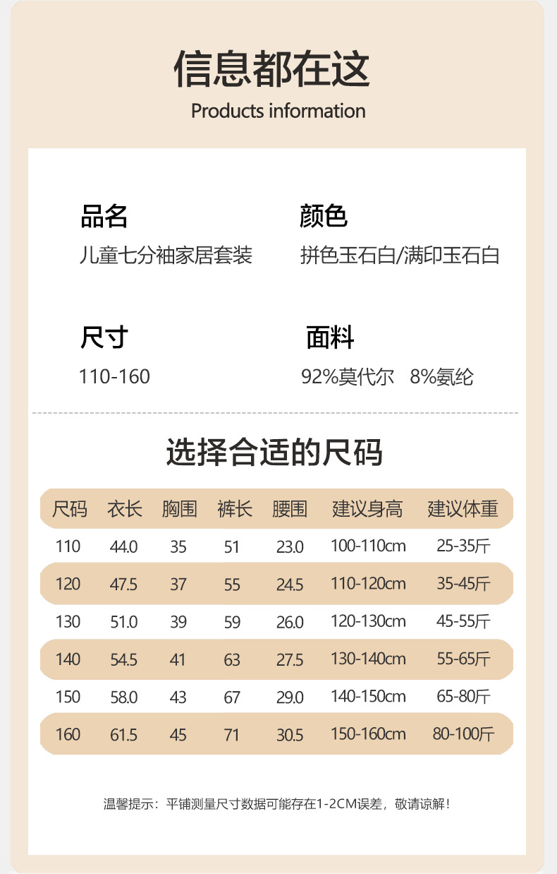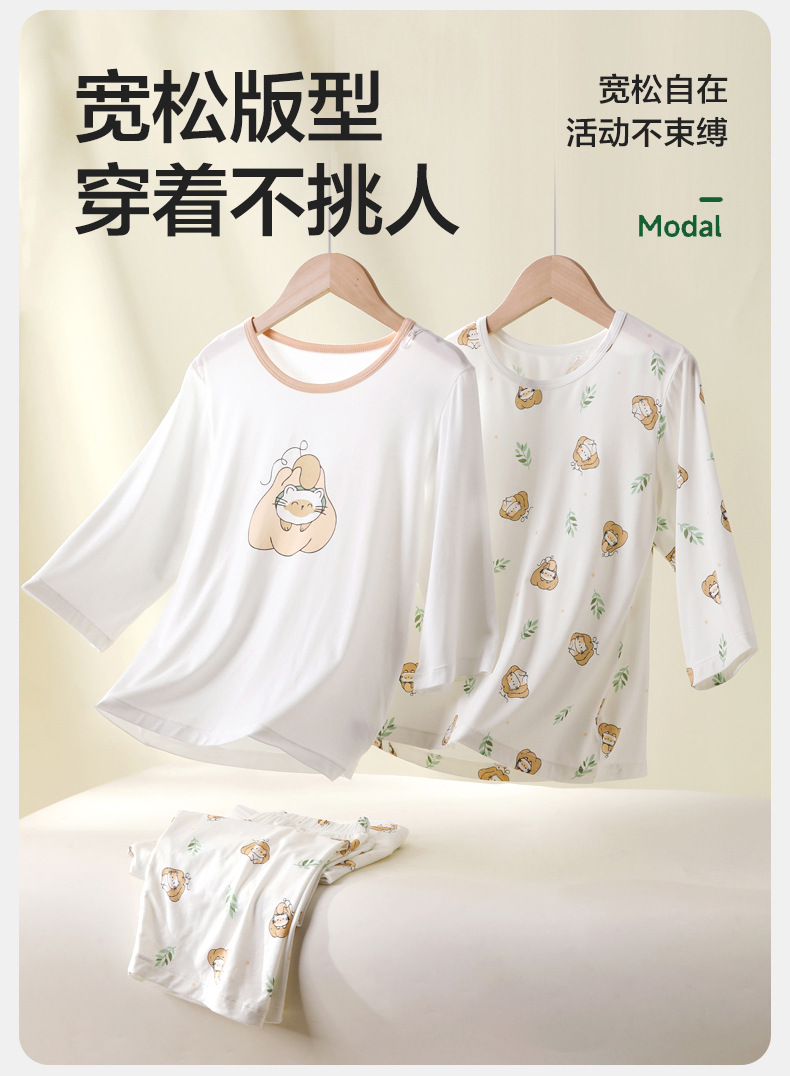 儿童睡衣a类夏季薄款莫代尔七分袖家居服a类休闲男女童空调服套装스토어 가기
