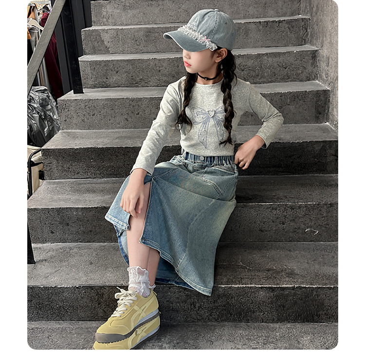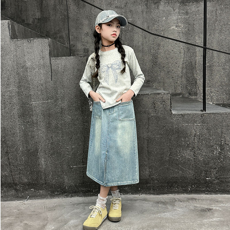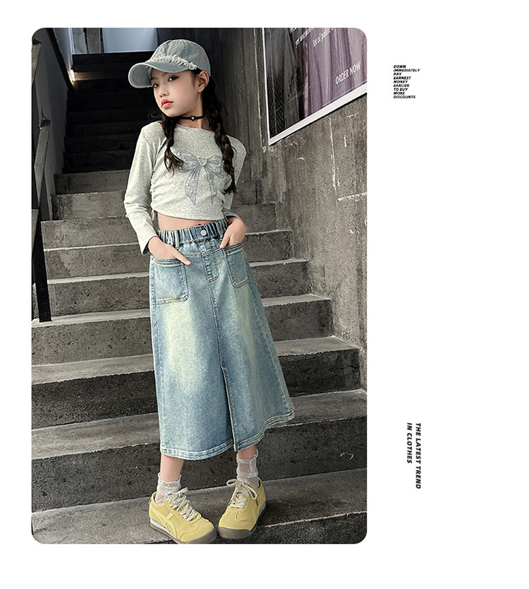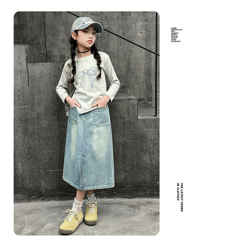 소녀 봄과 가을 세트 2025 새로운 어린이 유행 데님 스커트 대형 어린이 캐주얼 데님 스커트 투피스 세트