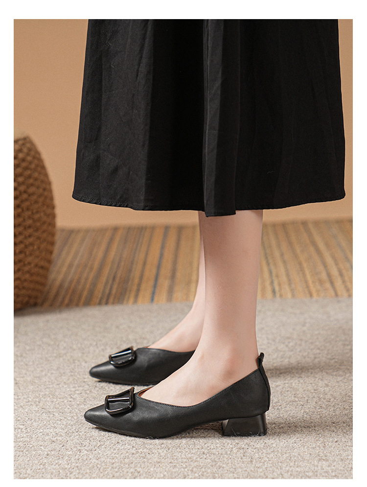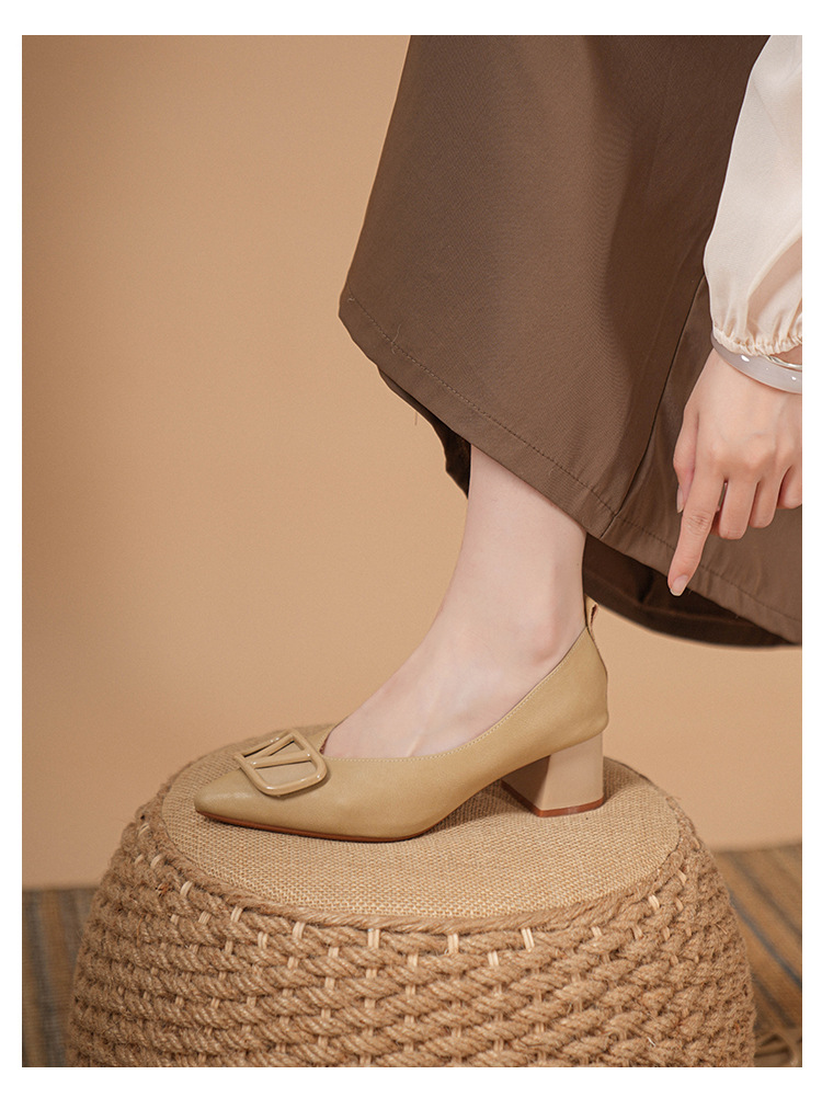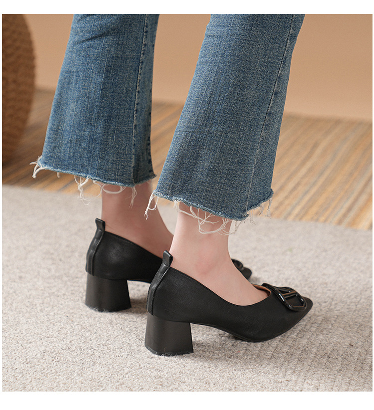 새로운 스타일의 거대한 부드러운 Cowhide 신발 여성 캐주얼 스퀘어-발가락 얕은 부드러운 가죽 밀크 신발 저발 매일 통근 작업 신발스토어 가기