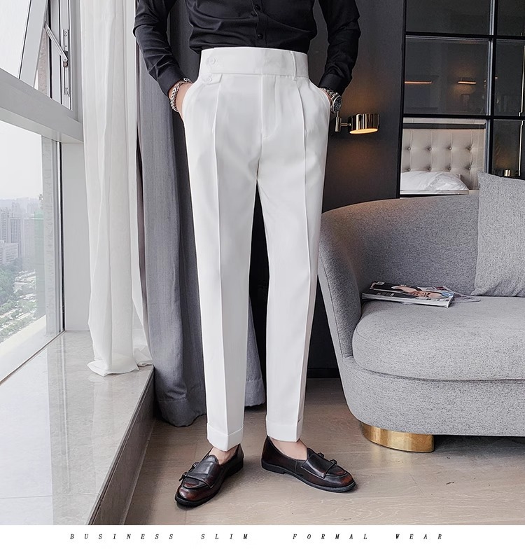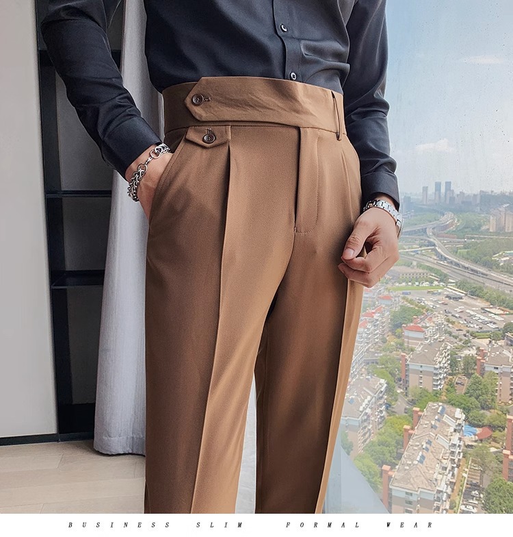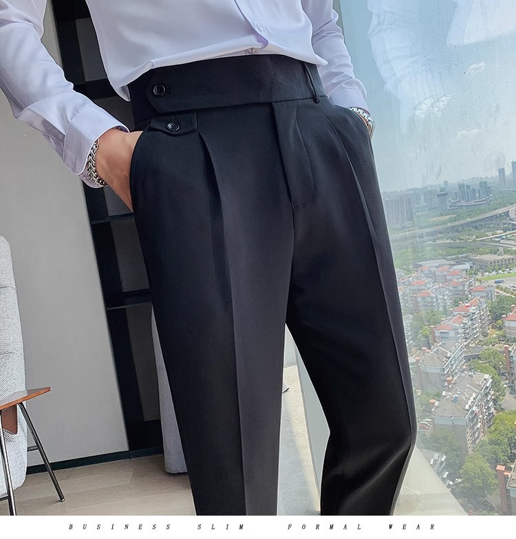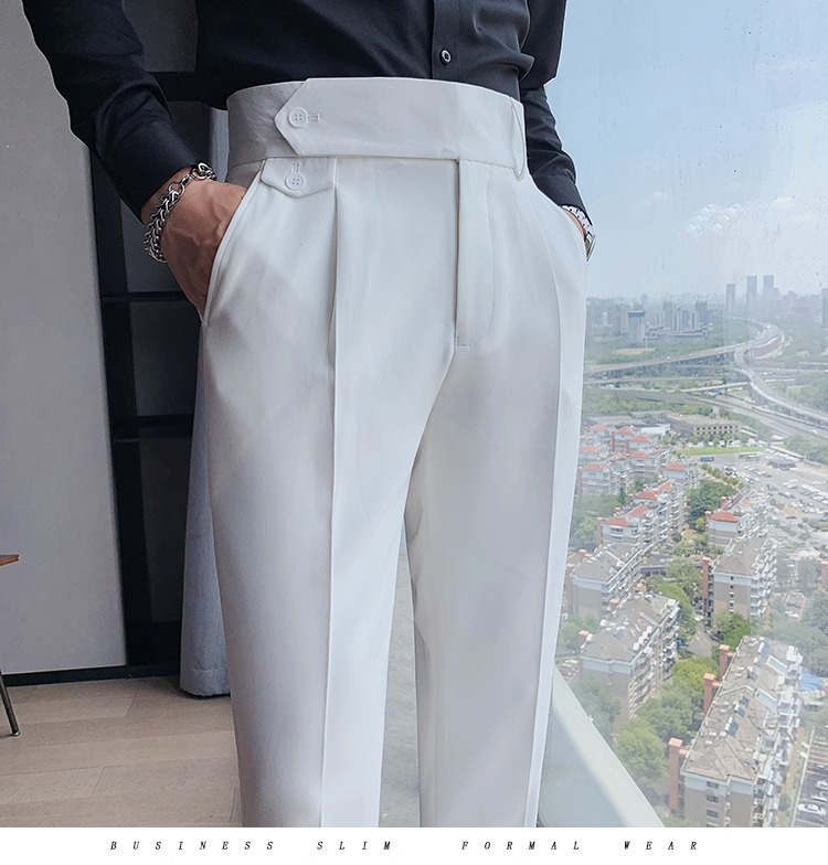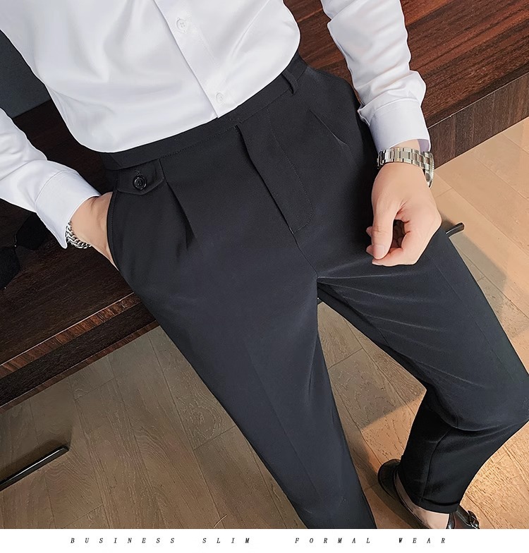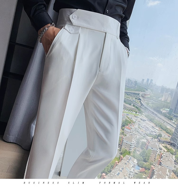 [쇼핑] TH 국경 남성 슬림 작은 발 높은 허리 비즈니스 단색 캐주얼 나폴리 바지스토어 가기