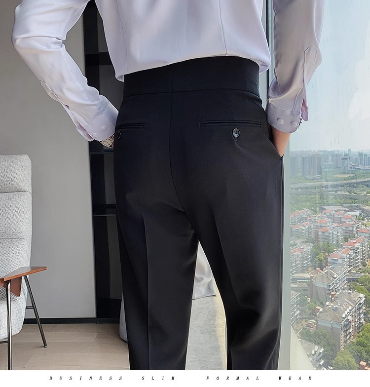 [쇼핑] TH 국경 남성 슬림 작은 발 높은 허리 비즈니스 단색 캐주얼 나폴리 바지