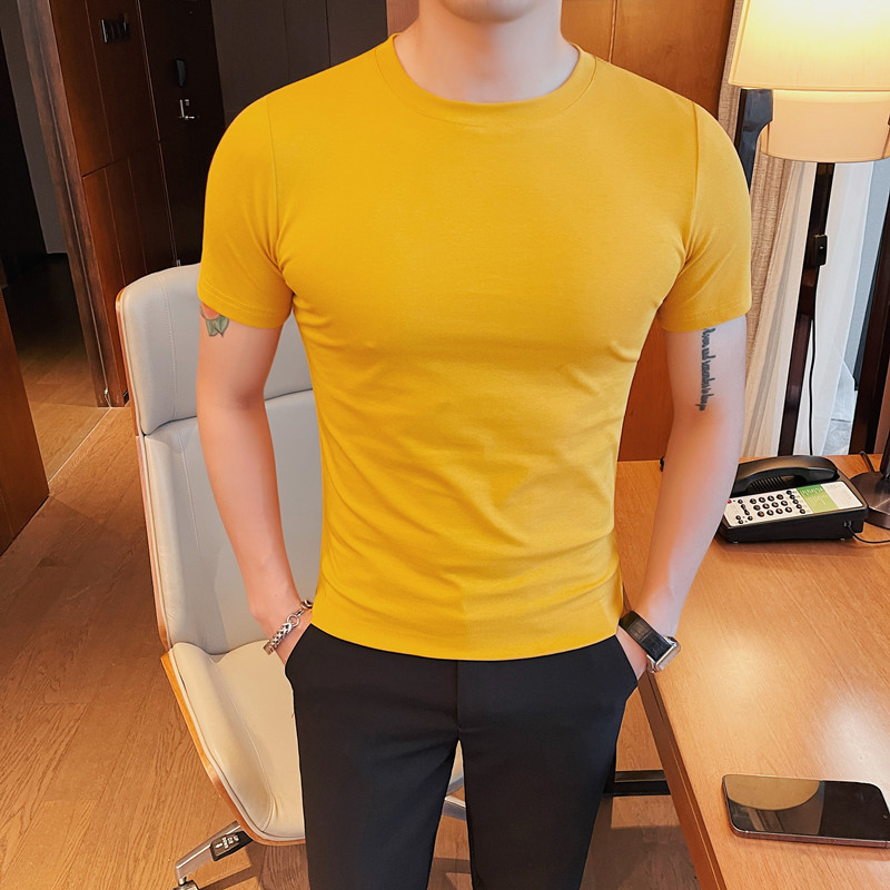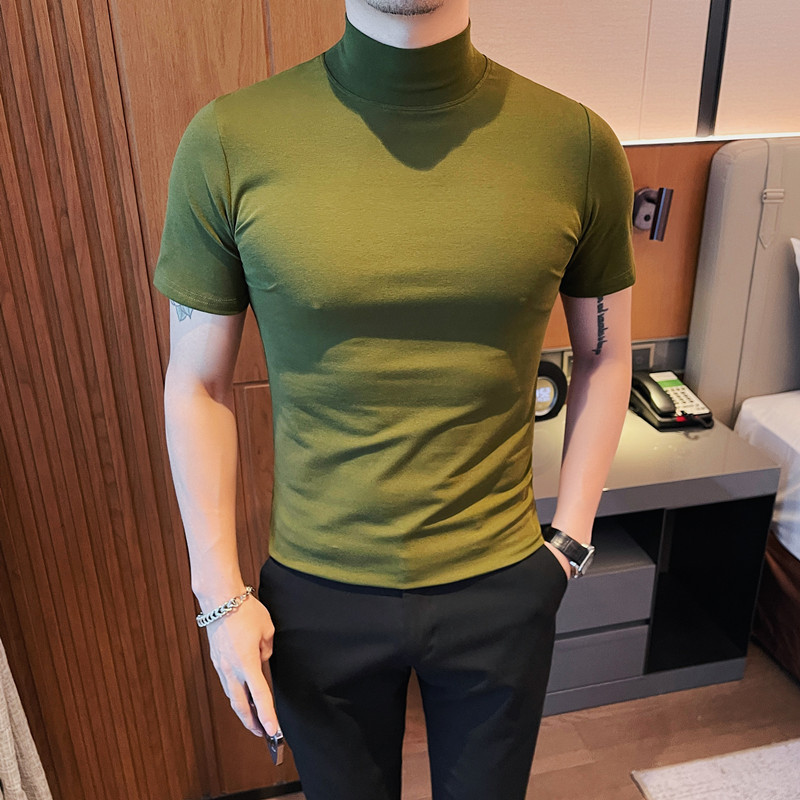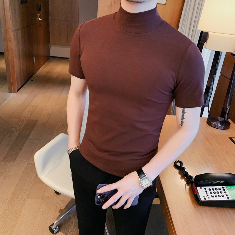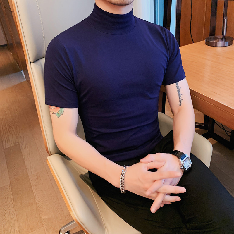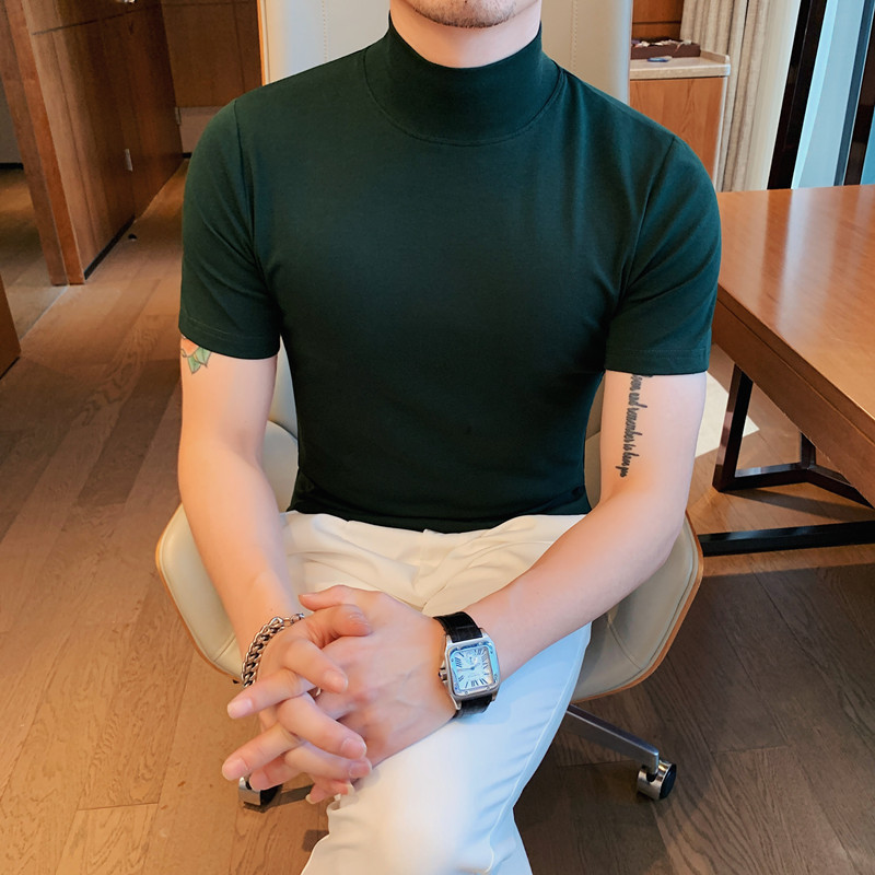 남성용 초가을 반고칼라 반소매 티셔츠 슬림면 스트레치베이스 셔츠 중간 칼라 우아한 가을 옷스토어 가기