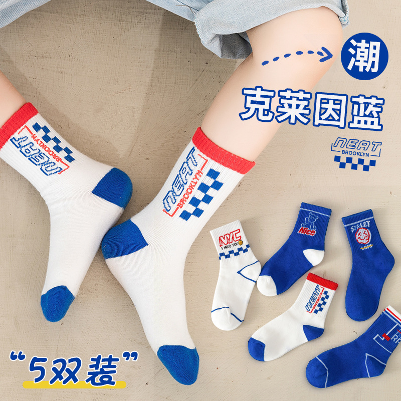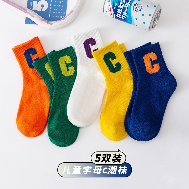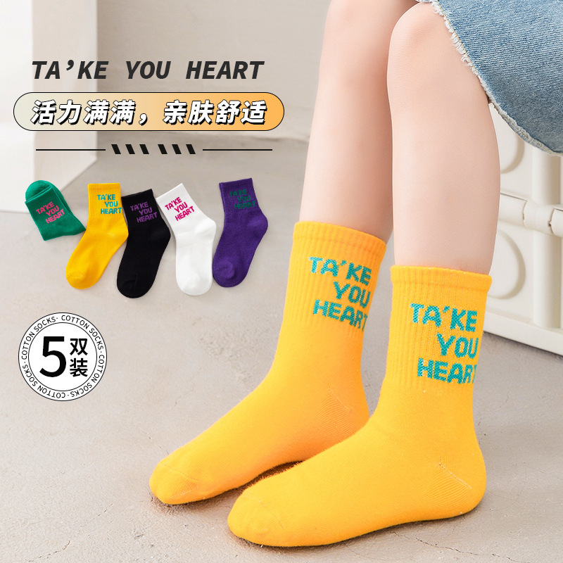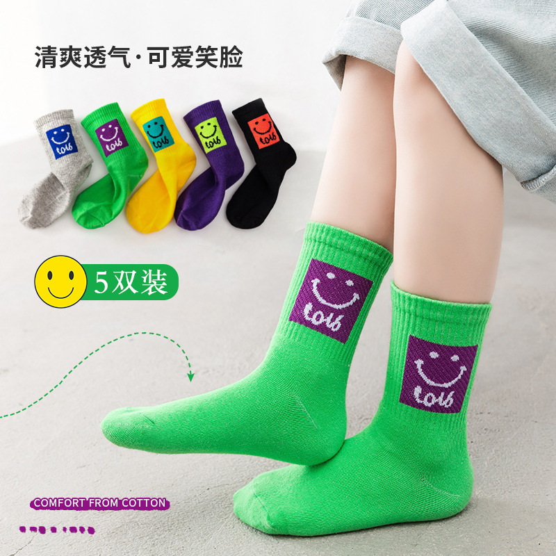 2025 봄과 가을 어린이 양말 소년 및 소녀 패션 편지 중간 배럴 유행 양말 한국식 스마일리 맞춤형 면화 양말스토어 가기