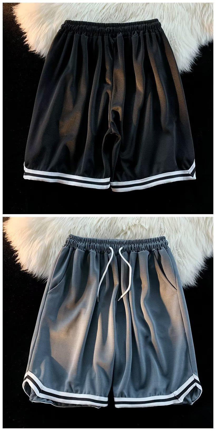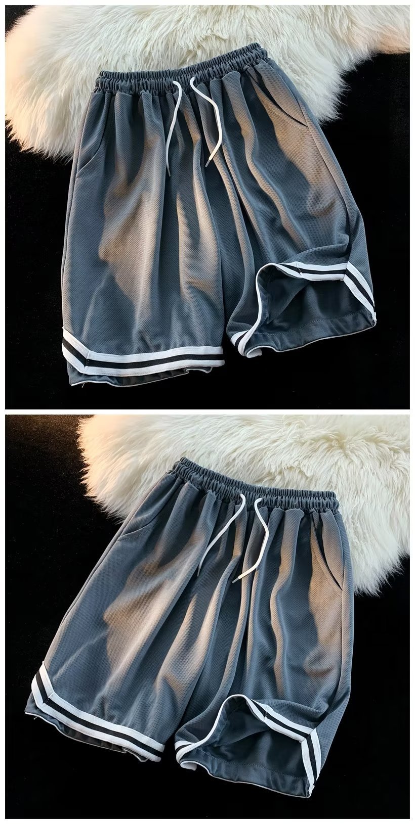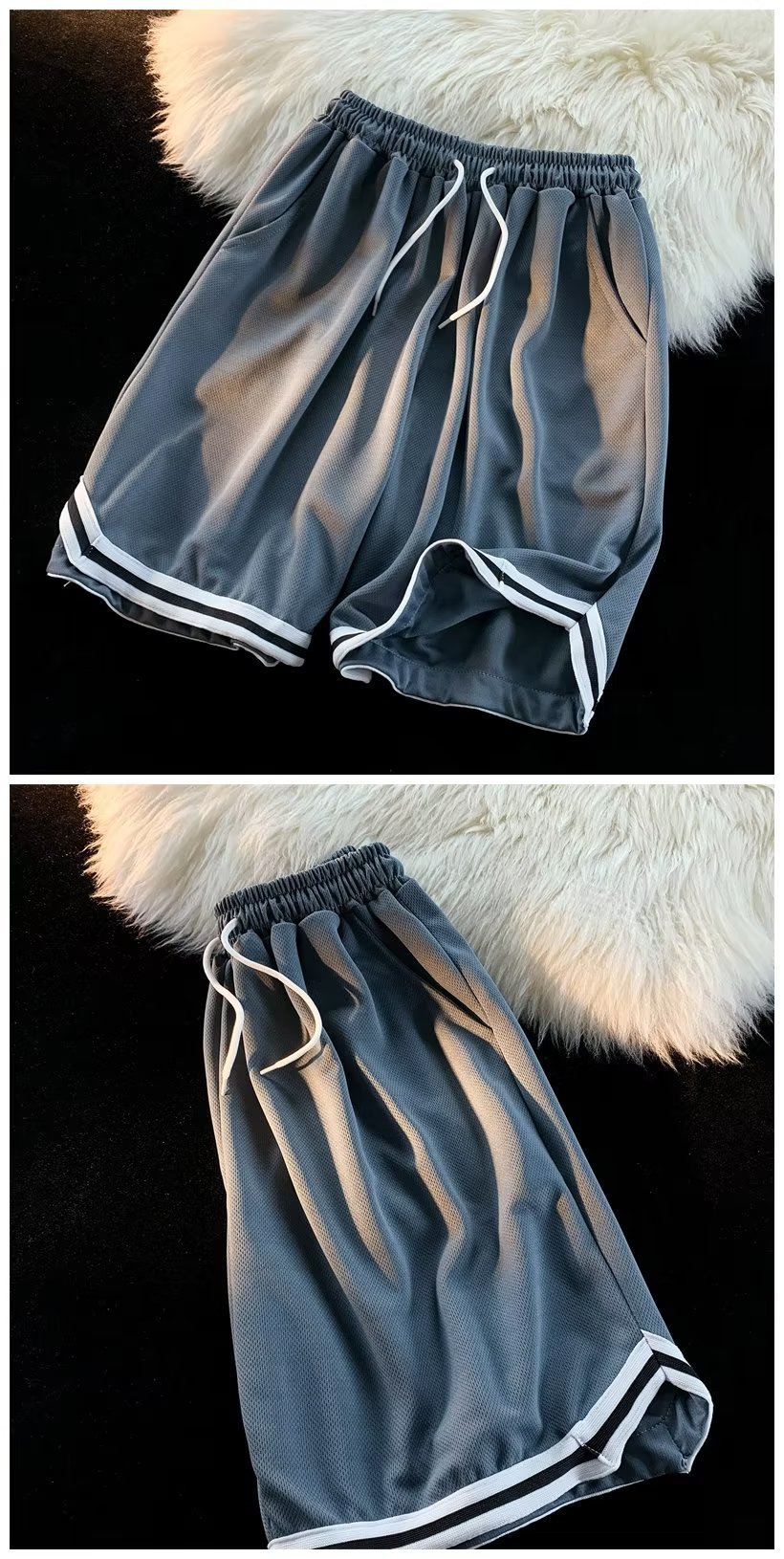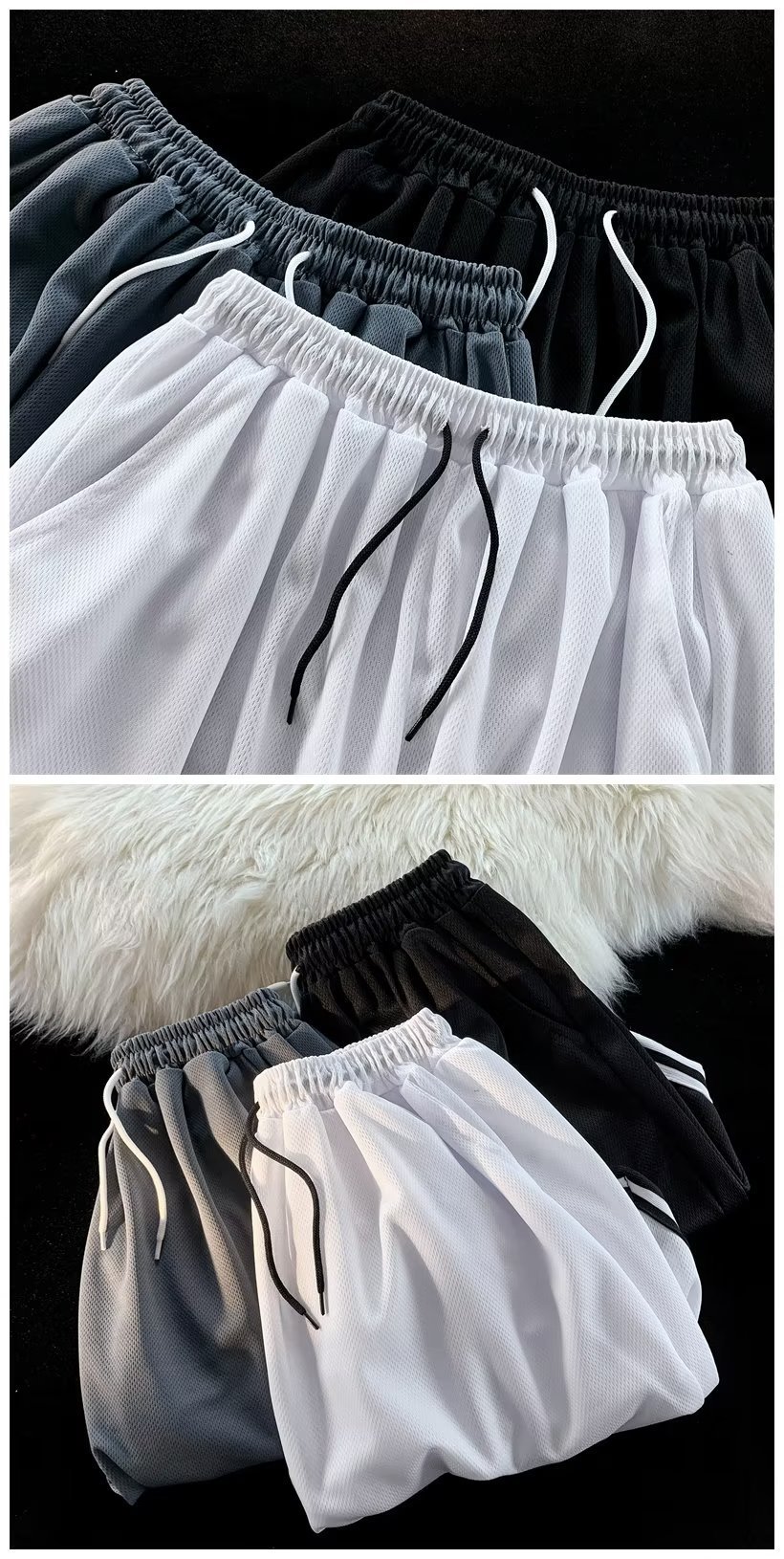 미국 스포츠 농구 바지 아이스 실크 빠른 건조 훈련 바지 유행 느슨한 남자 반바지 스포츠 달리기 피트니스스토어 가기