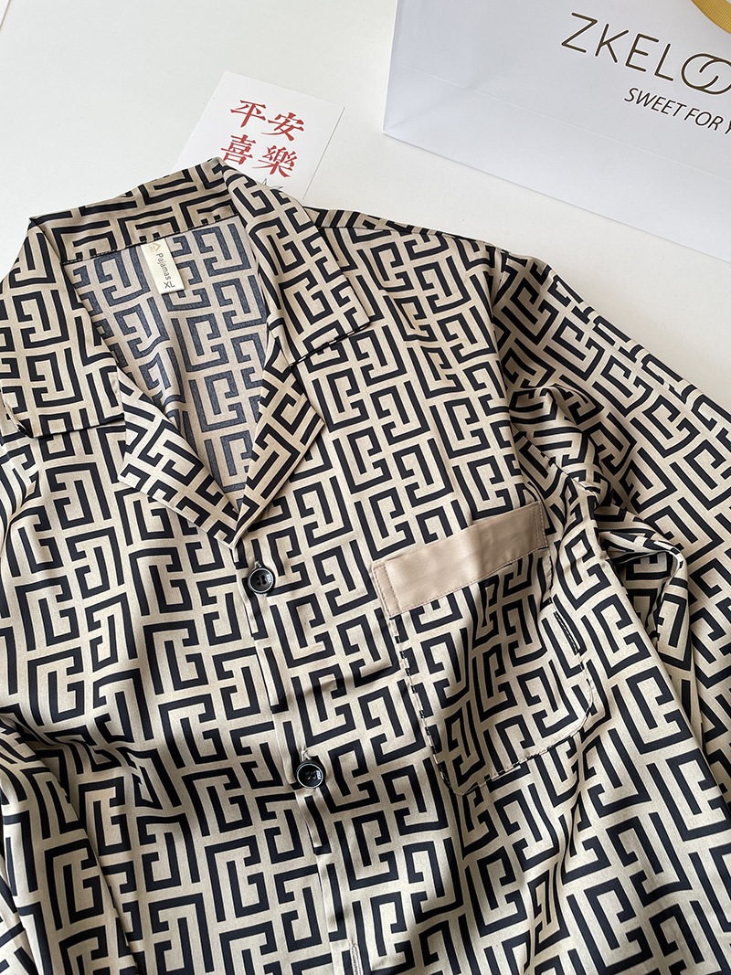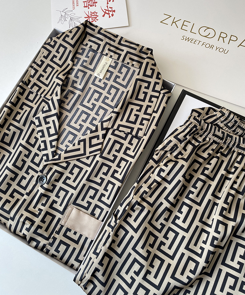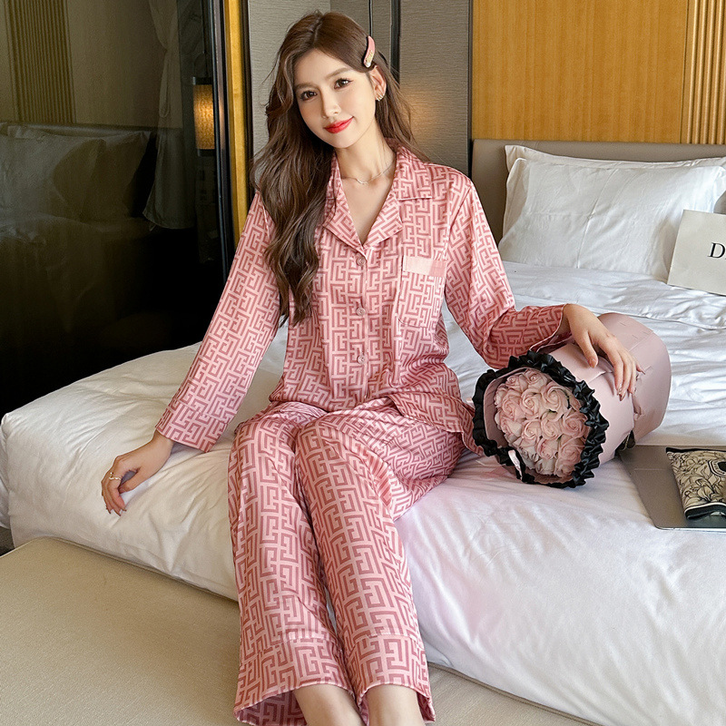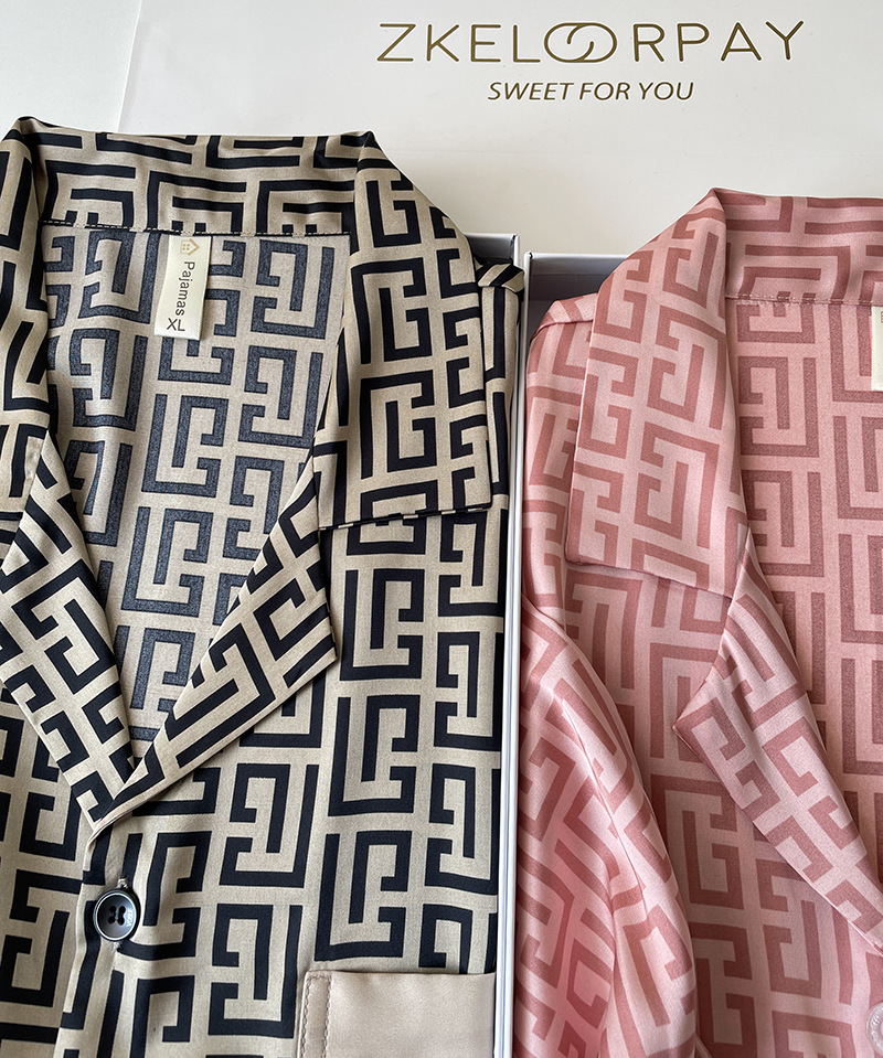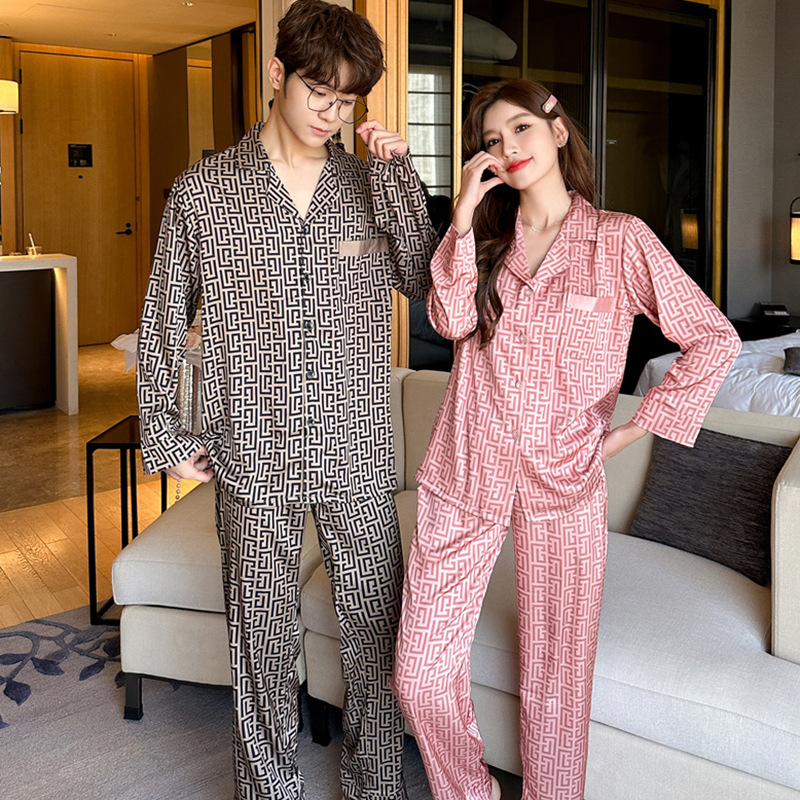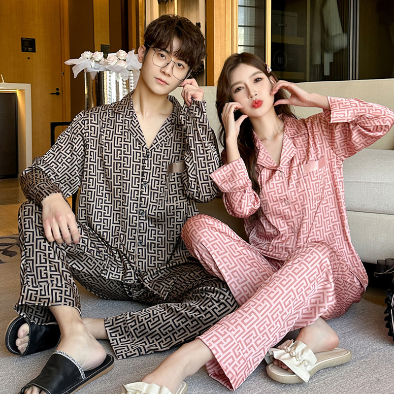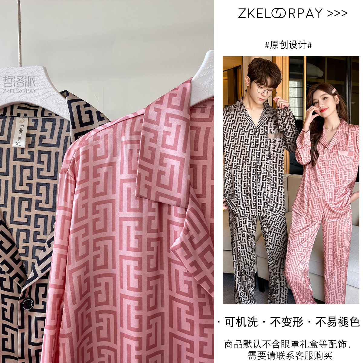 봄과 여름 새로운 아이스 실크 커플 잠옷 여성용 하이 엔드 라이트 럭셔리 외국식 얇은 실크 플러스 사이즈 홈 의류 남성용스토어 가기