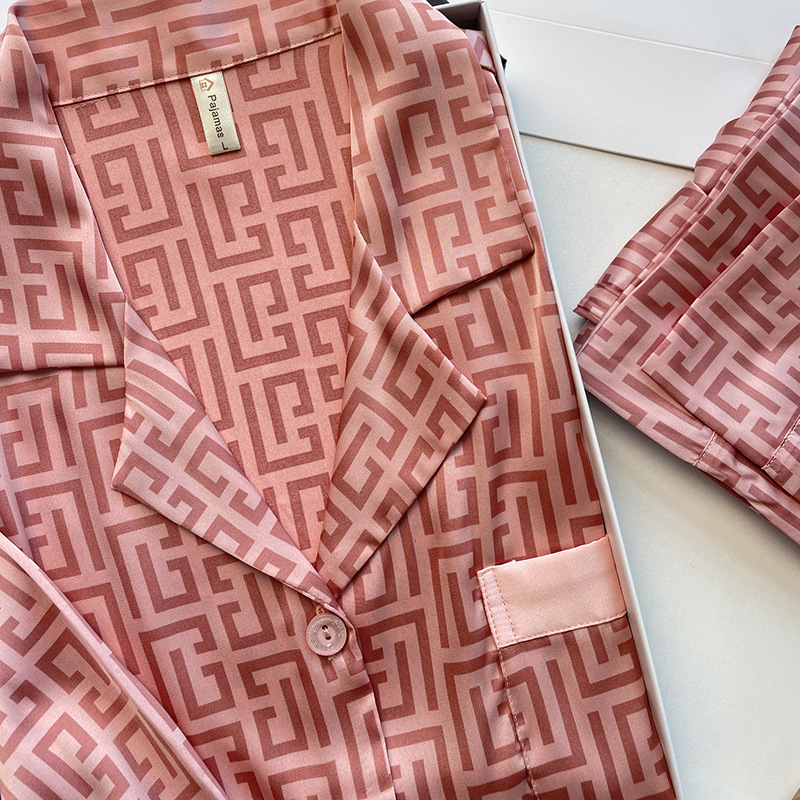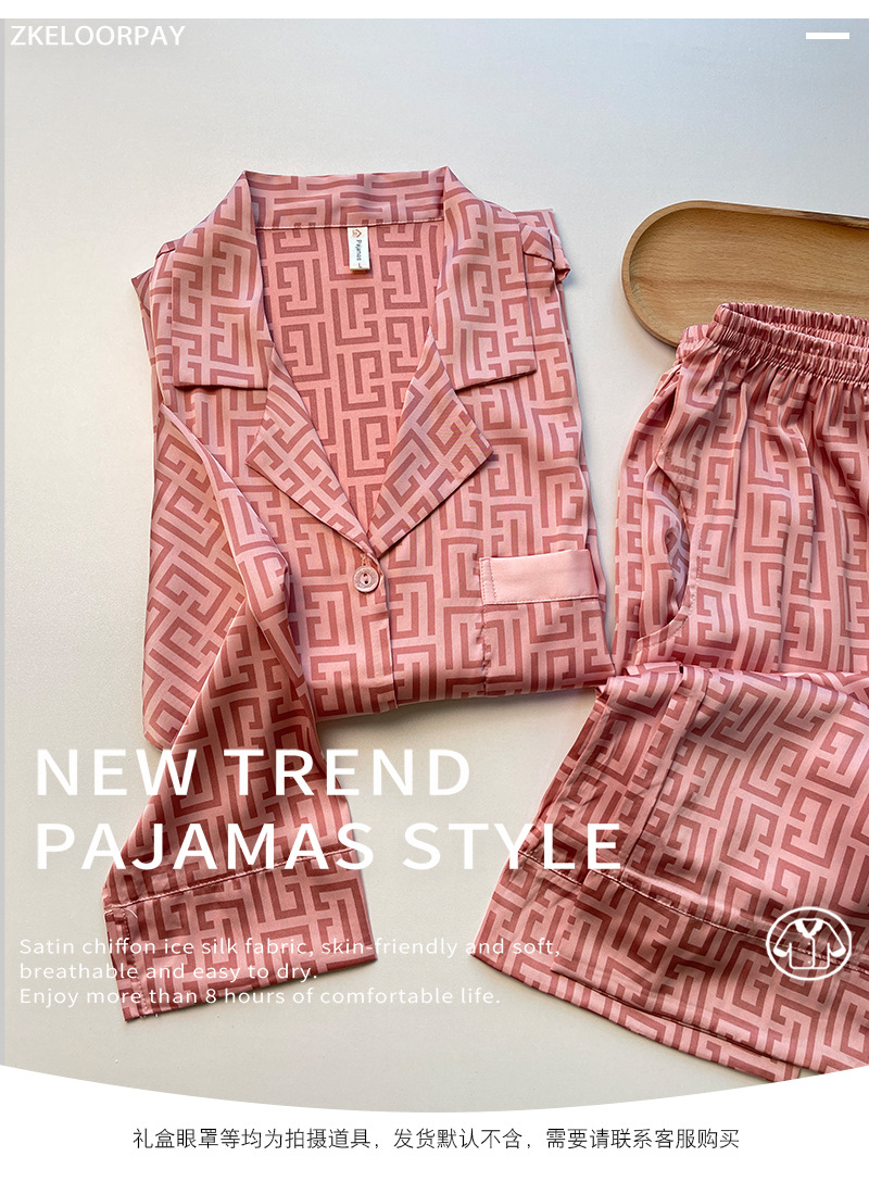 봄과 여름 새로운 아이스 실크 커플 잠옷 여성용 하이 엔드 라이트 럭셔리 외국식 얇은 실크 플러스 사이즈 홈 의류 남성용