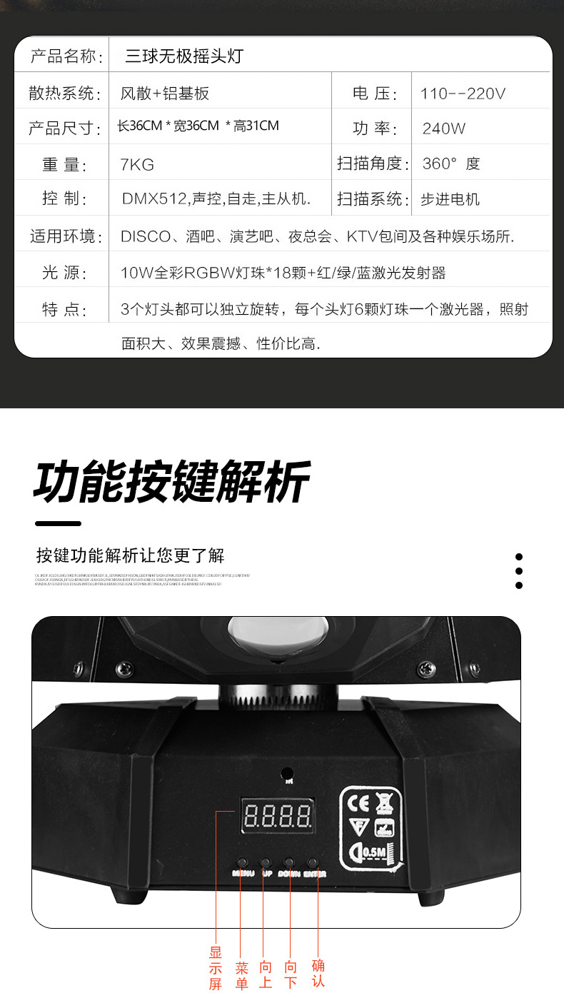 • 3볼 무빙 헤드라이트(레이저+패턴+스트로브+리모컨)