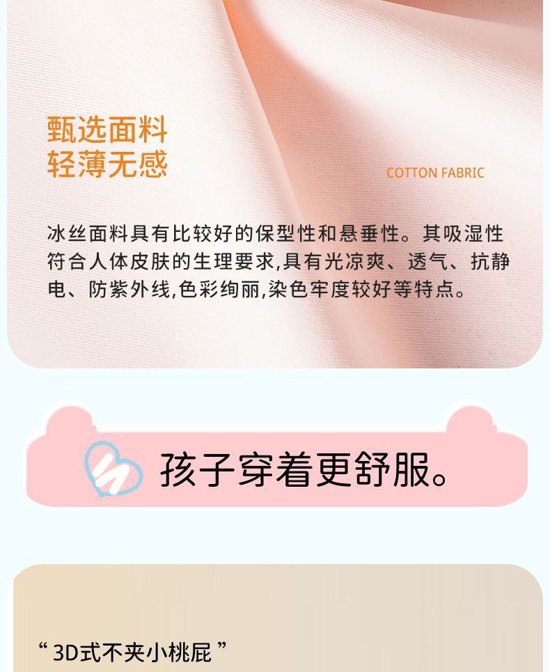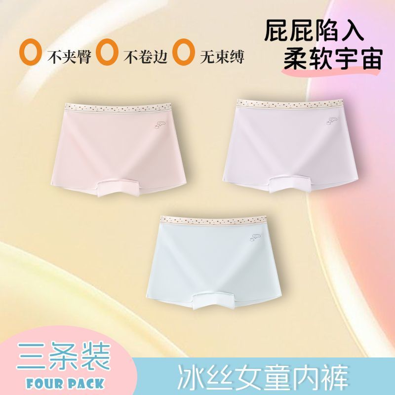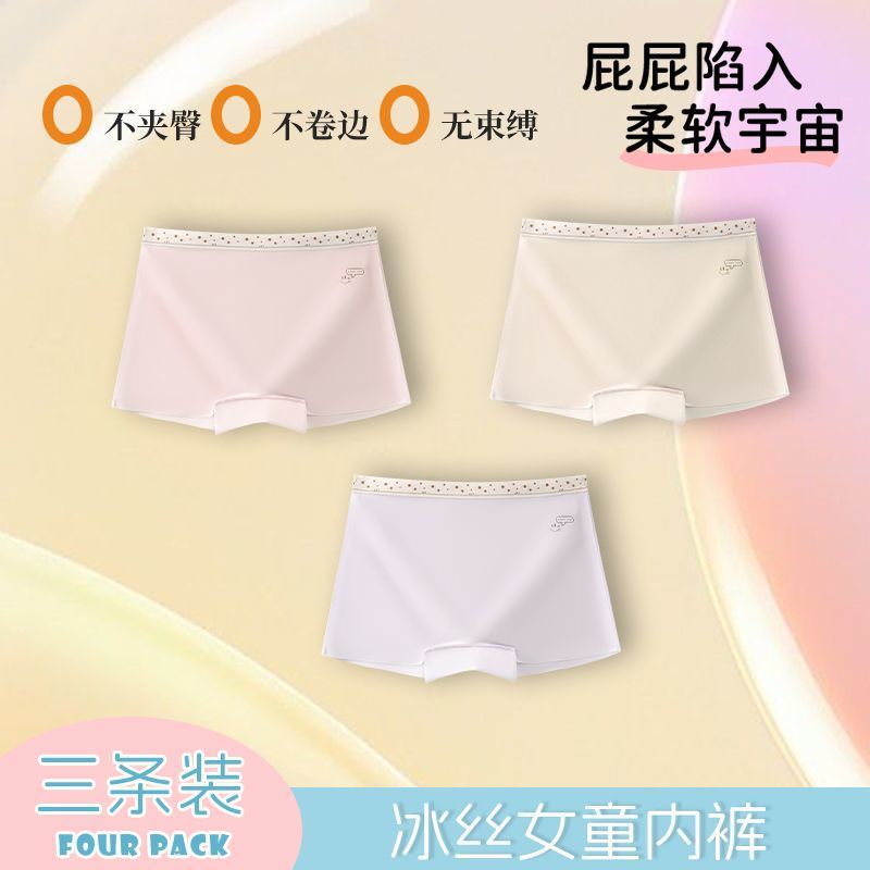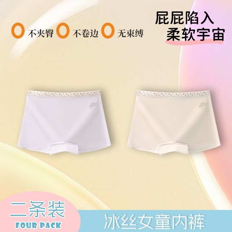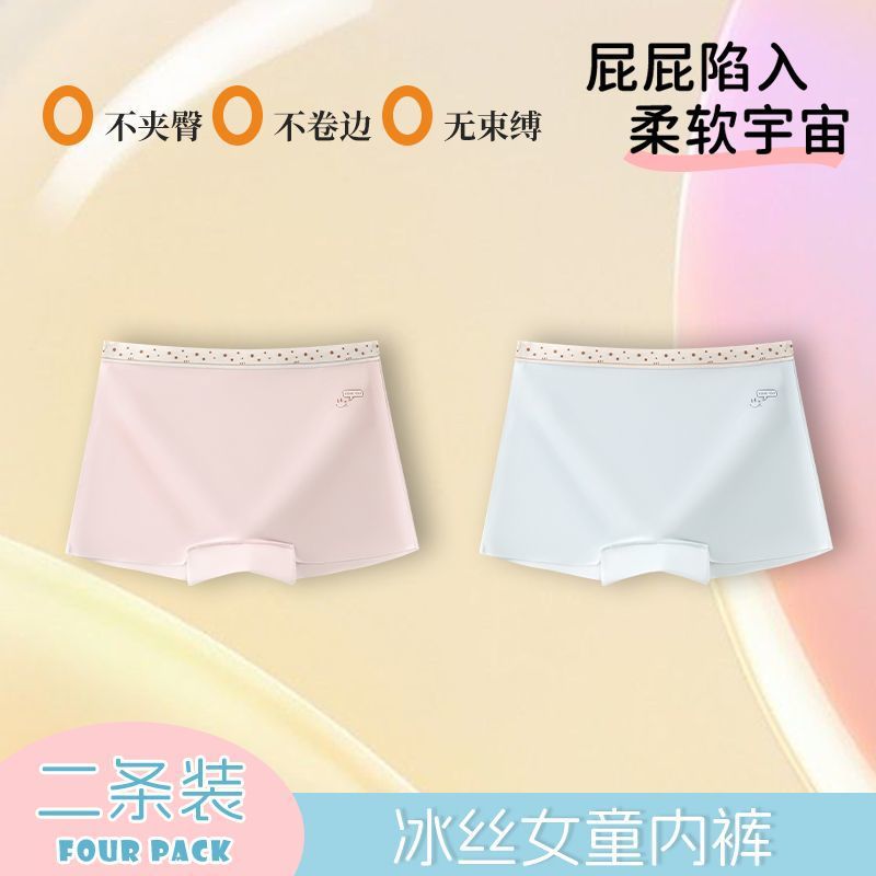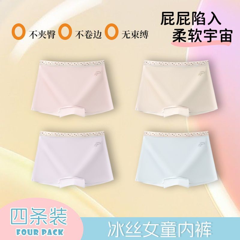 어린이 속옷 소녀 여름 얼음 실크 추적없는 편안한 어린이 여성의 보물 중 큰 어린이 면화 4 코너 반바지스토어 가기