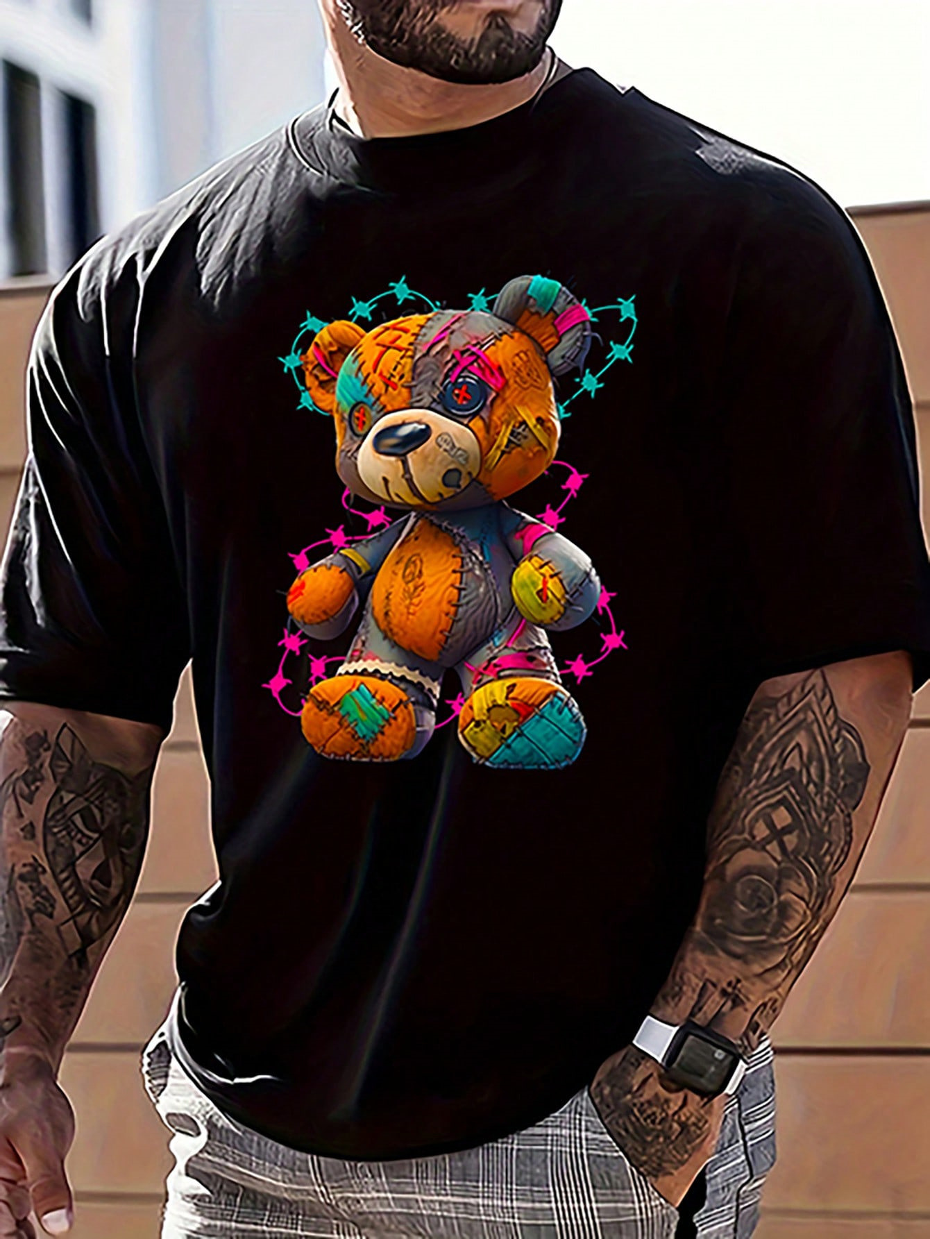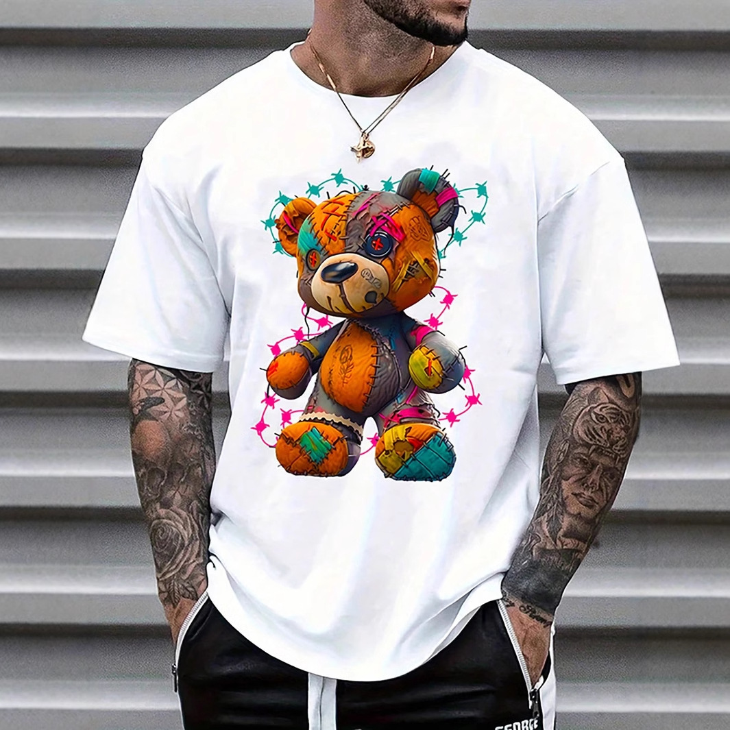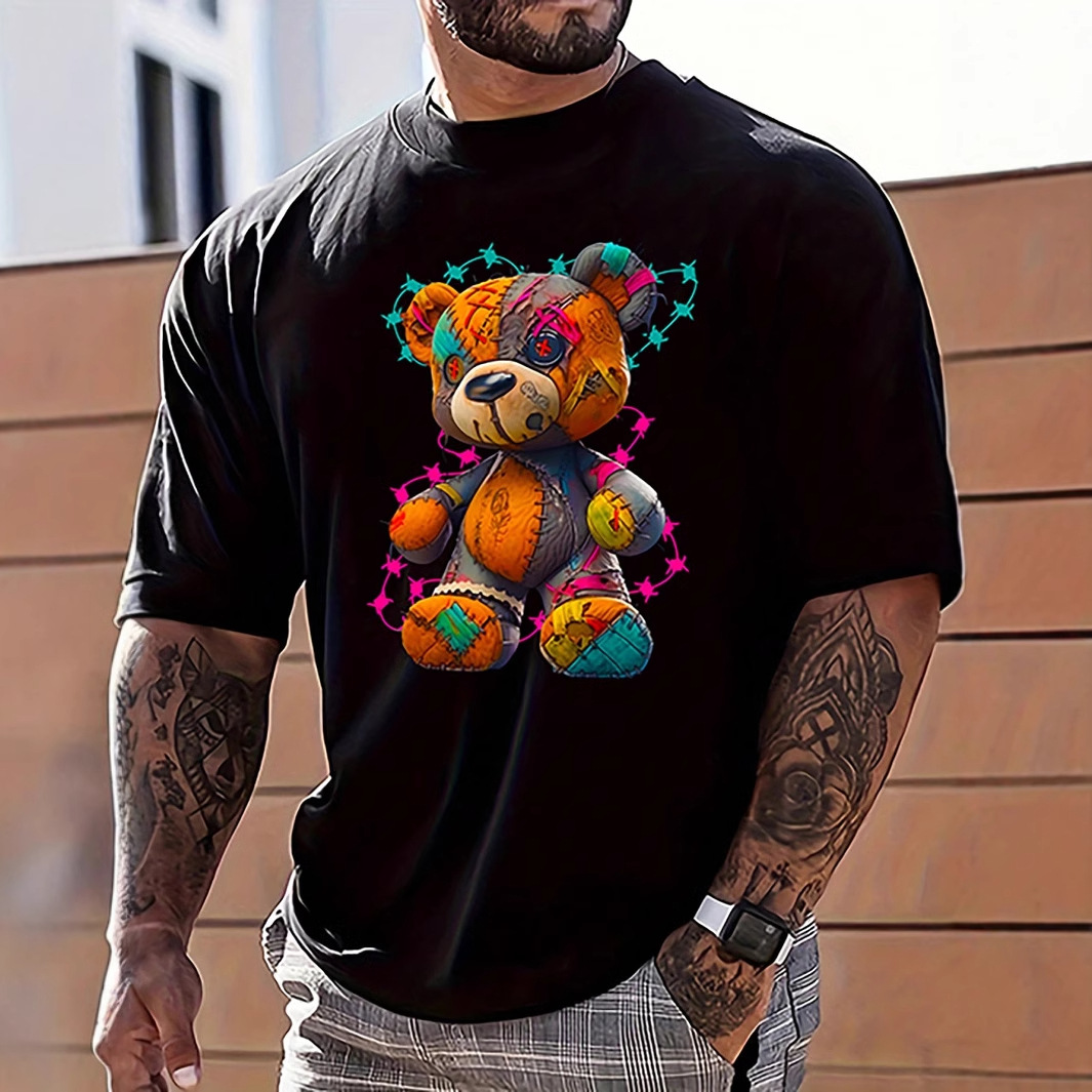 국경 간 대외 무역 AliExpress 남성 TEMU 폭발적인 탑 팬더 프린트 아마존면 티셔츠 반팔 반팔