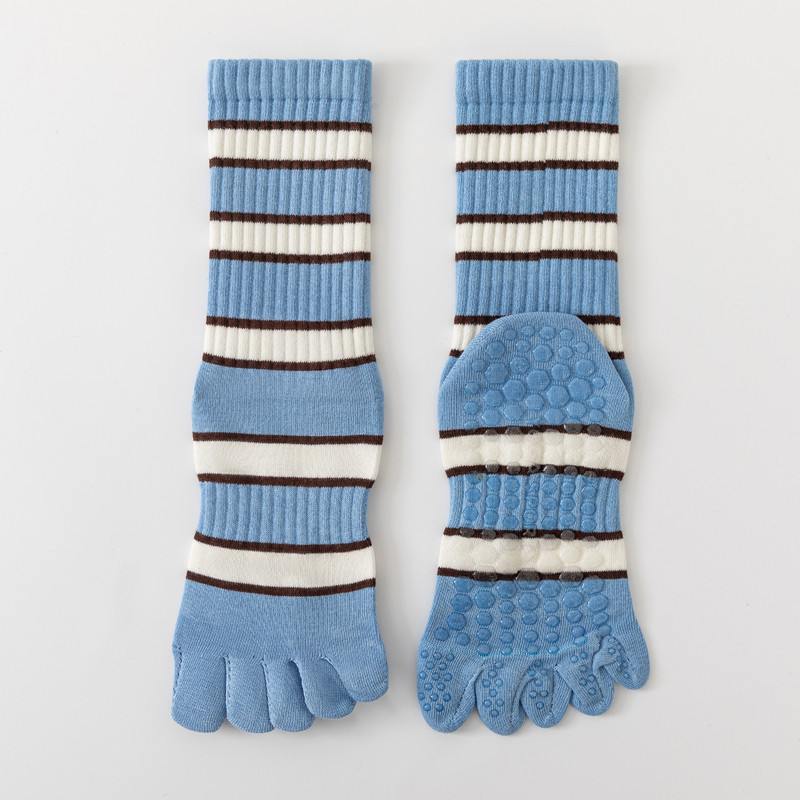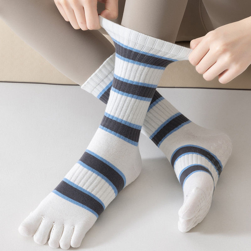새로운 줄무늬 5 손가락 요가 양말 비 슬립 전문 필라테스 포인팅 미드 토 양말 여성 스포츠 댄스 스타킹