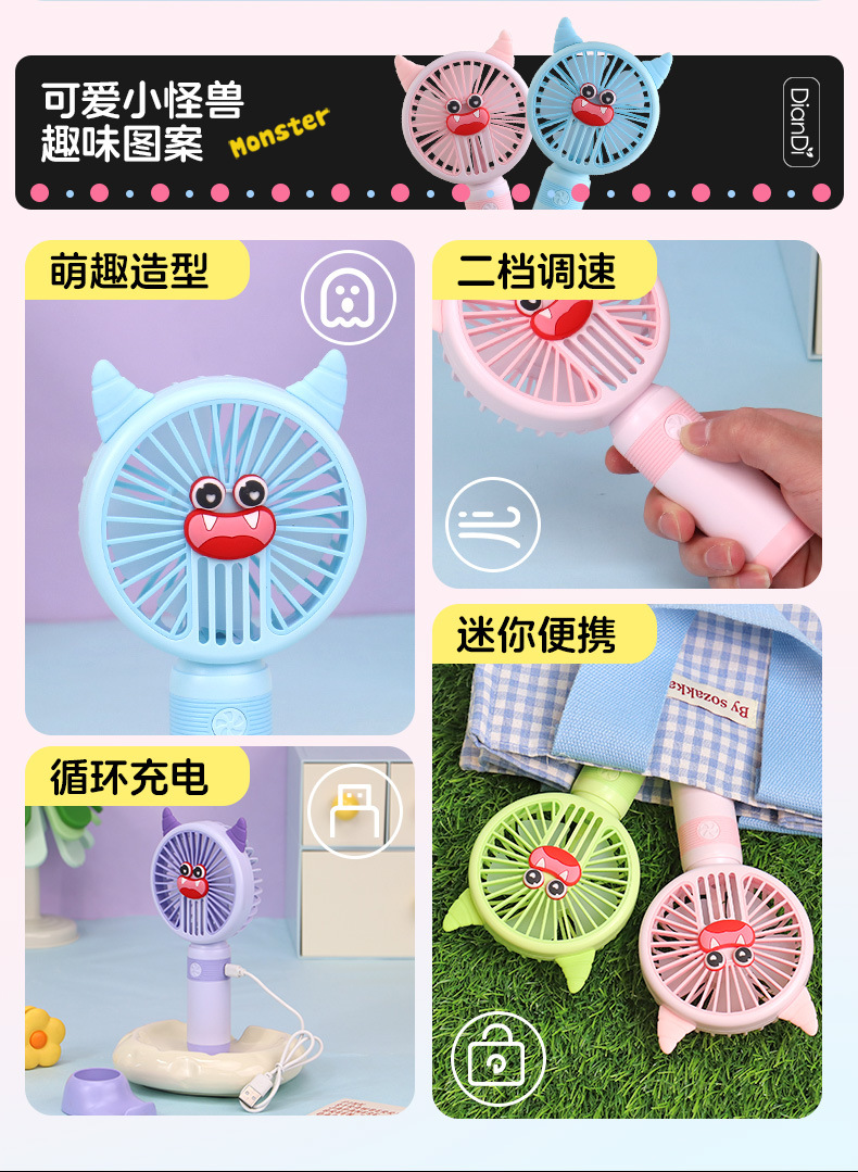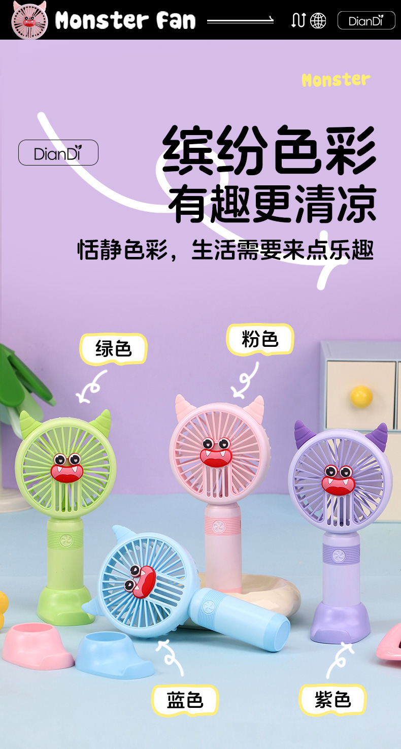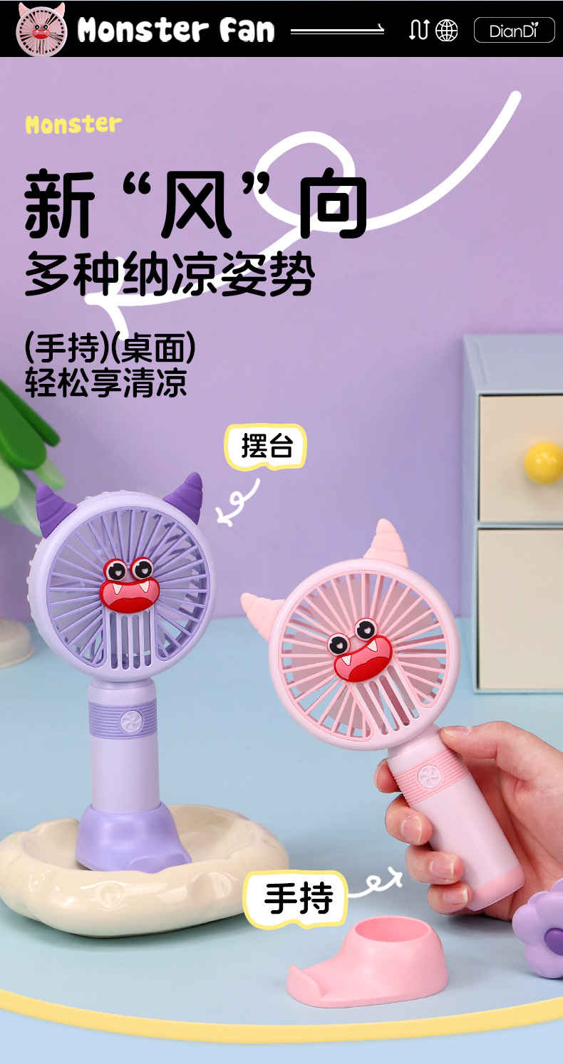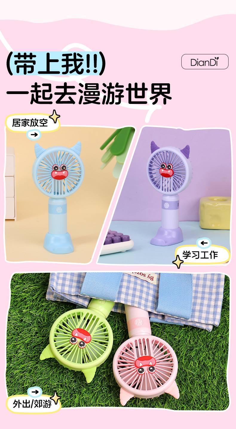 국경 간 새로운 만화 핸드 헬드 팬 USB 충전 야외 편리한 미니 전기 팬 가벼운 2 단 팬 공장스토어 가기