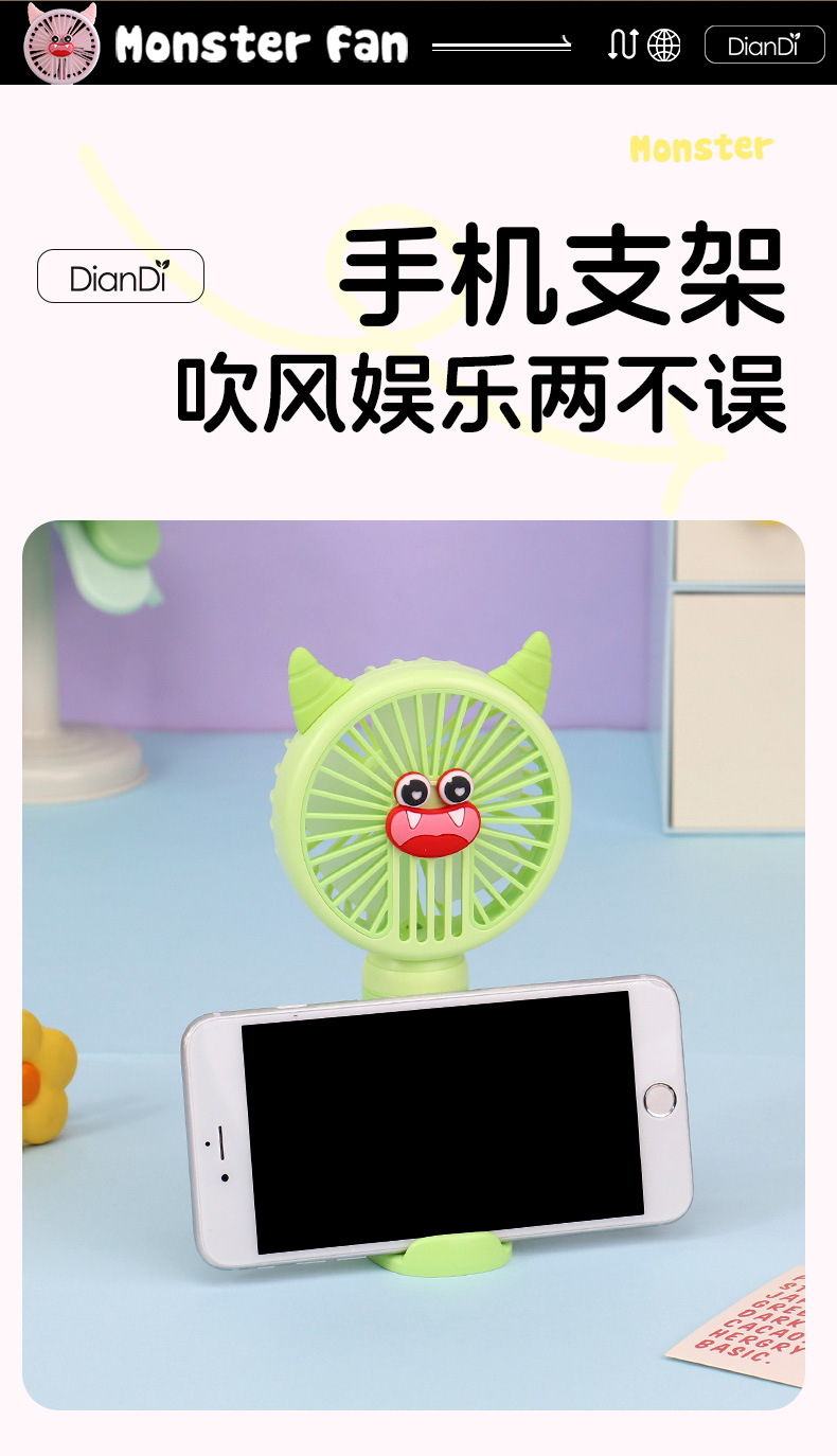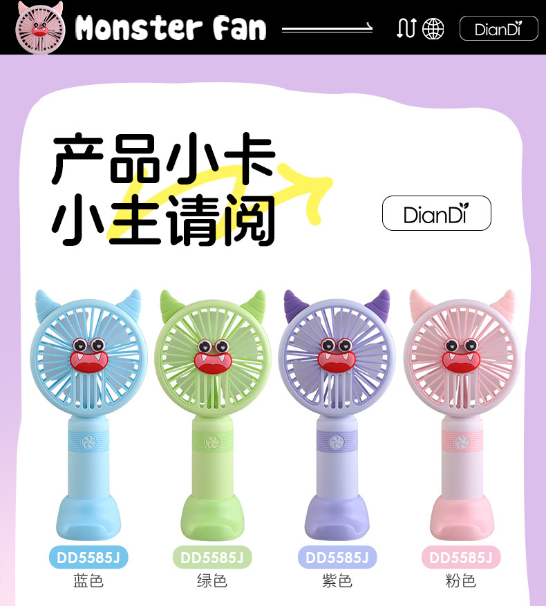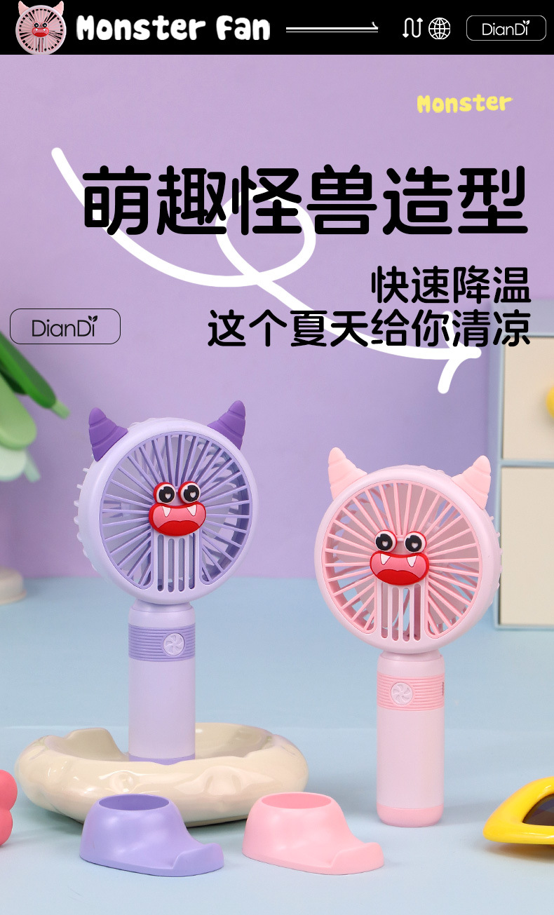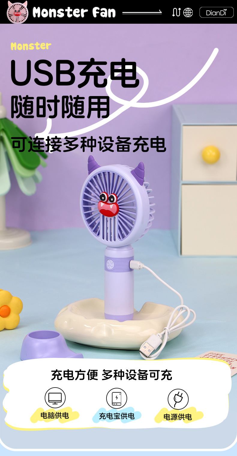 국경 간 새로운 만화 핸드 헬드 팬 USB 충전 야외 편리한 미니 전기 팬 가벼운 2 단 팬 공장스토어 가기