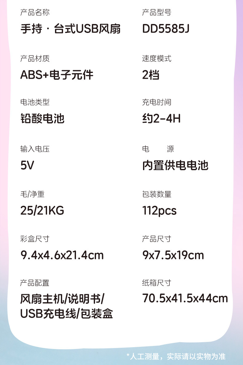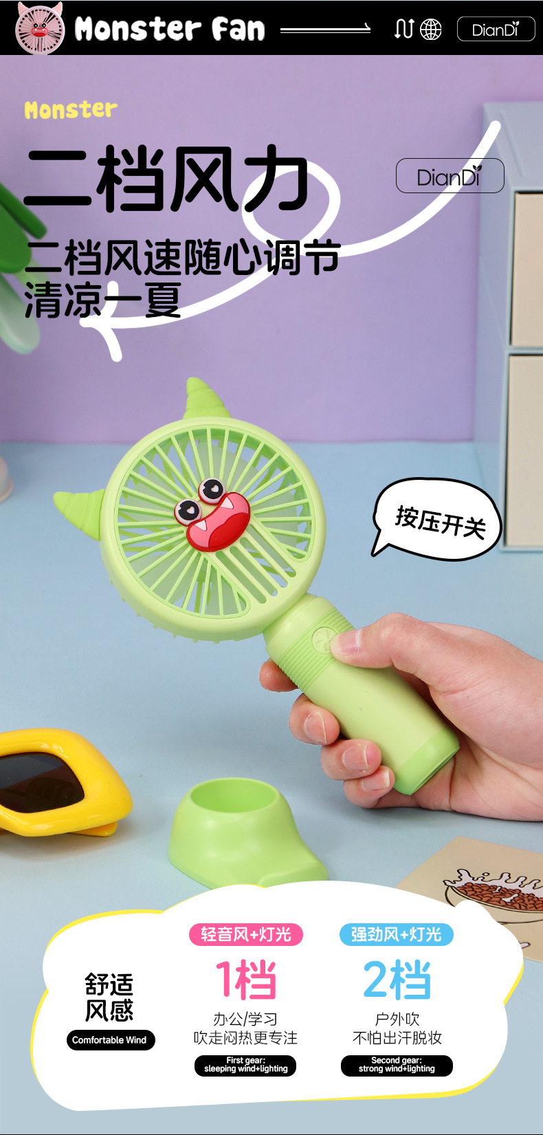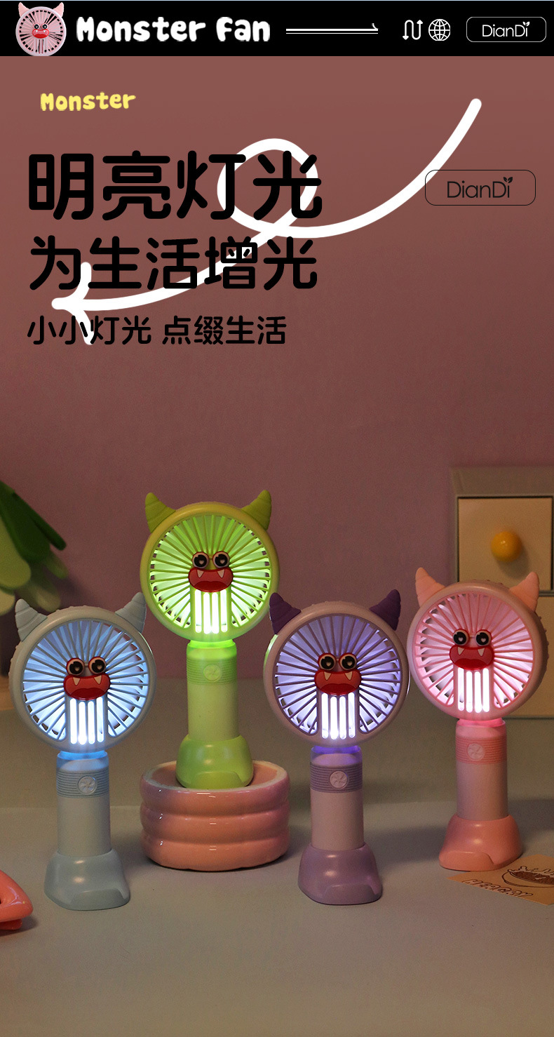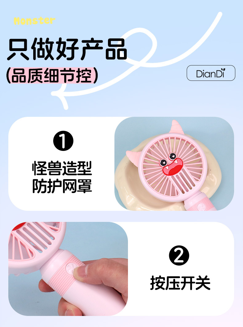 국경 간 새로운 만화 핸드 헬드 팬 USB 충전 야외 편리한 미니 전기 팬 가벼운 2 단 팬 공장스토어 가기