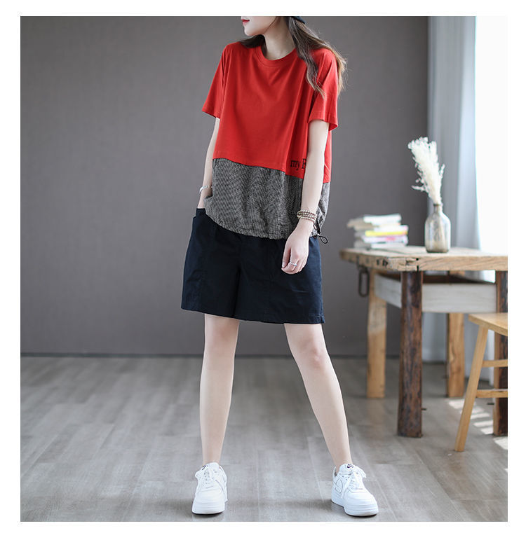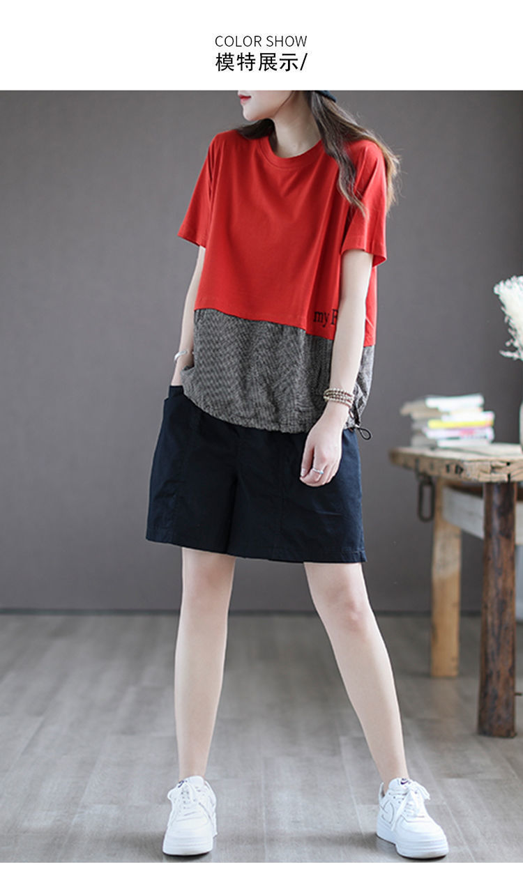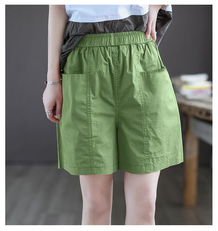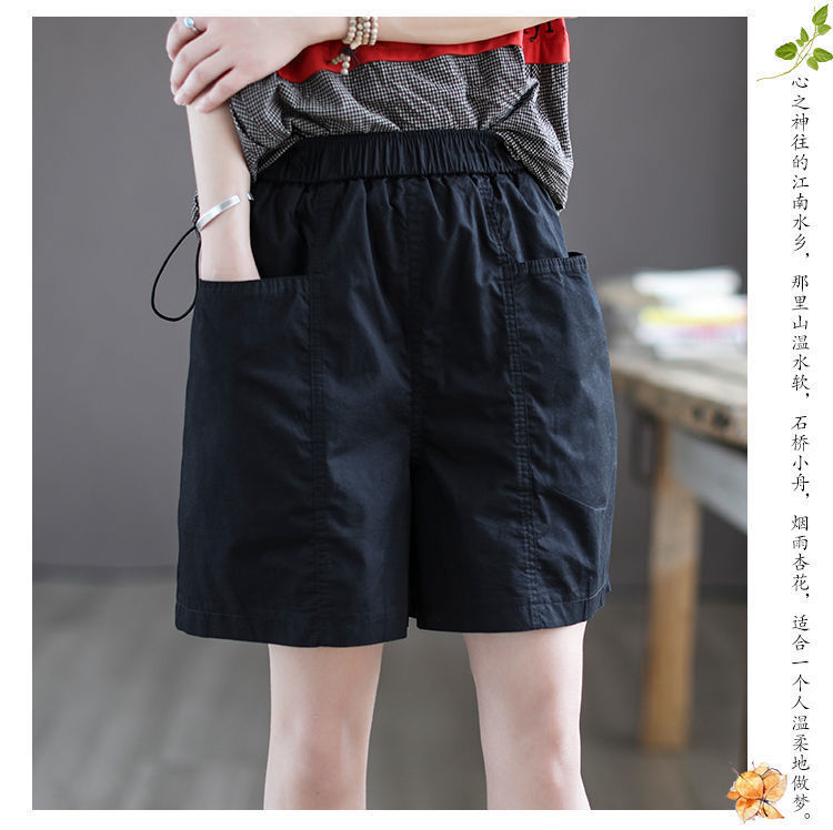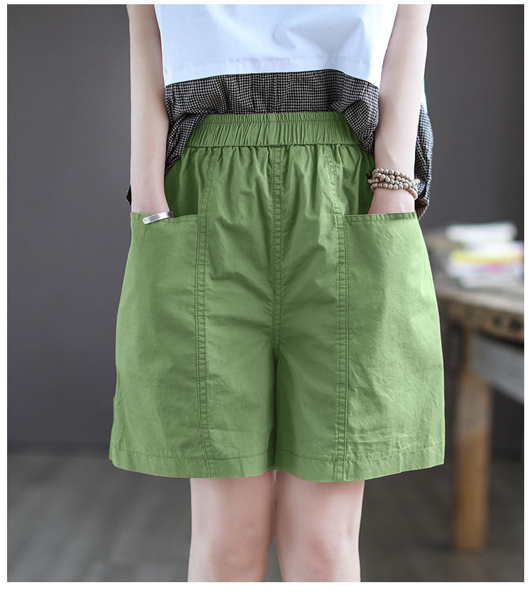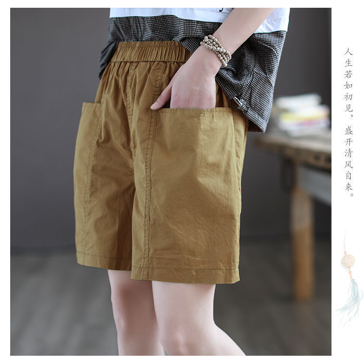 하이 퀄리티 코튼 와이드 레그 반바지 여자 뉴 플러스 사이즈 하이 웨이스트 슬림 룩 여름 캐주얼 루즈 올 매치 5 점 오버롤스토어 가기