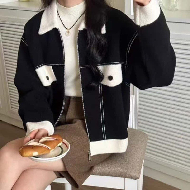 한국 스타일 캐주얼 가짜 울 재킷 여자 2025 봄 가을 새 스타일 작은 싱글 가슴 야구 세트 니트 카디건스토어 가기
