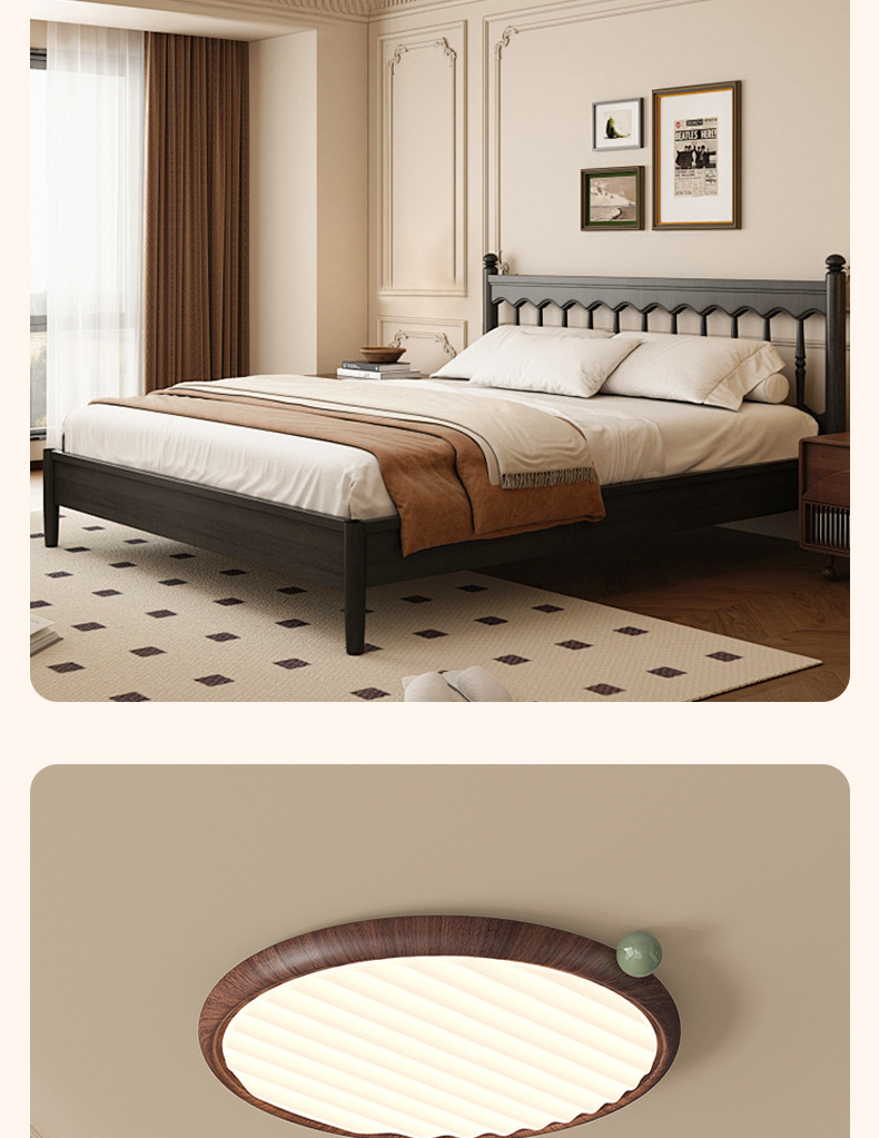 2025 새로운 중간 스타일 침실 천장 램프 크림 스타일 호두 컬러 작은 우유 콩 전체 스펙트럼 눈 보호 침실 램프